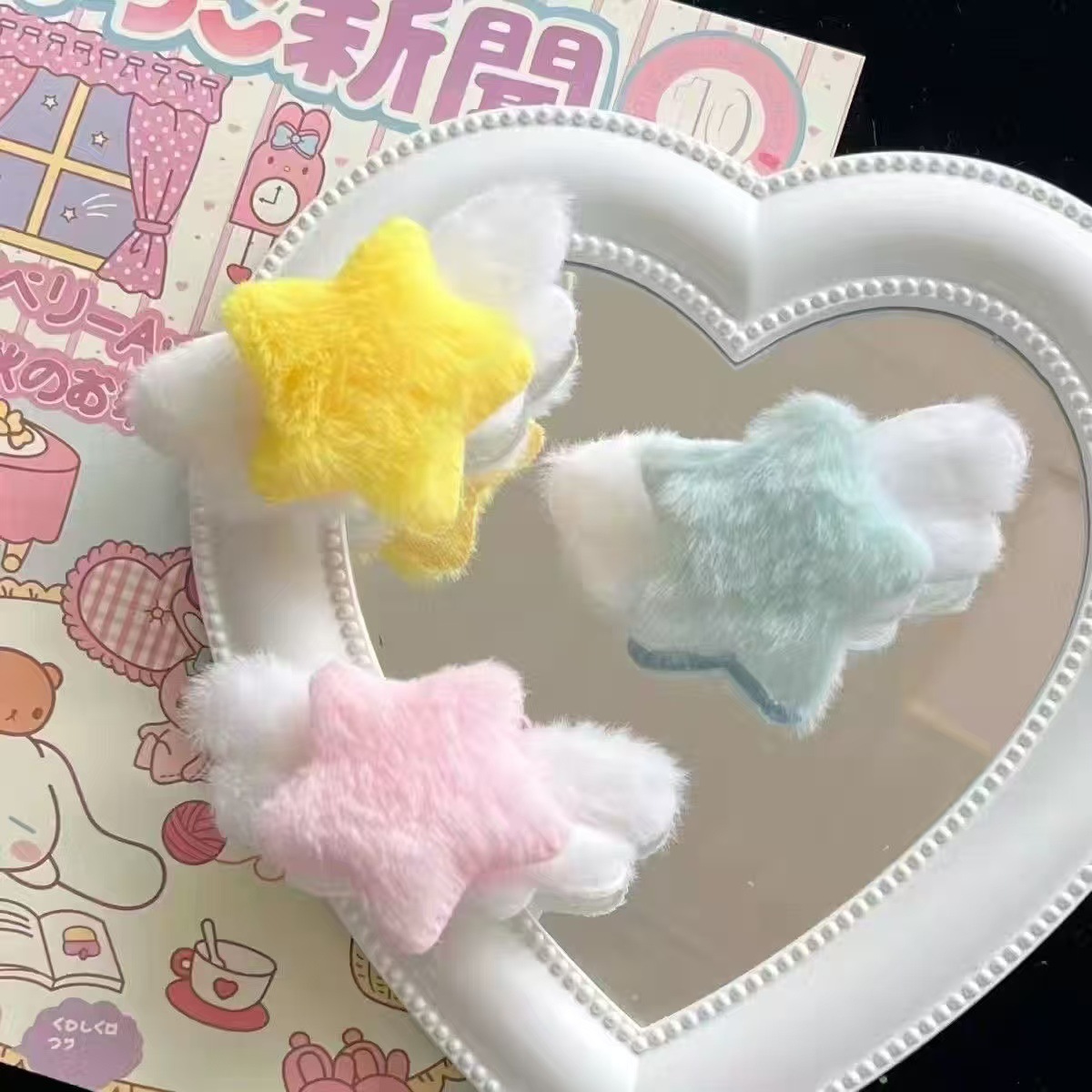 • 7125 양모로 감싼 만화 별 머리핀-Mika 버튼