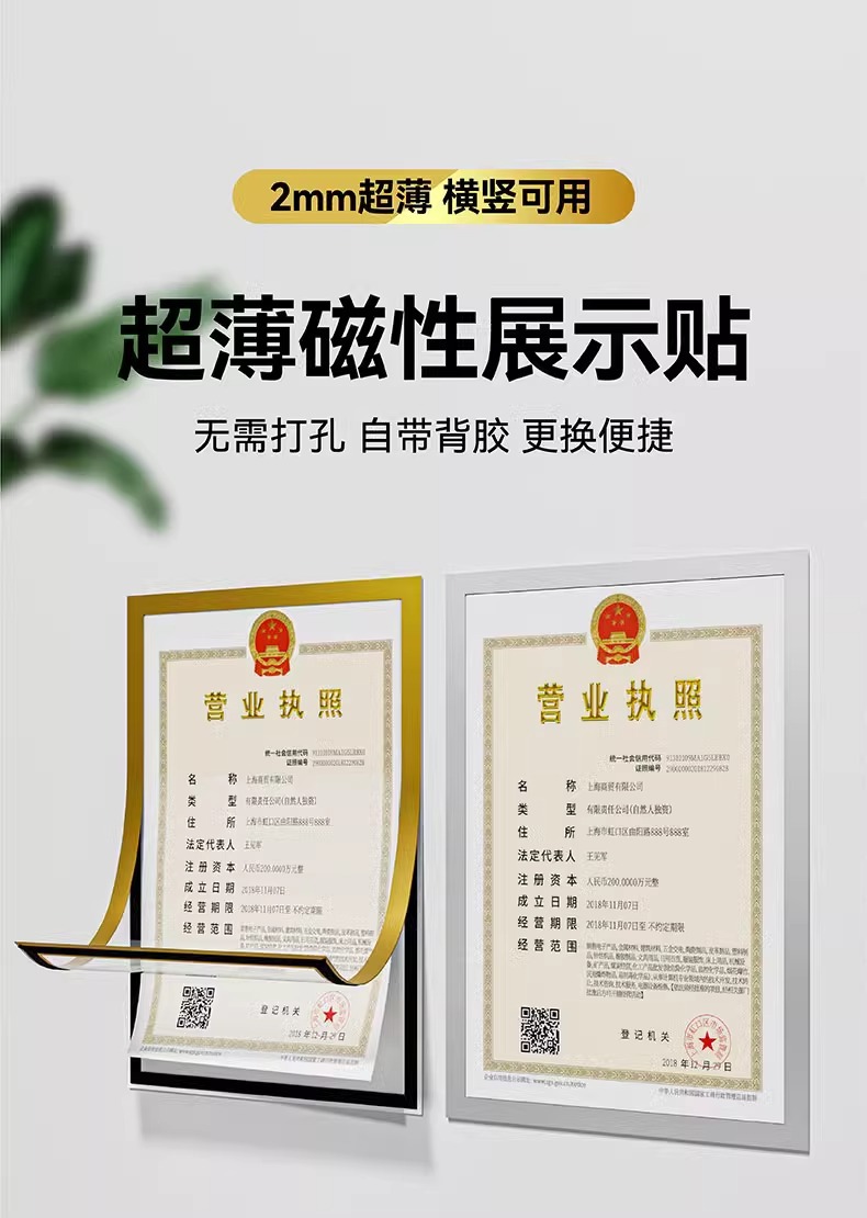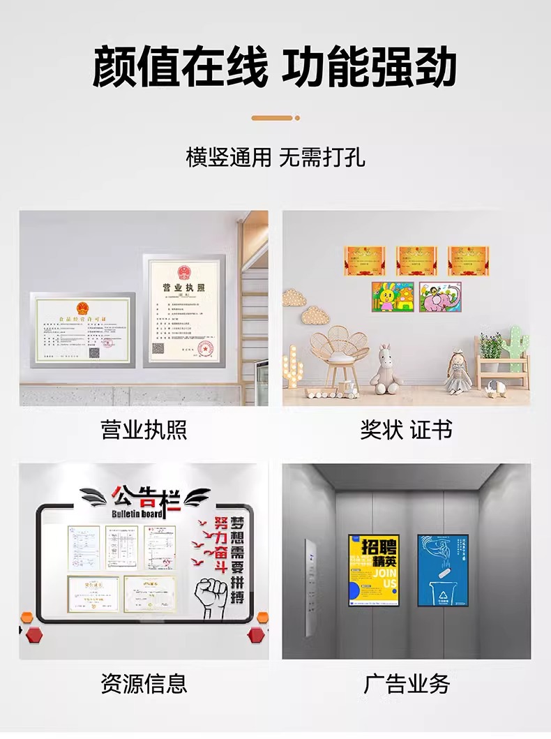 자석 디스플레이 스티커 A4A3 사진 프레임 자석 무자국 스티커 파일 보호 커버 증명서 상장 현대적이고 심플한 액자스토어 가기