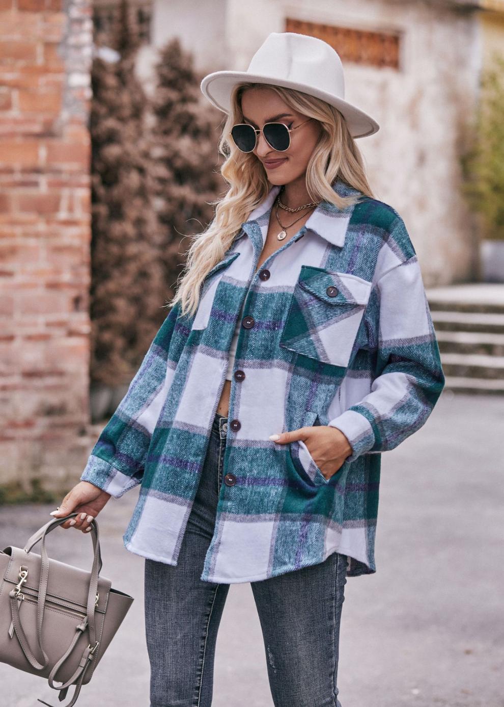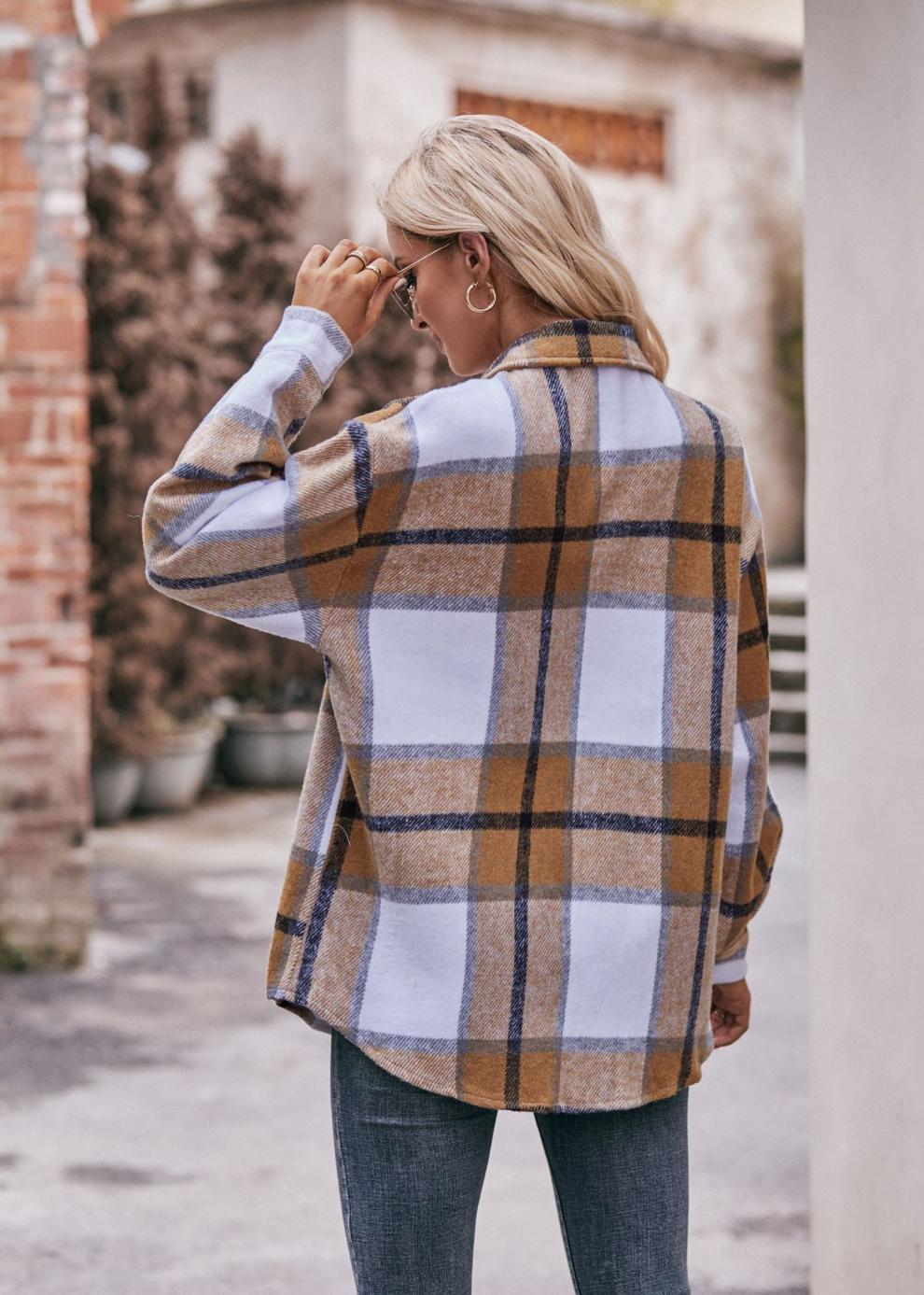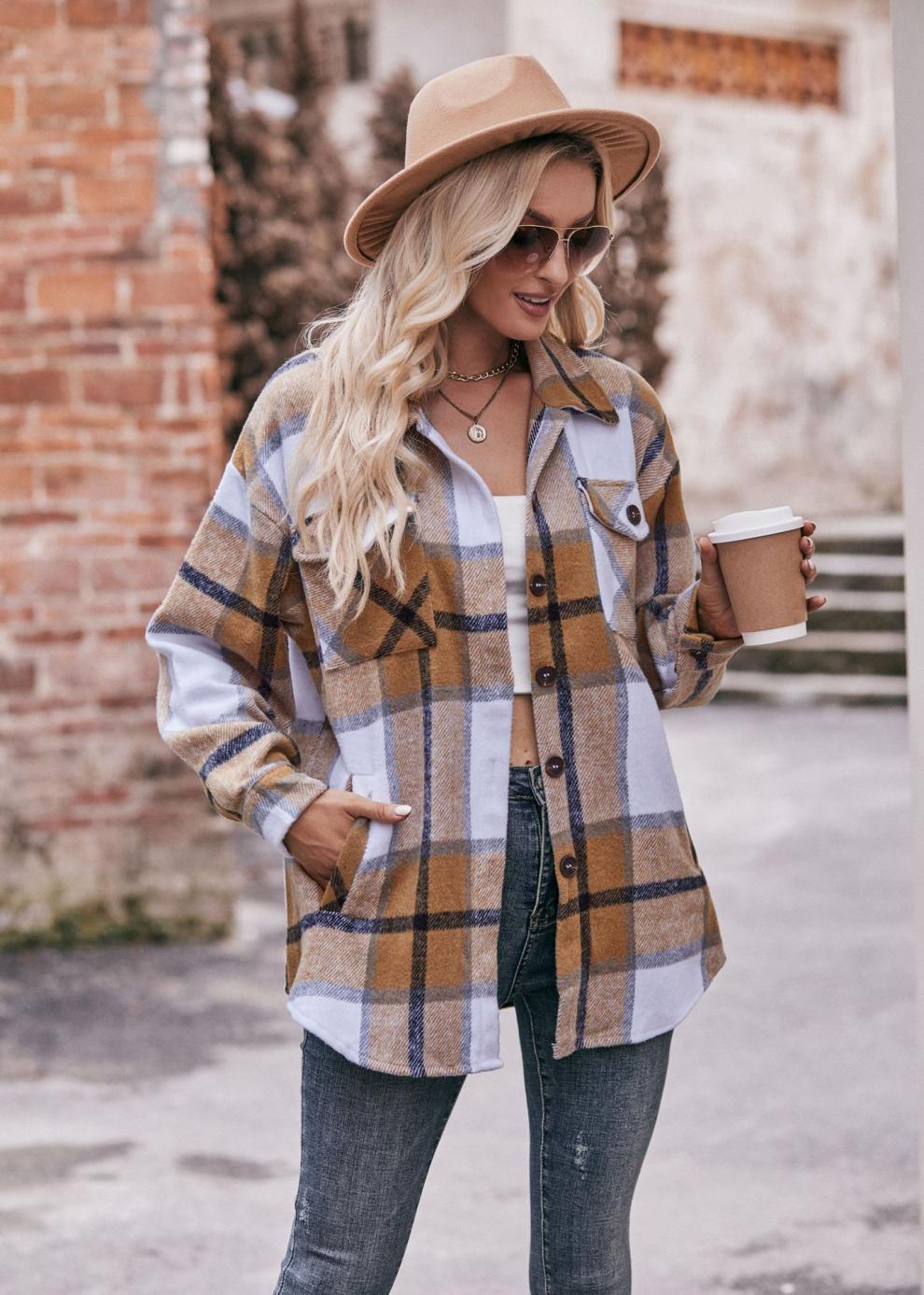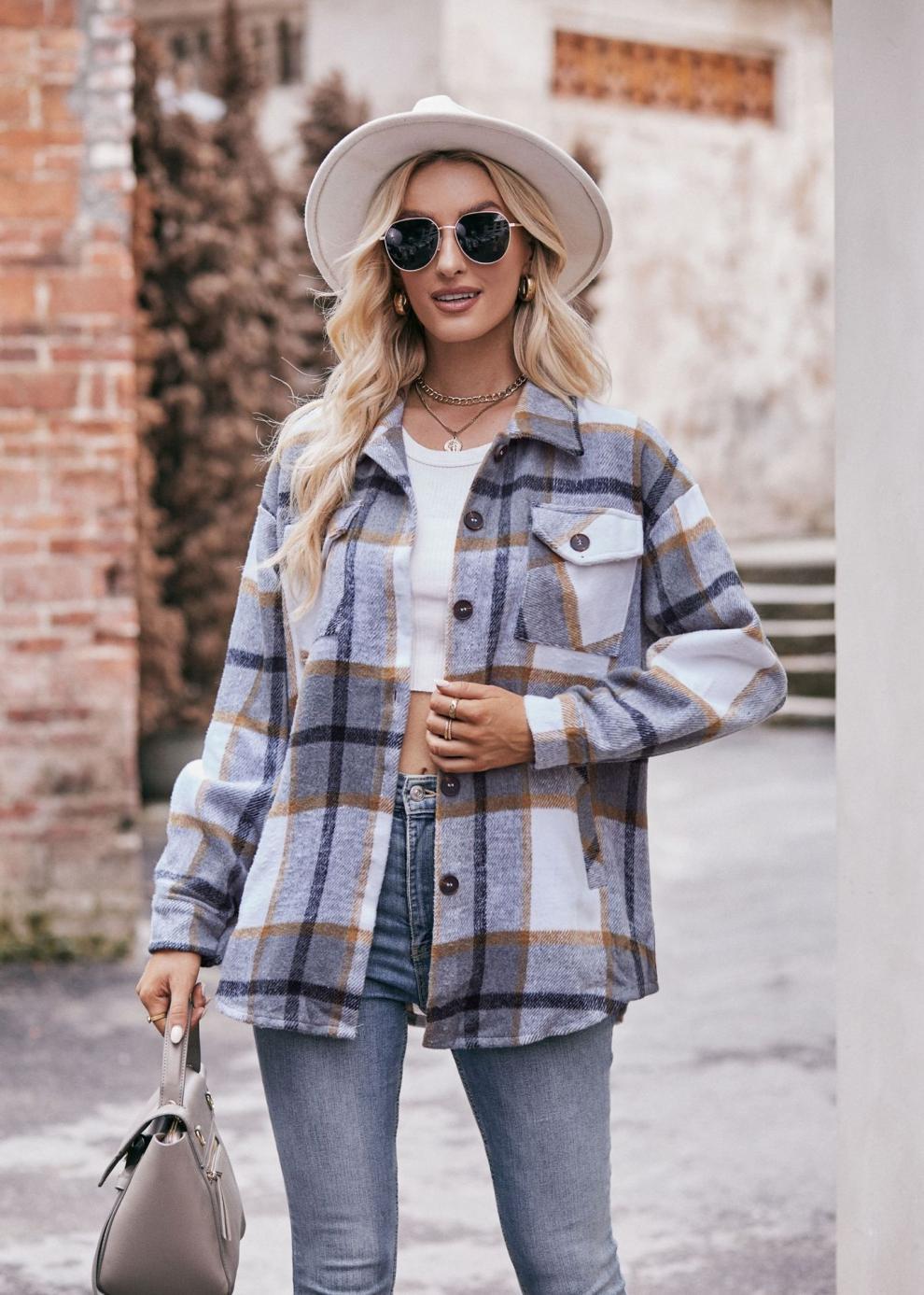 국경 간 유럽과 미국의 가을과 겨울 새로운 셔츠 아마존 여성 거리 격자 무늬 재킷 싱글 브레스트 카디건 여성