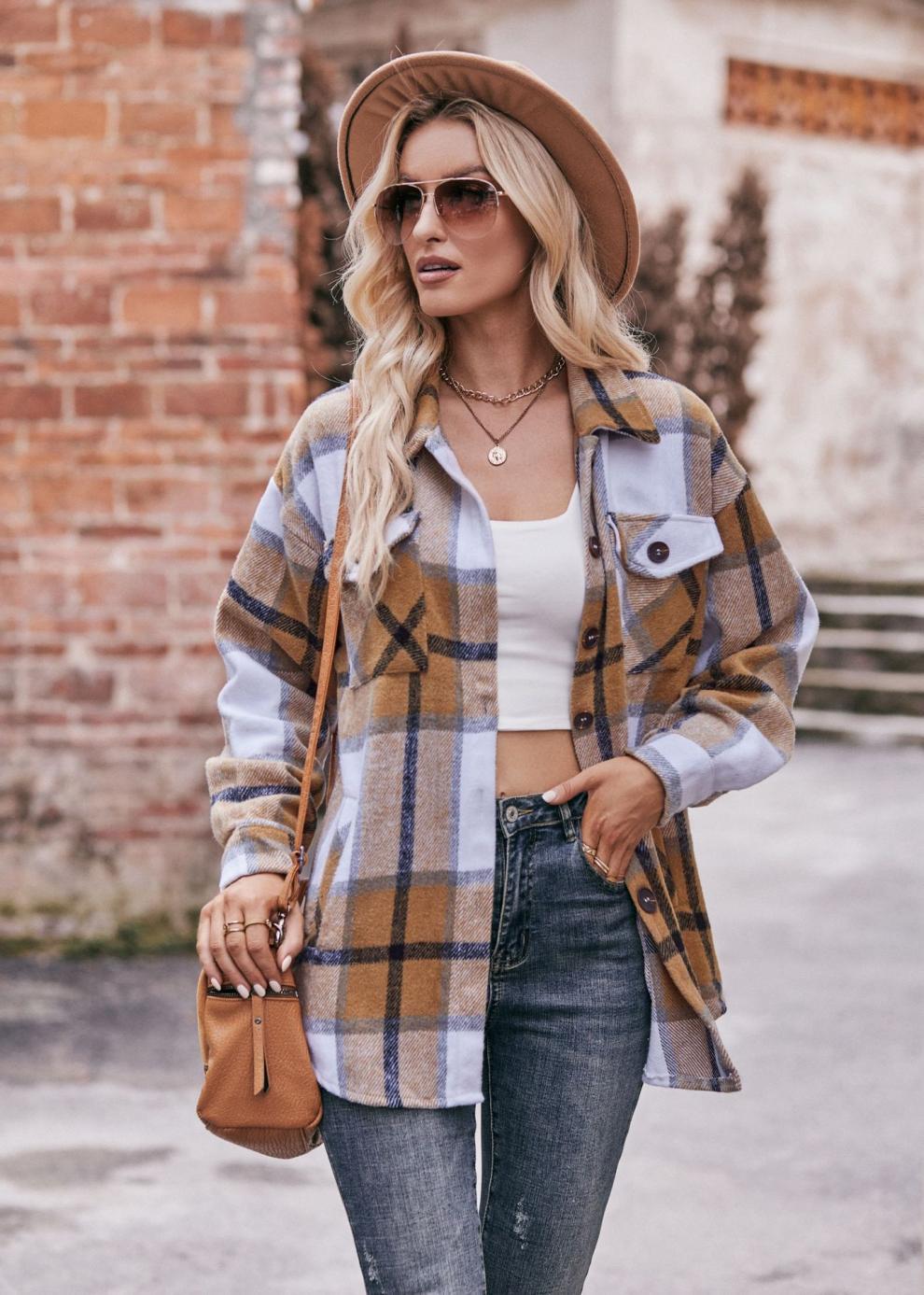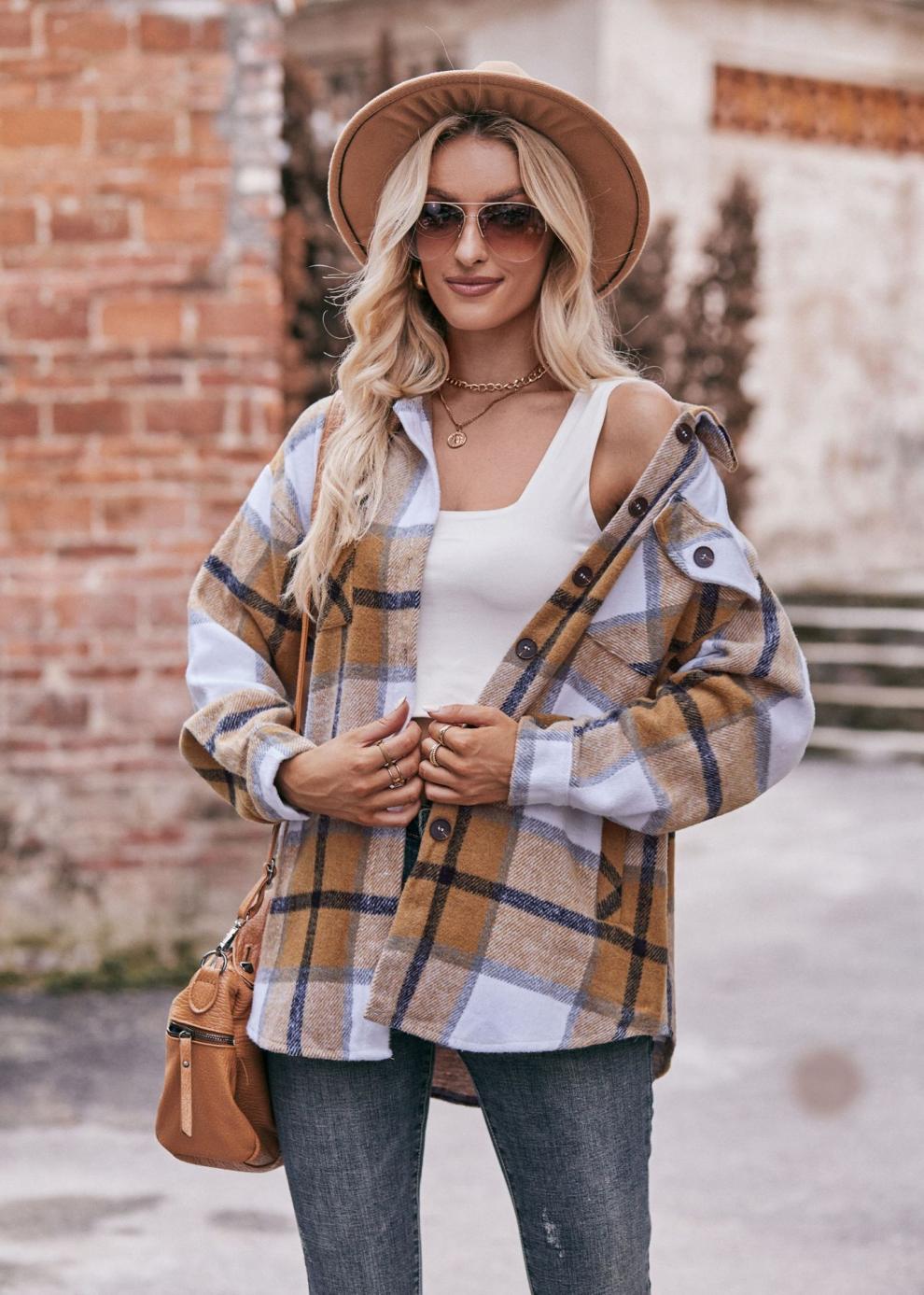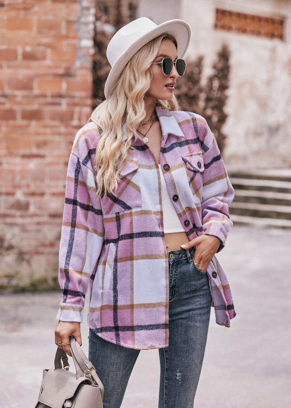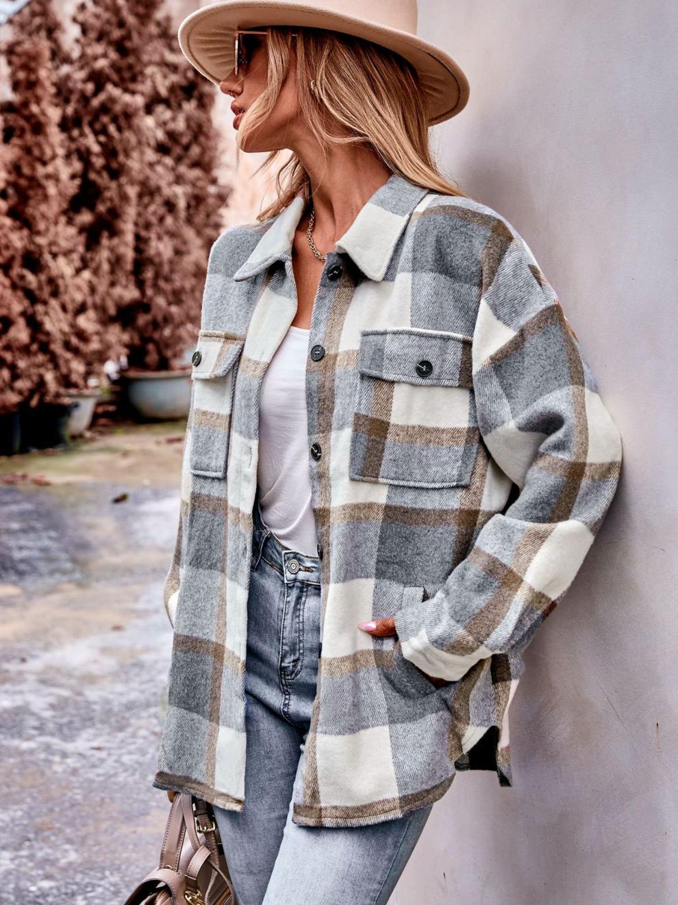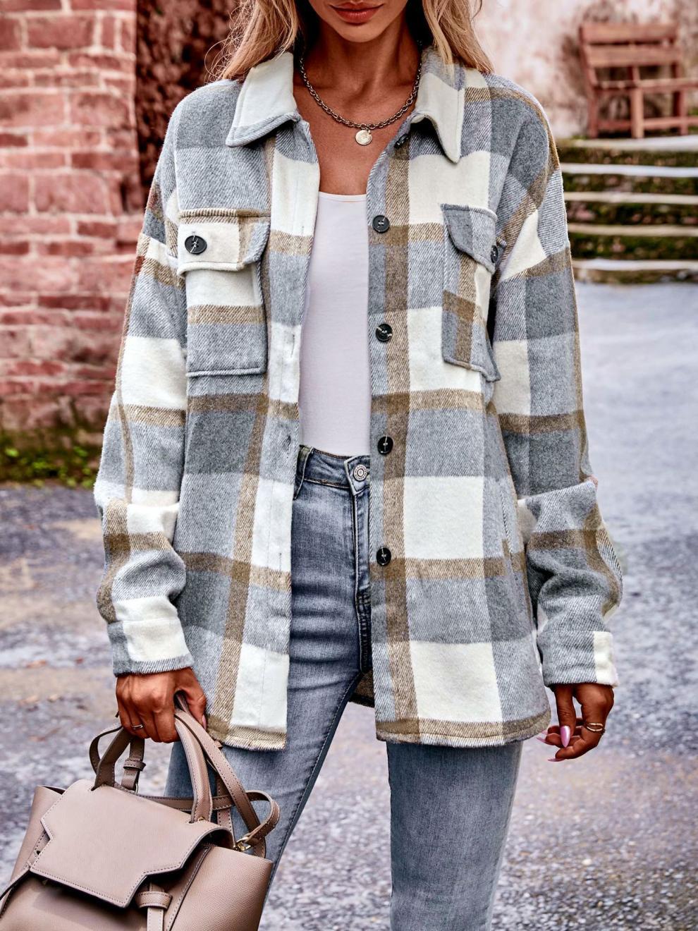국경 간 유럽과 미국의 가을과 겨울 새로운 셔츠 아마존 여성 거리 격자 무늬 재킷 싱글 브레스트 카디건 여성