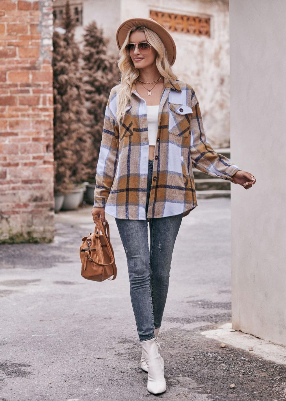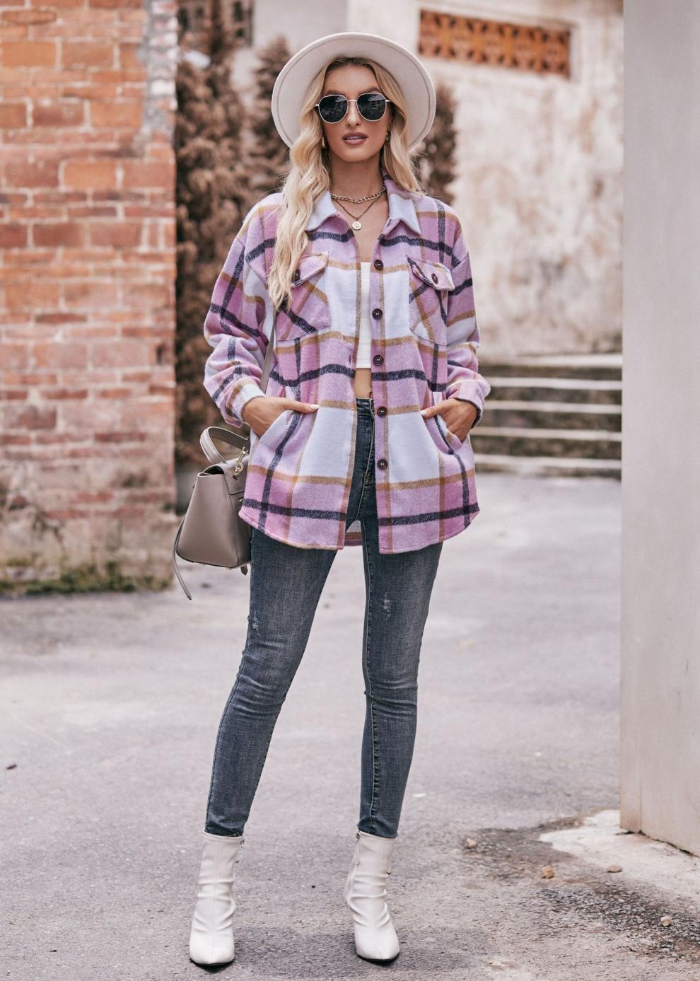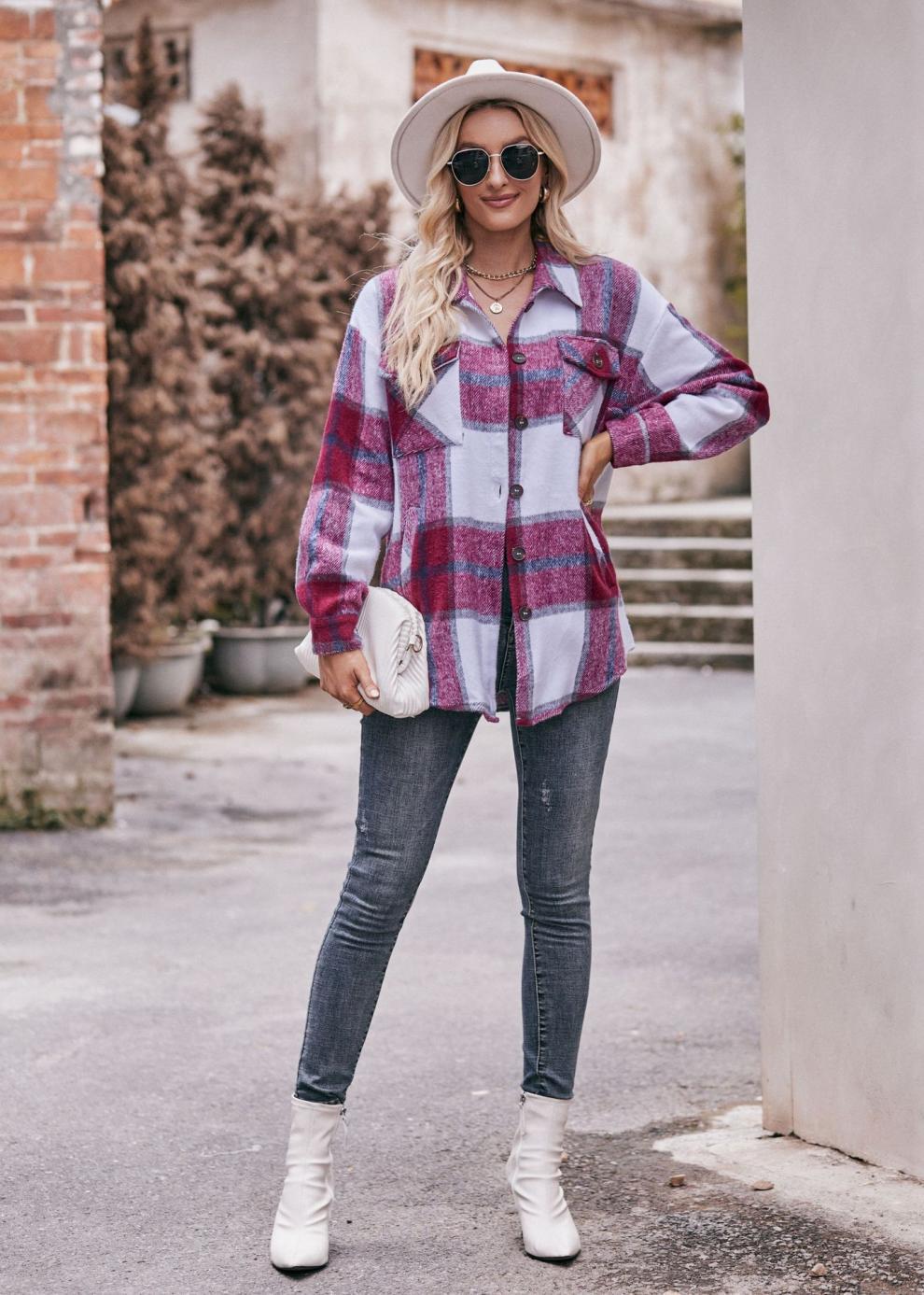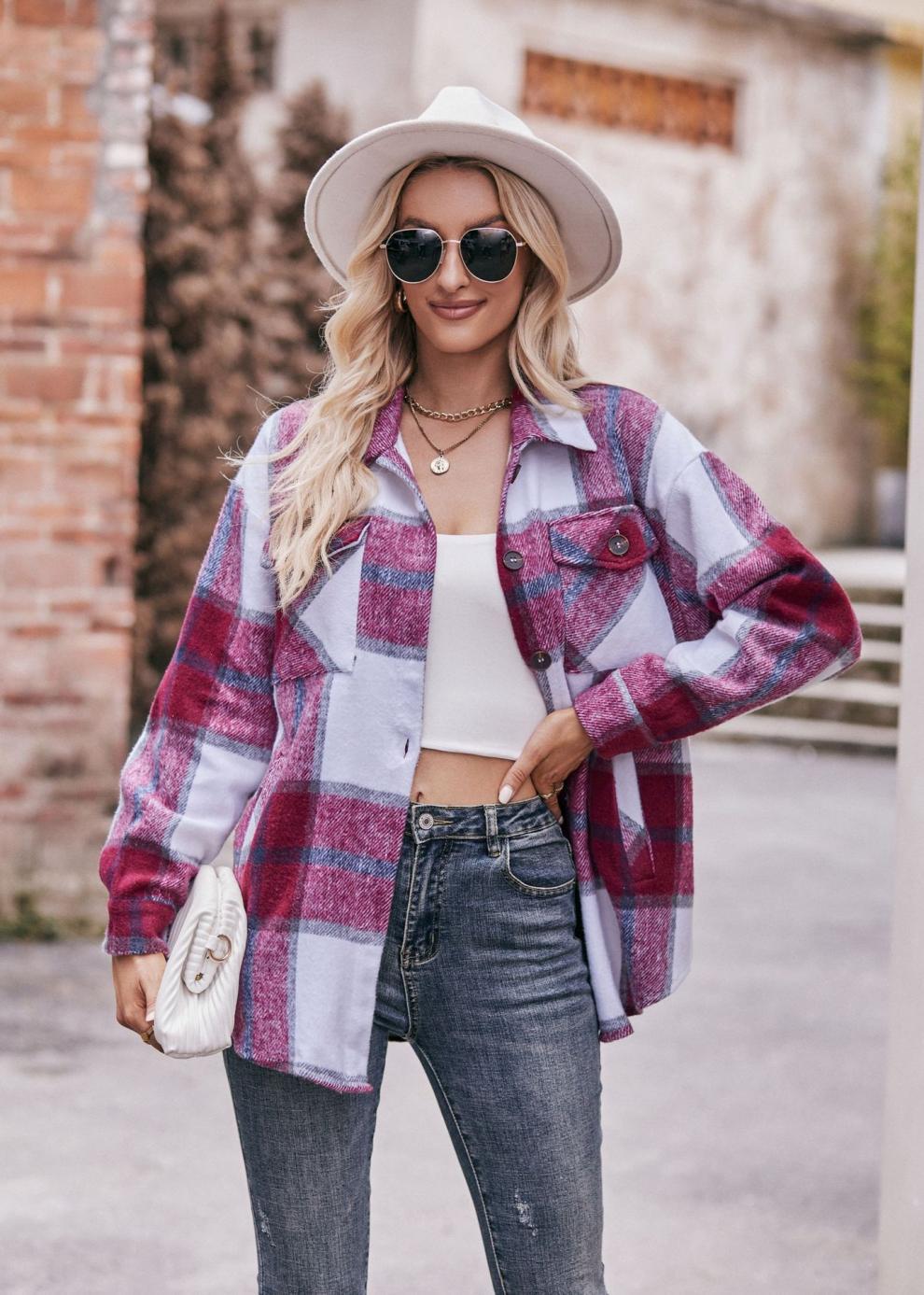 국경 간 유럽과 미국의 가을과 겨울 새로운 셔츠 아마존 여성 거리 격자 무늬 재킷 싱글 브레스트 카디건 여성