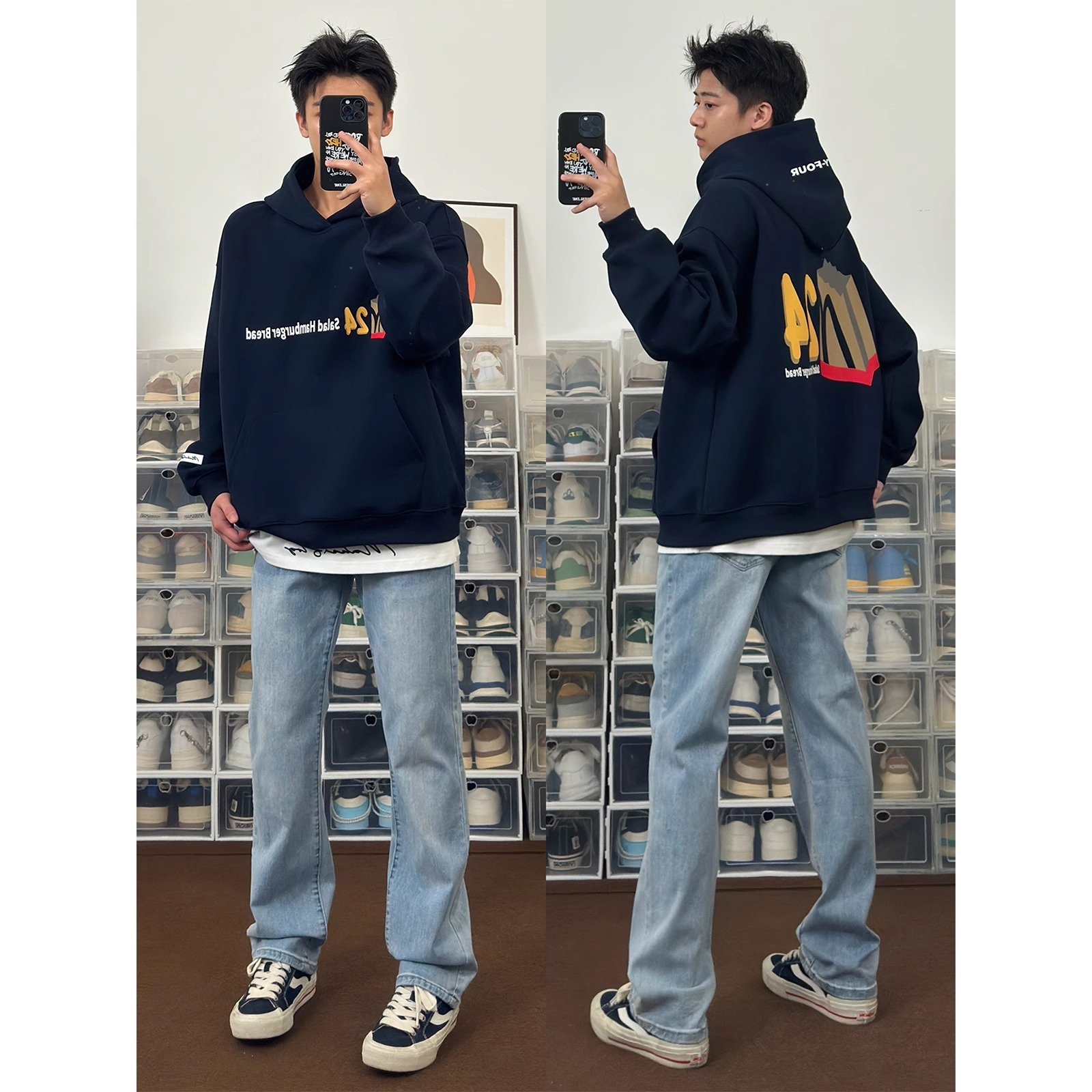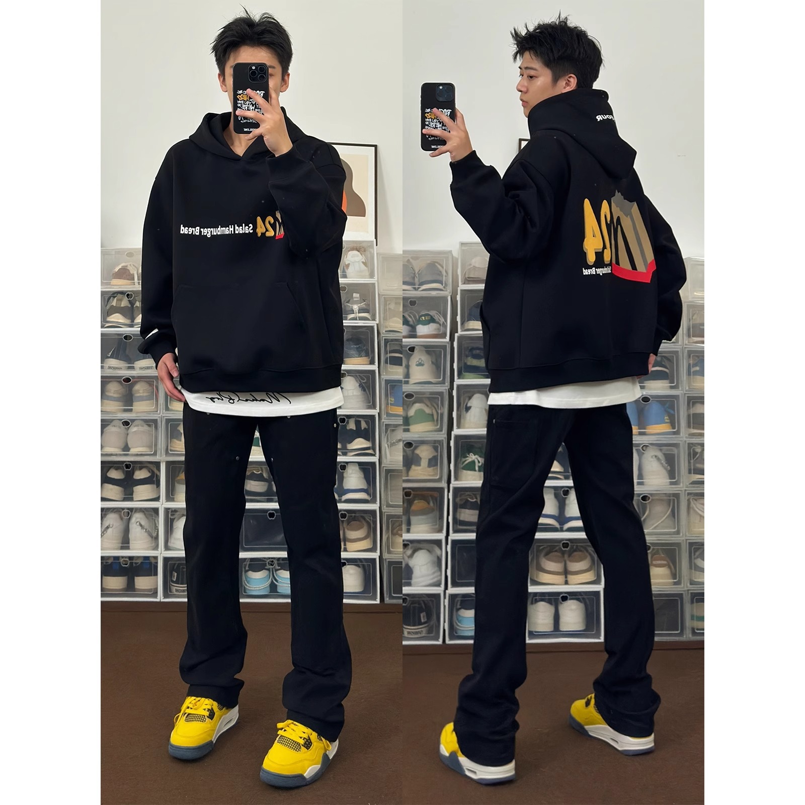 Guochao 하이 스트리트 레터 디자인 후드 스웨터 남자의 새로운 루즈 올 매치 후드 탑 2024 가을과 겨울스토어 가기