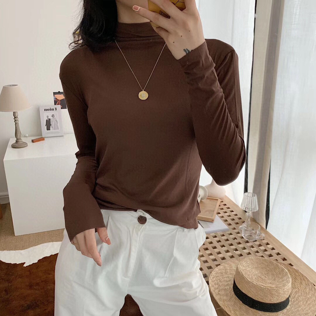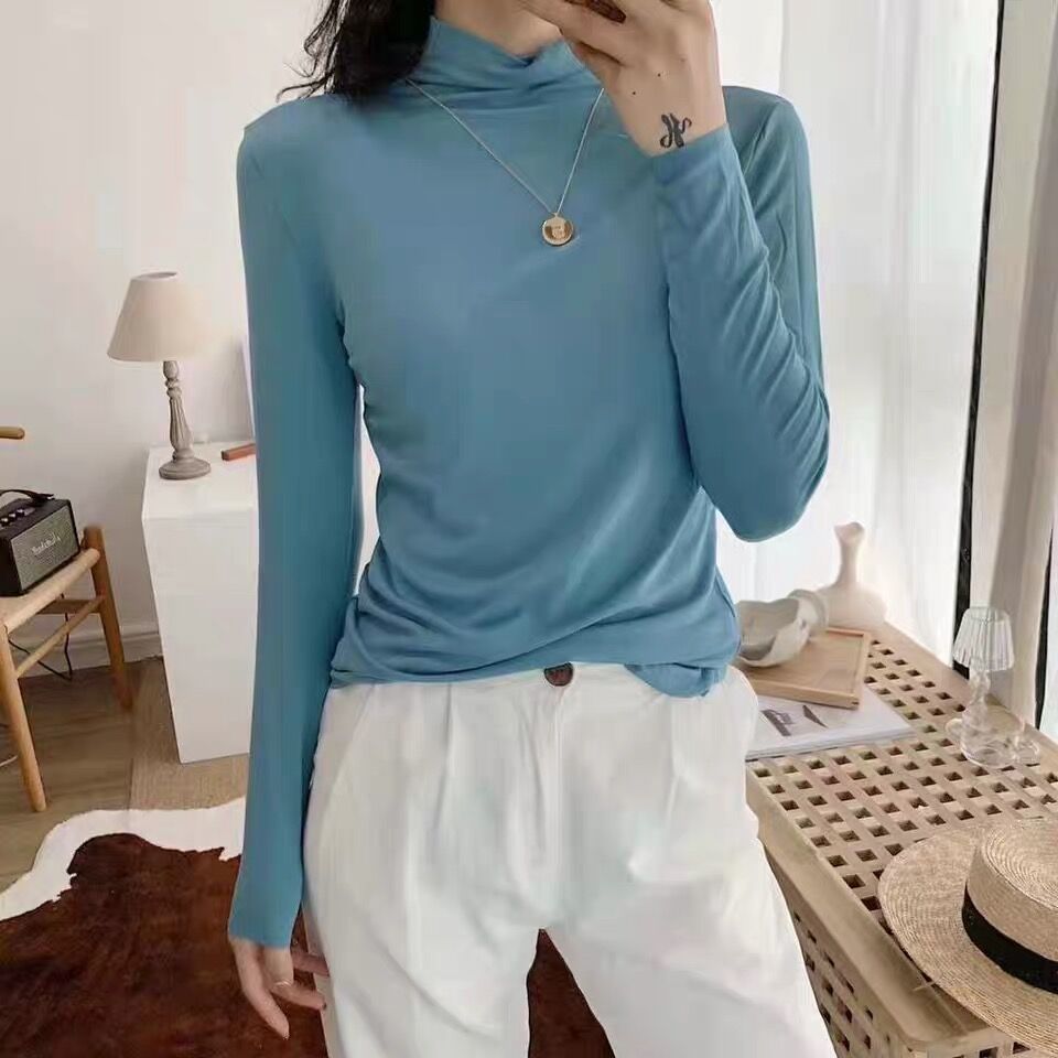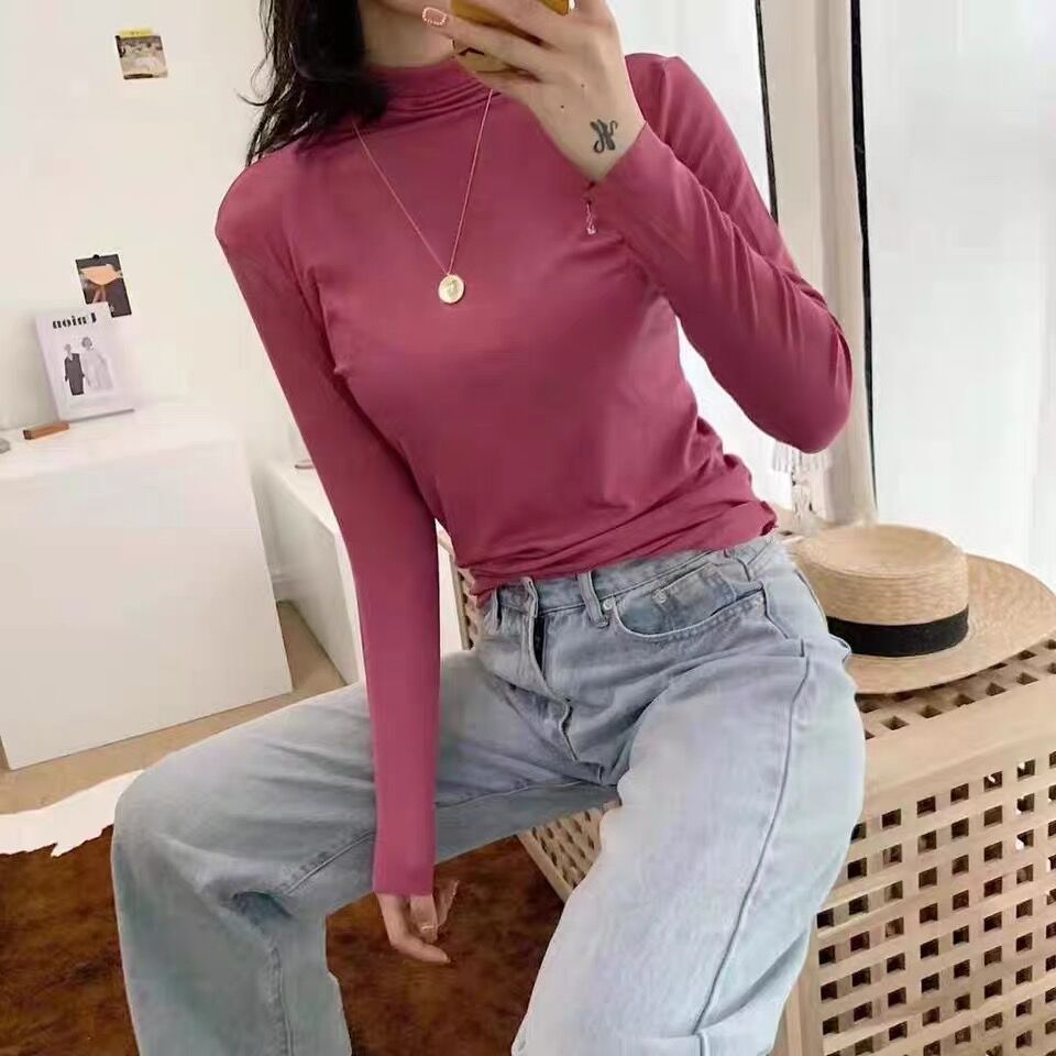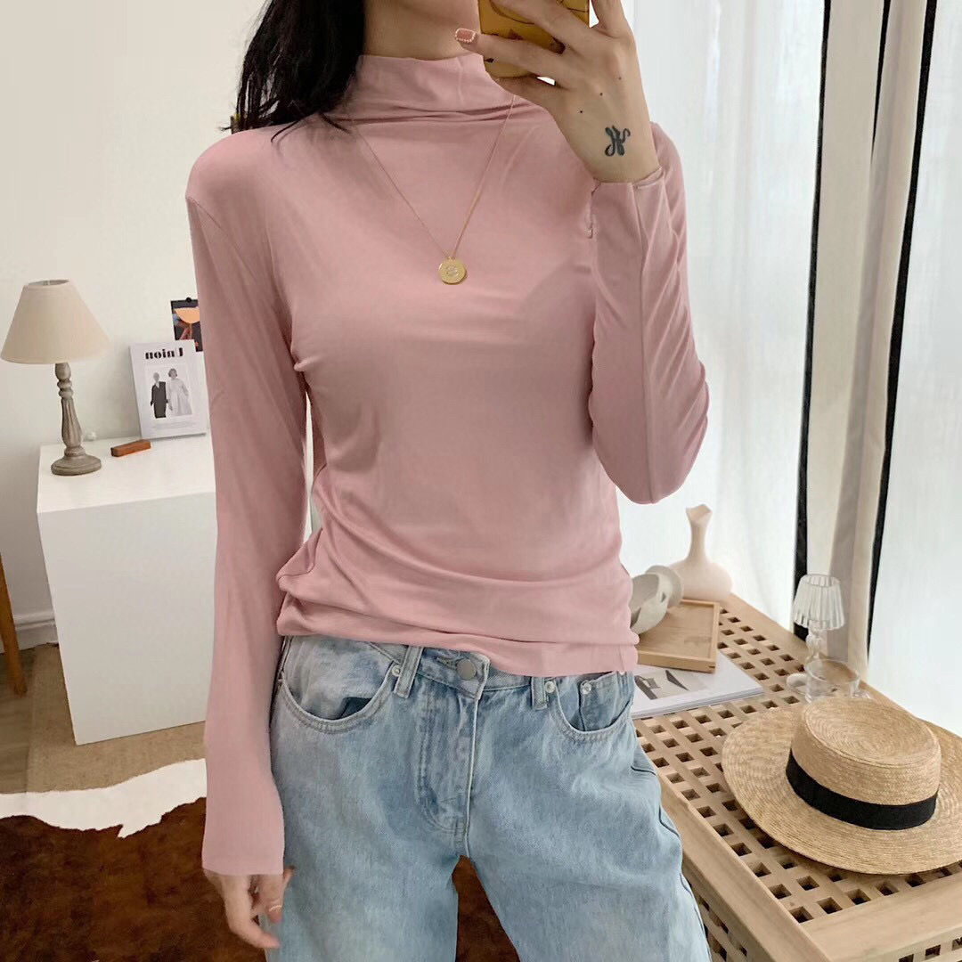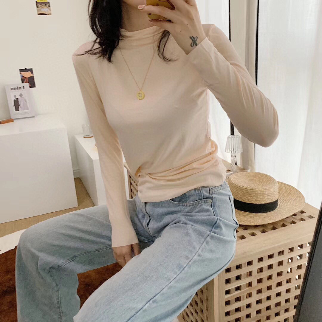 가을과 겨울 3569 하프 터틀넥 모달 올 매치 니트 원활한 베이스 셔츠 여자 내부 탑 긴팔 슬림 핏 슬림스토어 가기