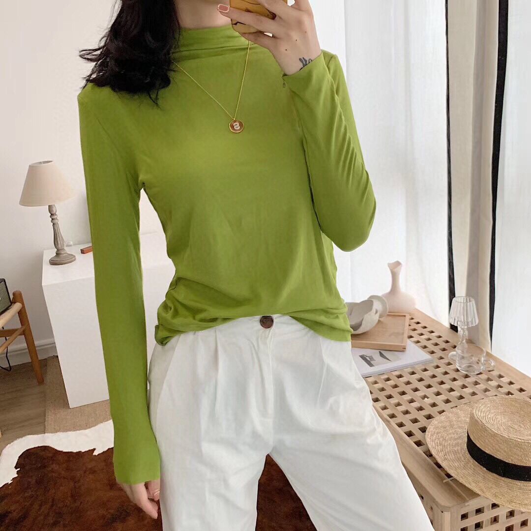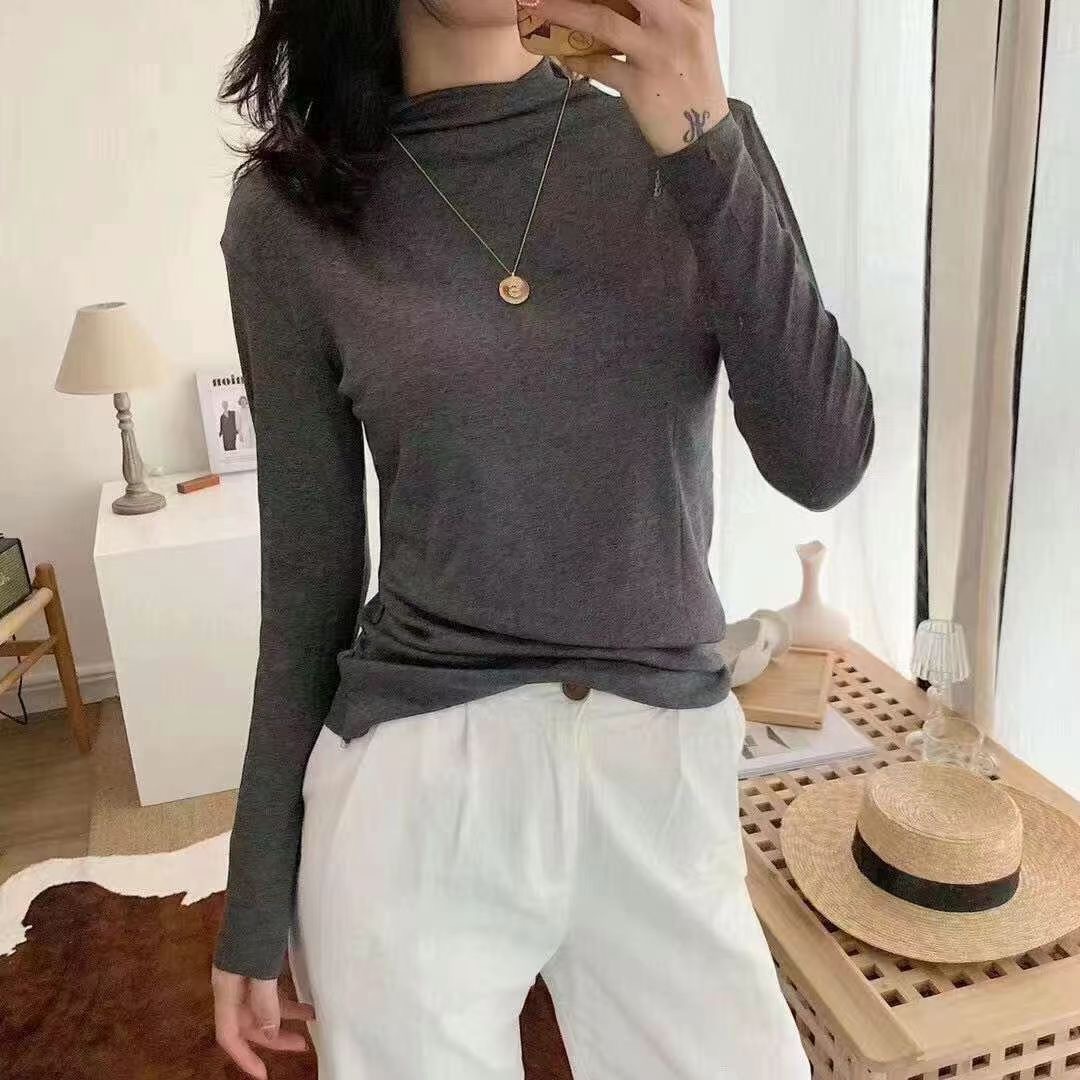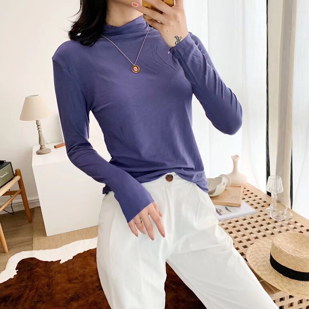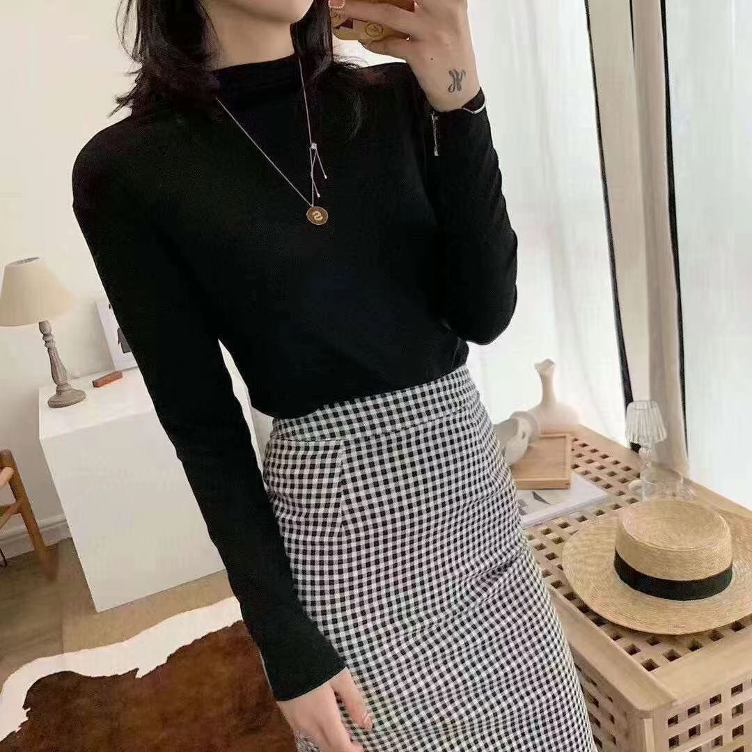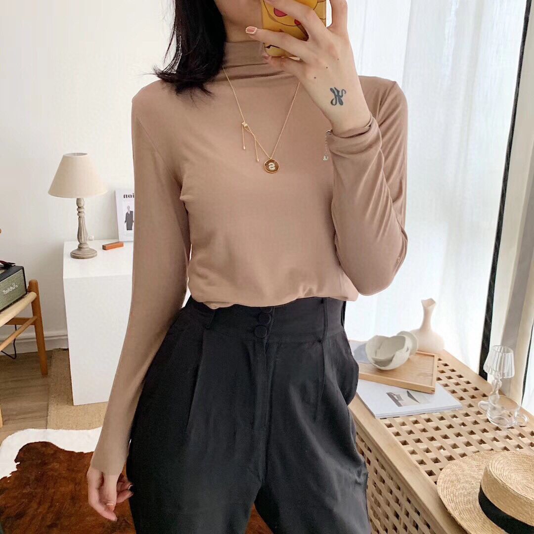가을과 겨울 3569 하프 터틀넥 모달 올 매치 니트 원활한 베이스 셔츠 여자 내부 탑 긴팔 슬림 핏 슬림스토어 가기