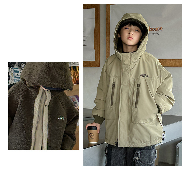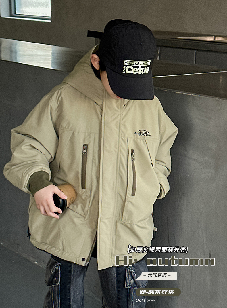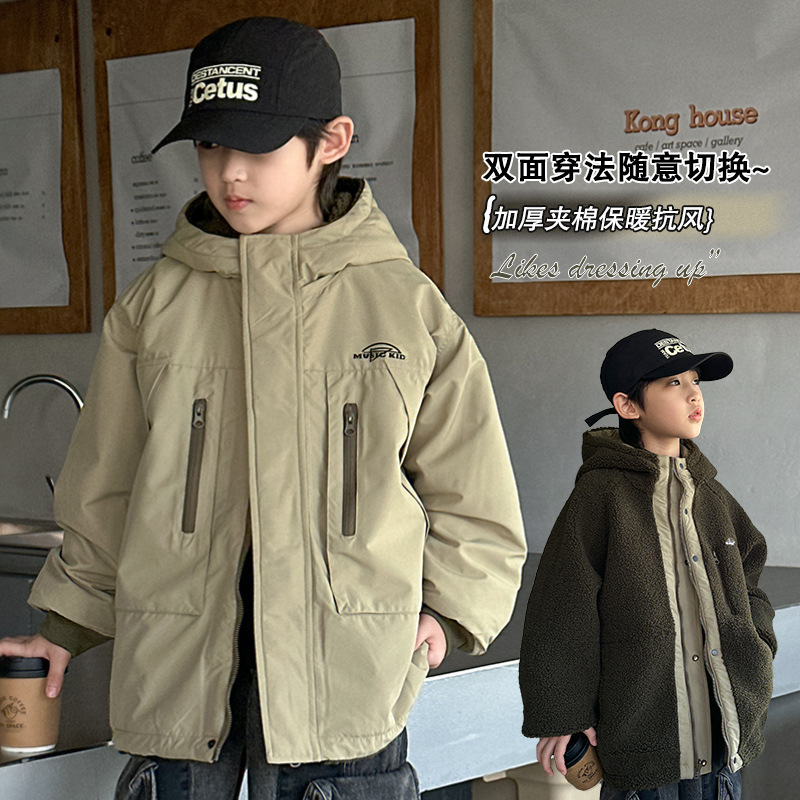 남아용 플리스 작업복 재킷 겨울옷 2025 신상 중대형 어린이 겨울 양면 착용 면옷 남아용 양털