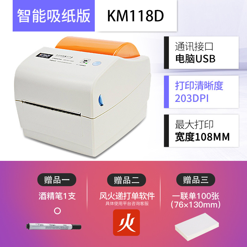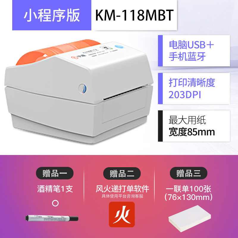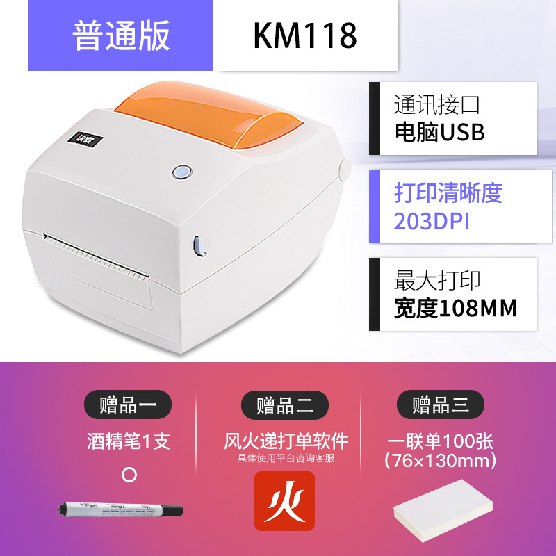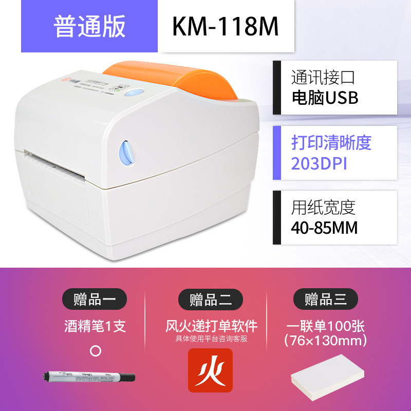 빠른 마이 KM118M 전자 얼굴 싱글 싱글 머신 Shentong Yuantong 익스프레스 이메일 열 접착 라벨 바코드 머신스토어 가기
