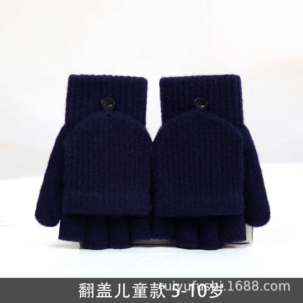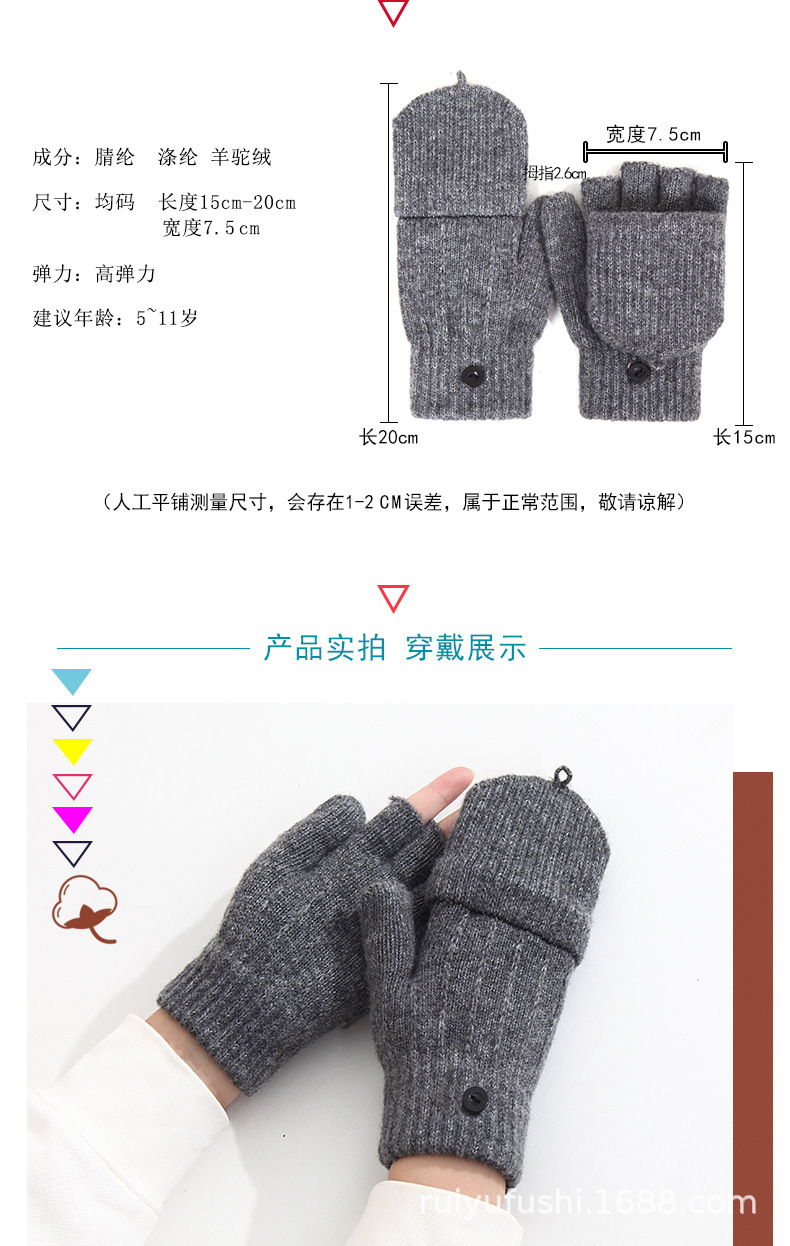 어린이 겨울 중 및 대형 어린이 학생 장갑 따뜻한 반 손가락 플립 온 오픈 핑거 듀얼-소년 소녀를위한 글쓰기 장갑스토어 가기