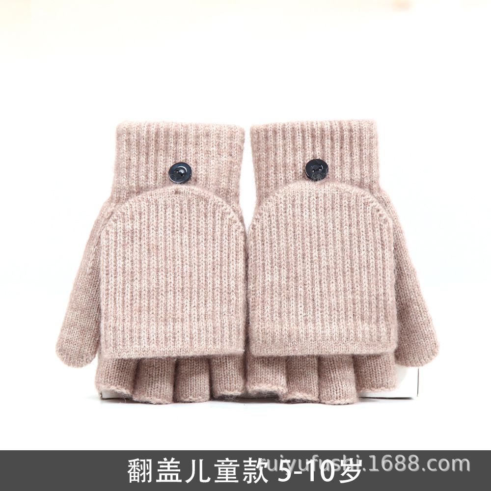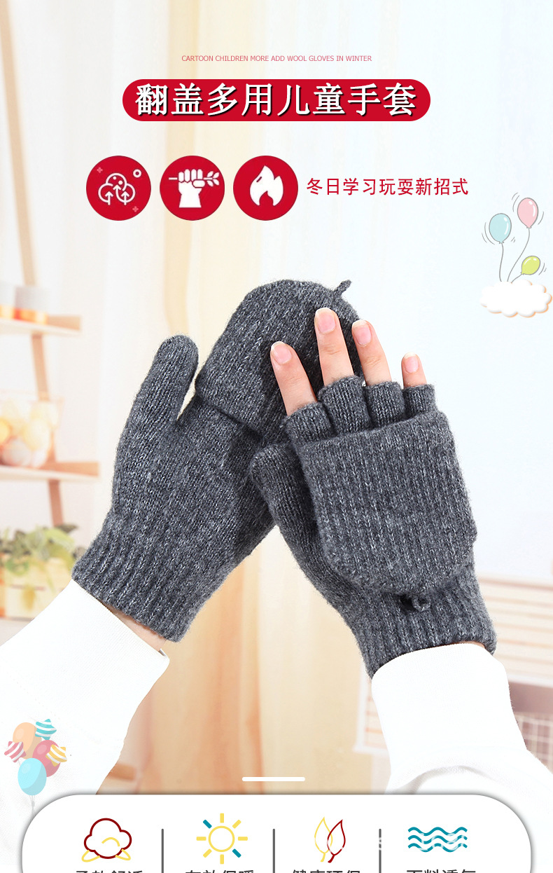어린이 겨울 중 및 대형 어린이 학생 장갑 따뜻한 반 손가락 플립 온 오픈 핑거 듀얼-소년 소녀를위한 글쓰기 장갑