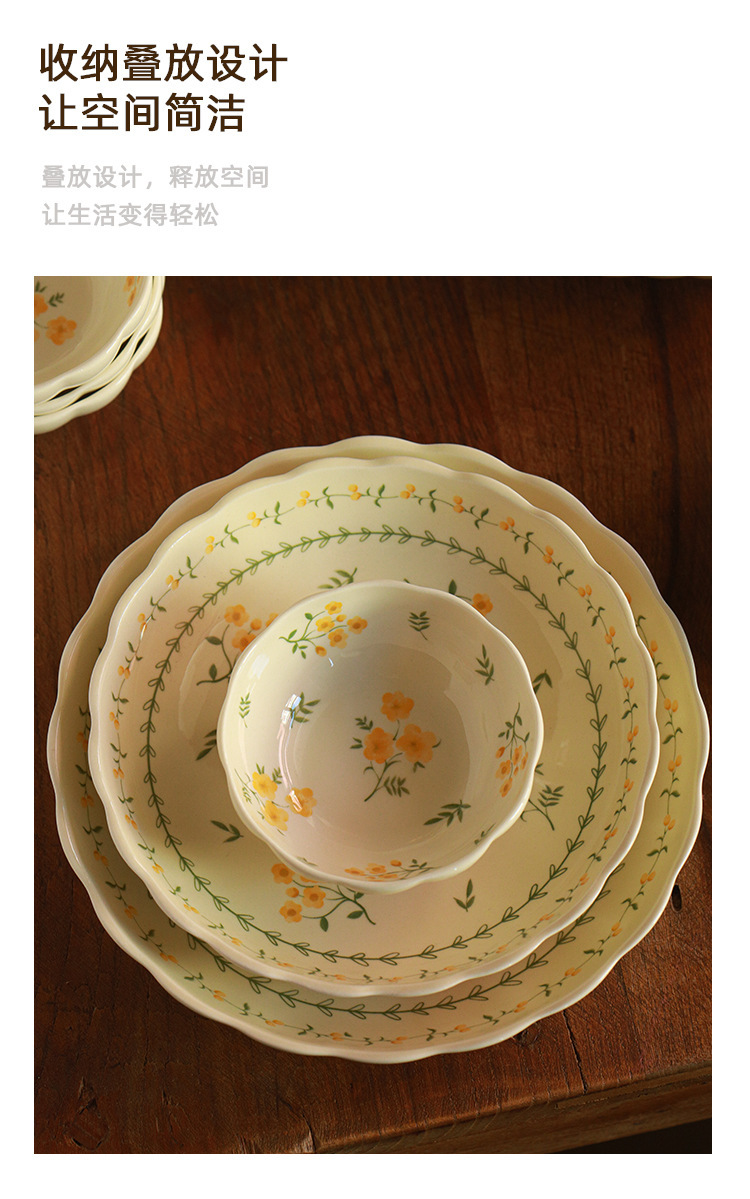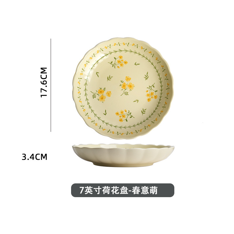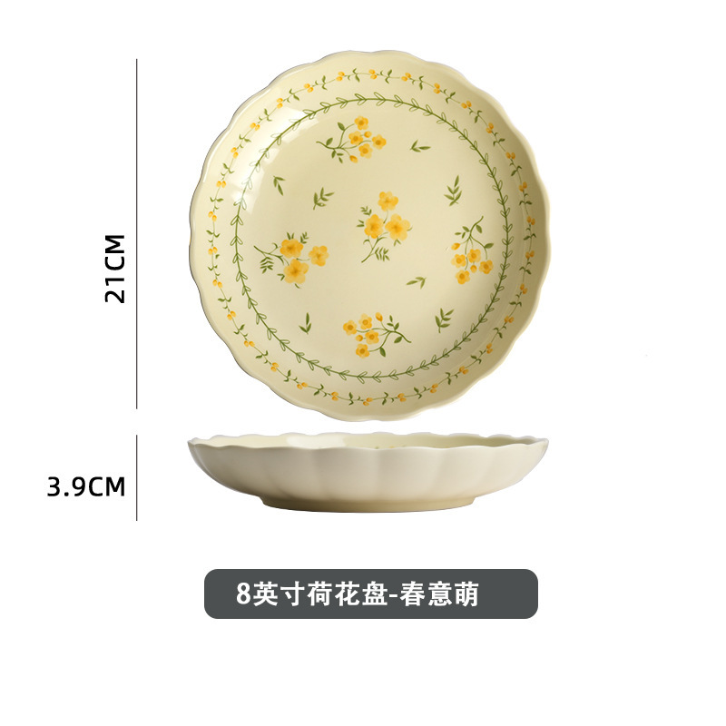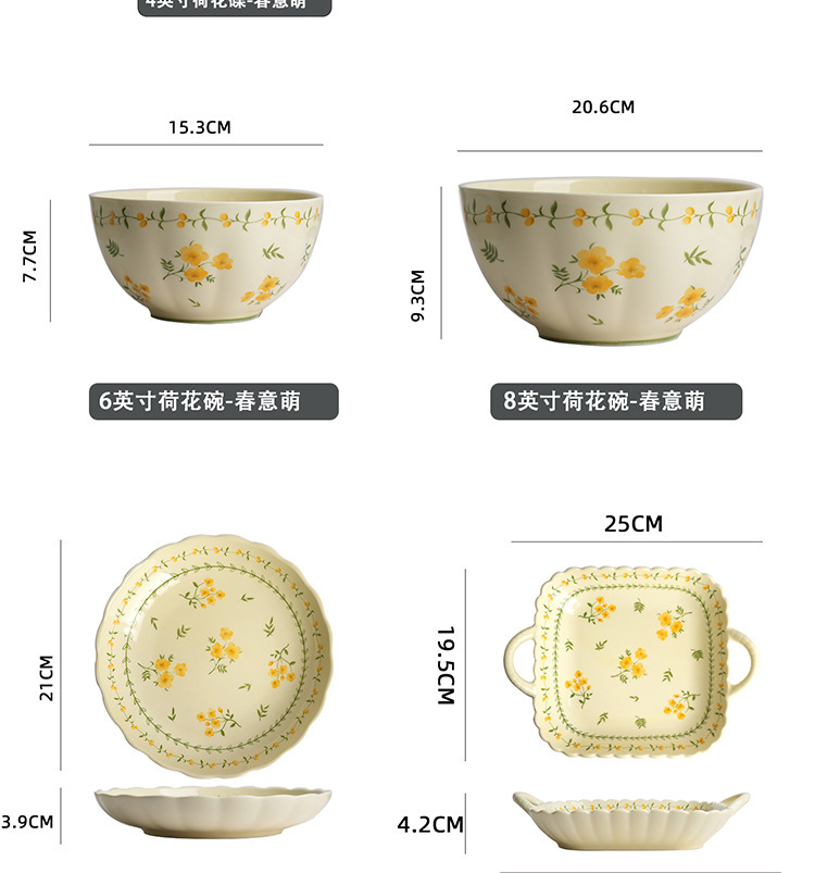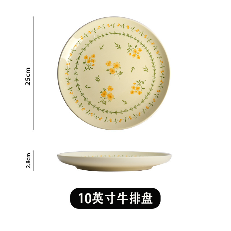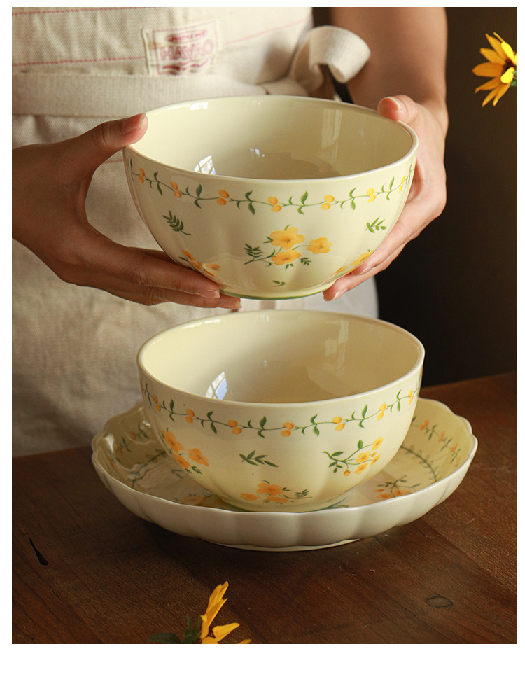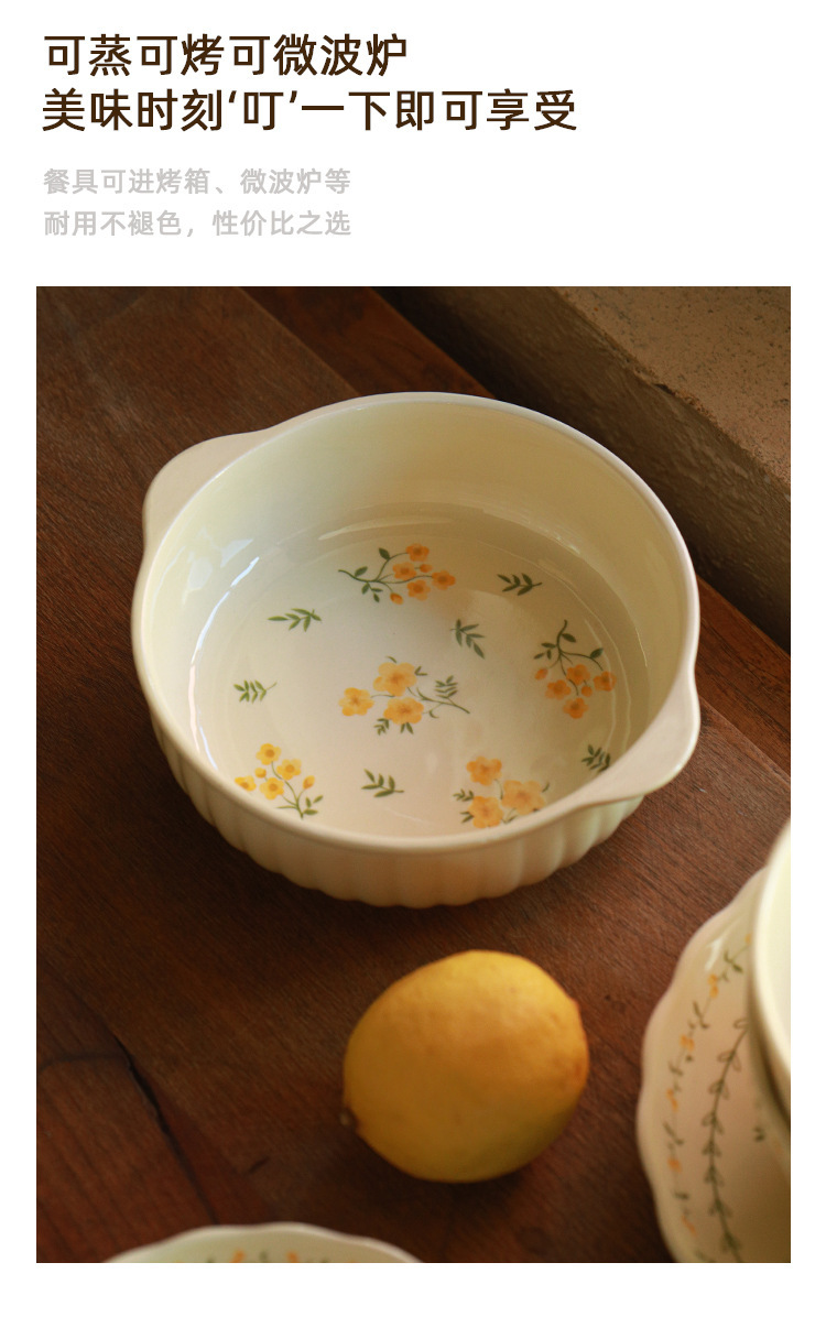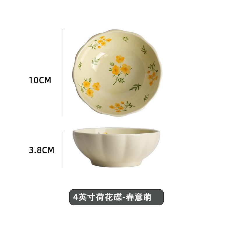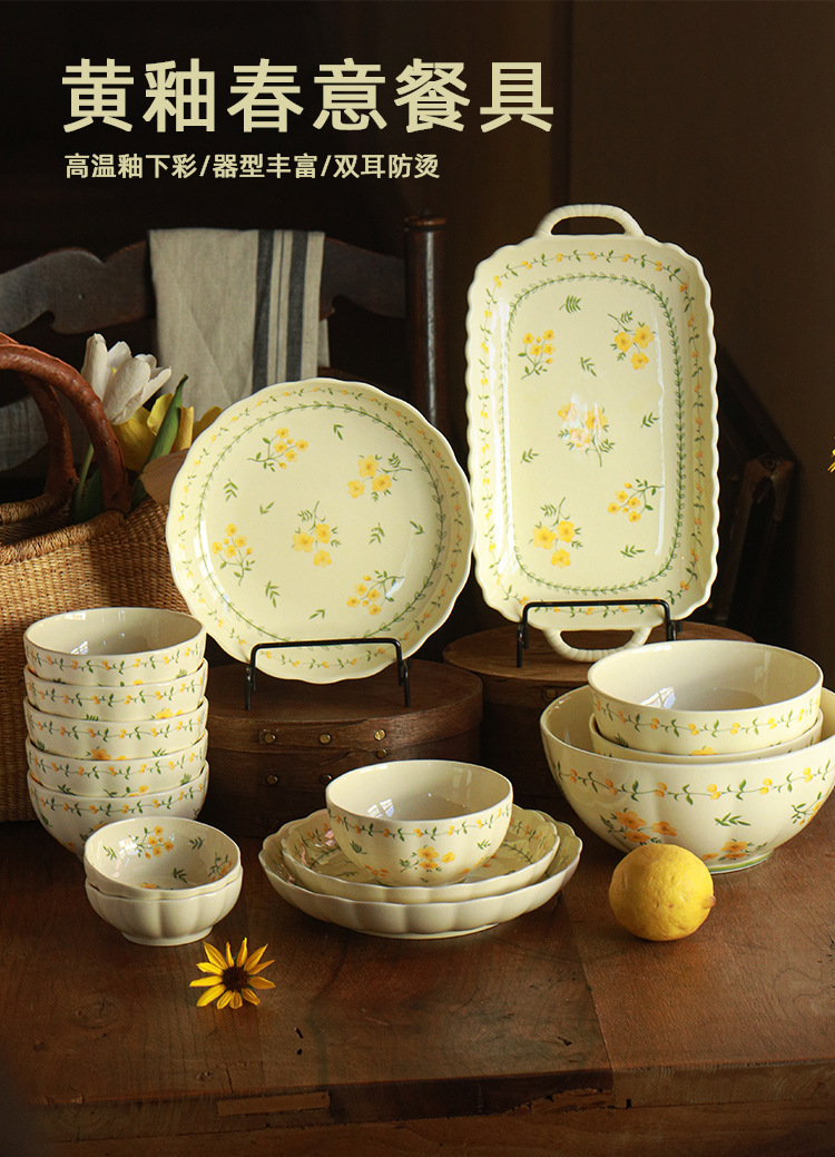 작은 신선한 노란색 유약 세라믹 식기 가정용 세라믹 디스크 생선 접시 밥 그릇 유약 컬러 수프 그릇 식기 세트스토어 가기