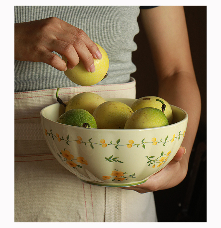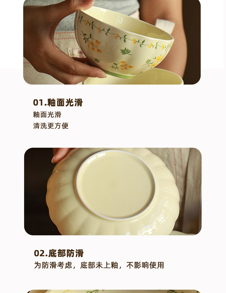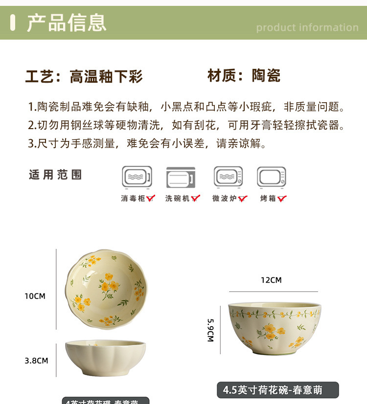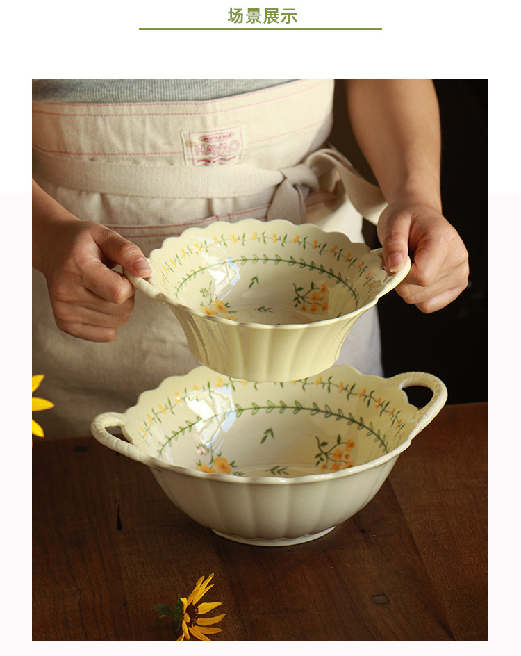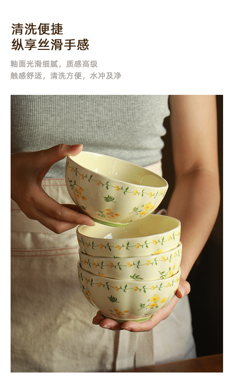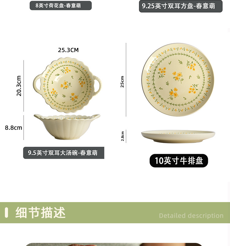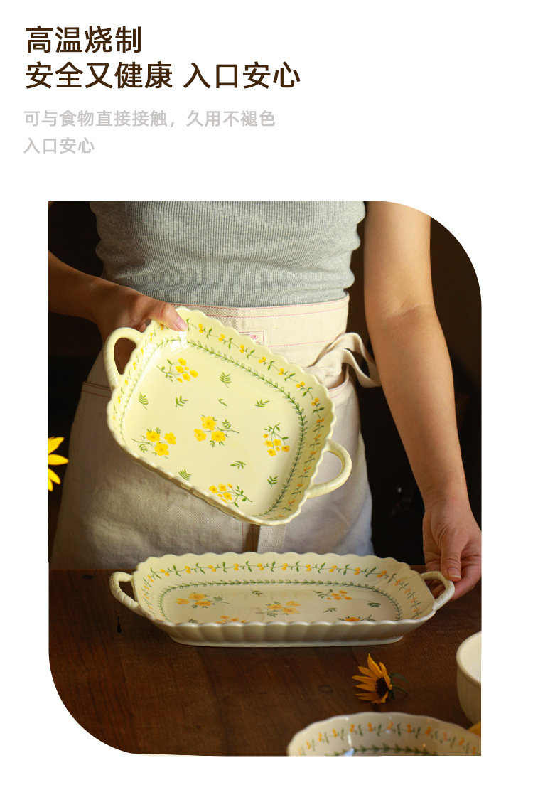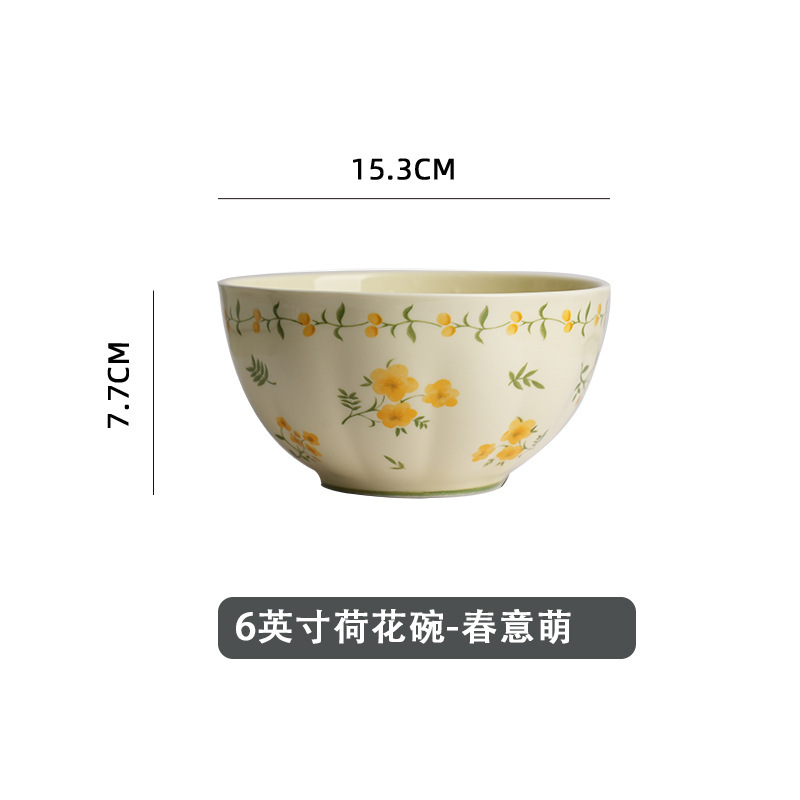 작은 신선한 노란색 유약 세라믹 식기 가정용 세라믹 디스크 생선 접시 밥 그릇 유약 컬러 수프 그릇 식기 세트스토어 가기