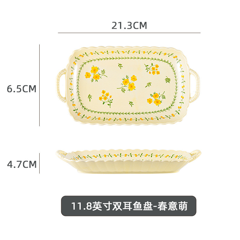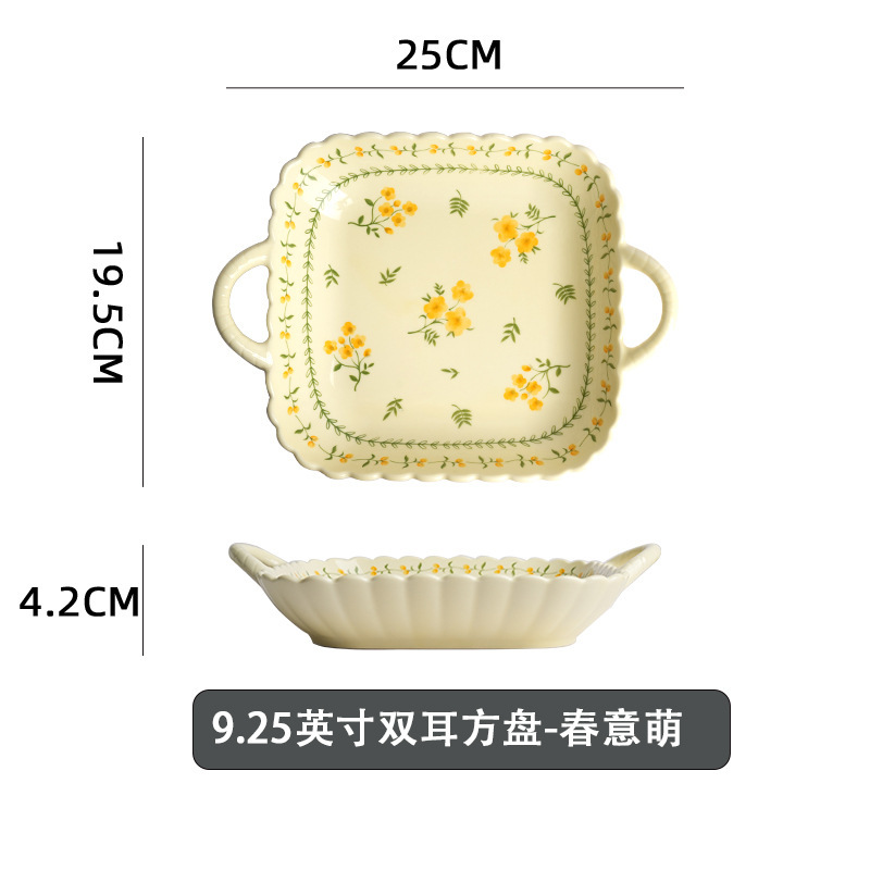 • 9.25inch 쌍귀 사각 접시 - 봄이 귀엽다