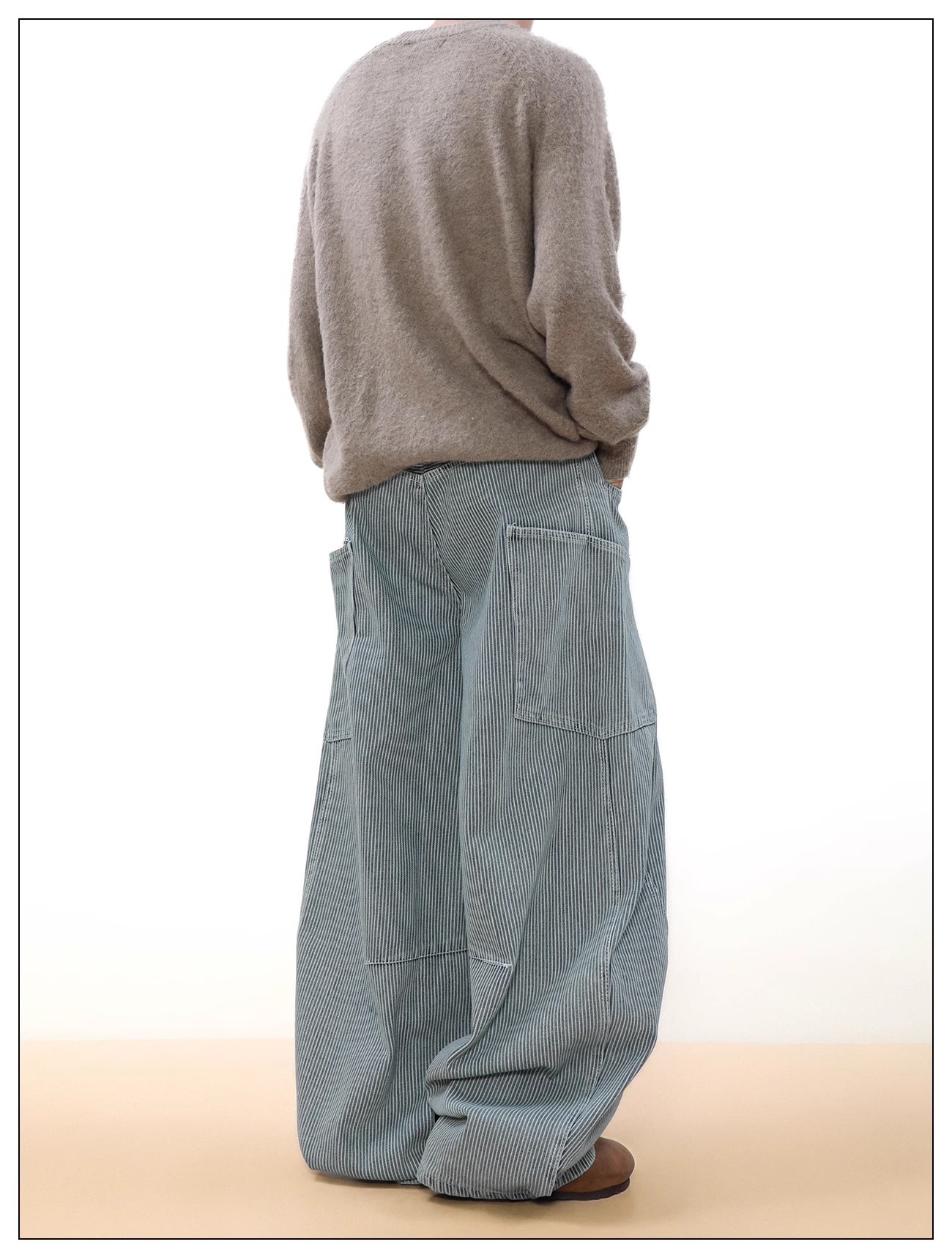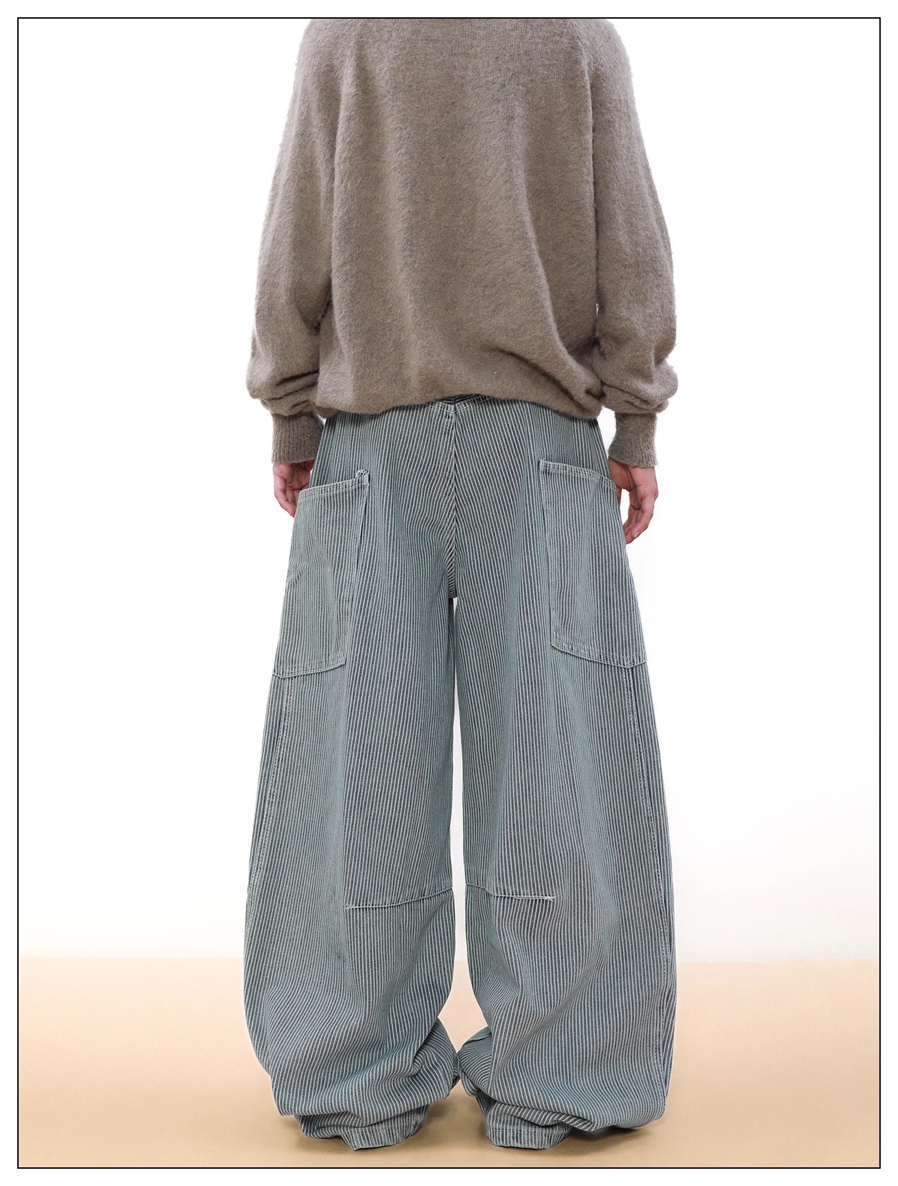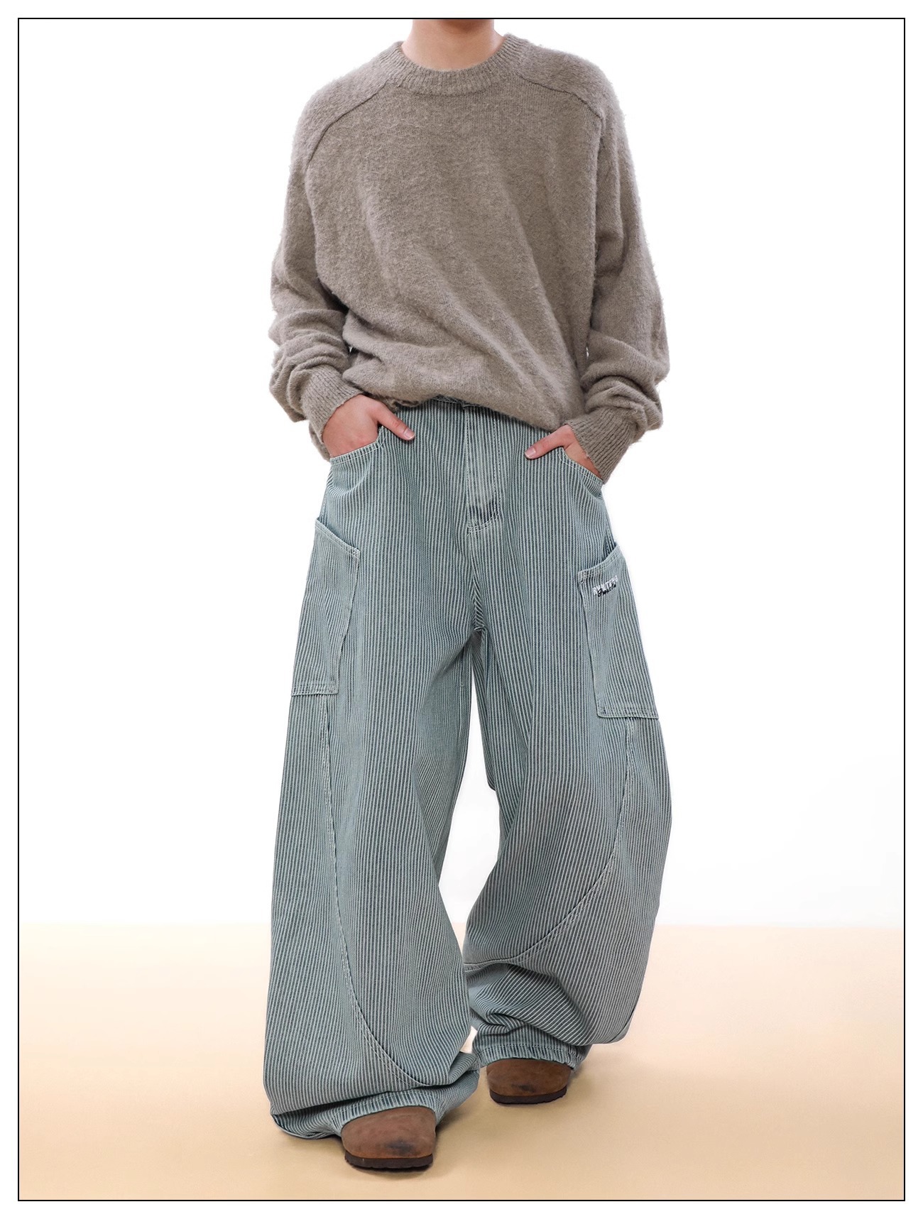 아메리칸 스타일 복고풍 편지 수 놓은 파란색 수직 줄무늬 청바지 남성 봄과 가을 새 커플의 캐주얼 와이드 다리 긴 바지스토어 가기