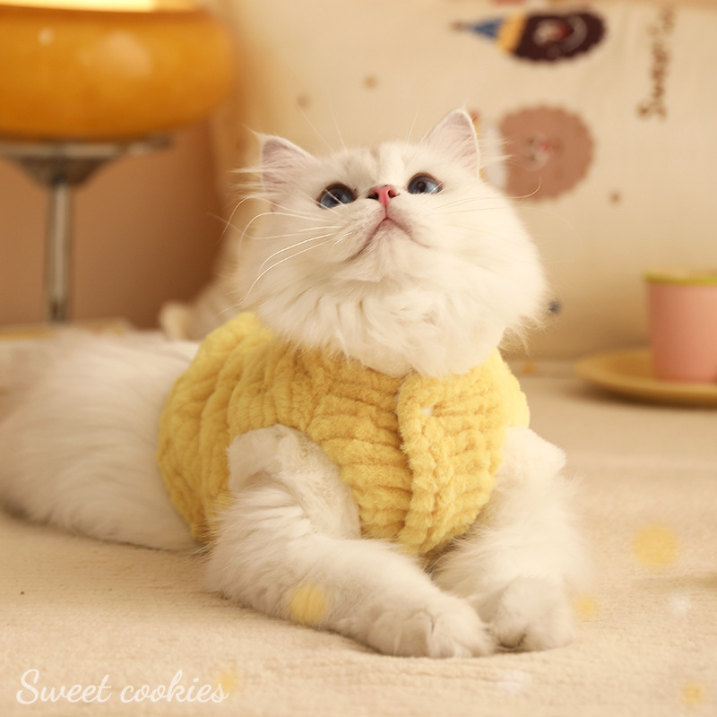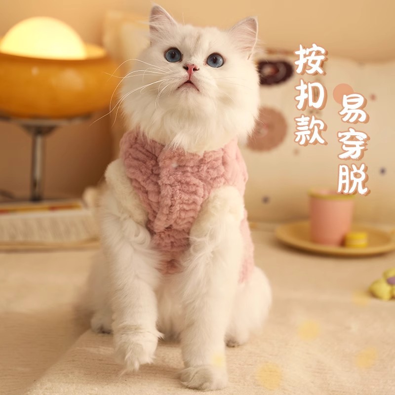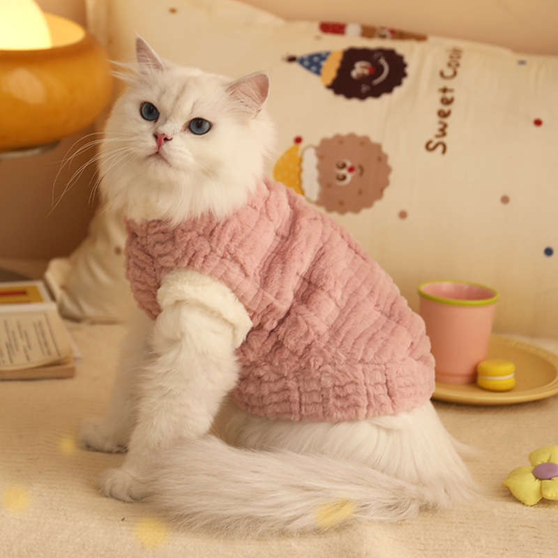 귀여운 고양이 옷 겨울 머리 증거 따뜻한 조끼 애완 동물 인형 인형 인형 인형술 짧은 파란색 고양이 코튼 코트 겨울 옷