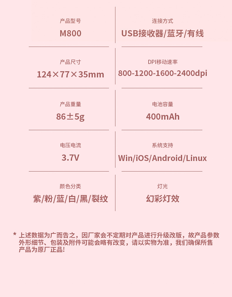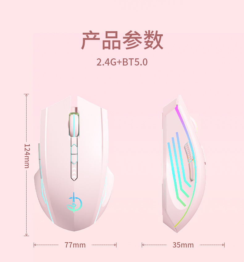 • 플래그십 버전 7키 - 듀얼 모드 - 2400DPI - RGB 조명 - 원키 데스크탑 복귀 - 전기 도금 보라색