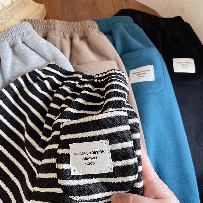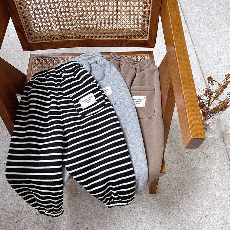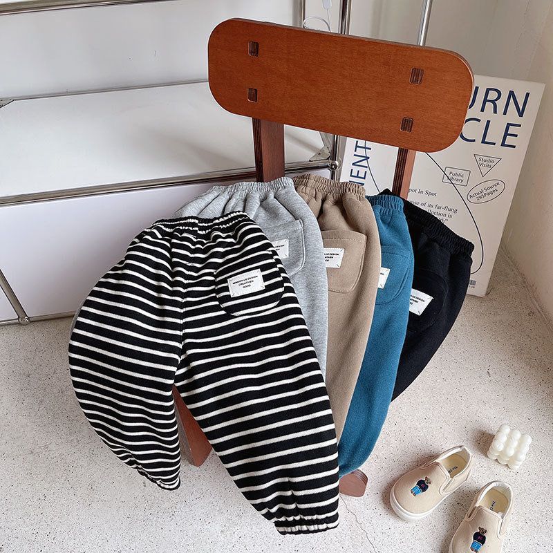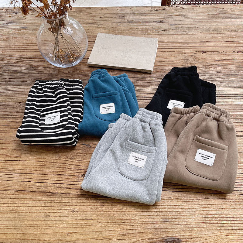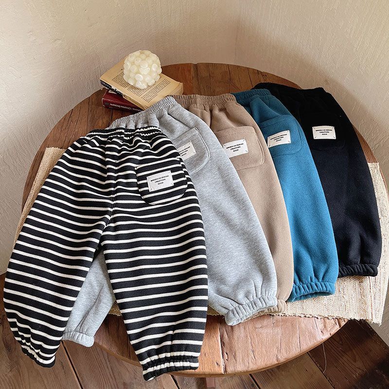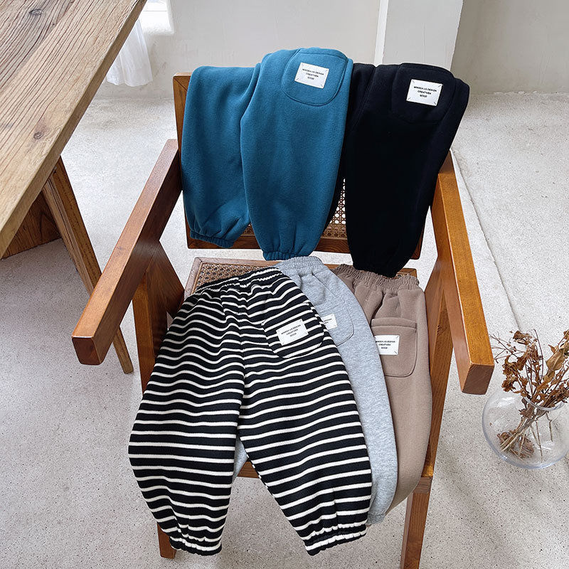 어린이 기모 스포츠 바지 가을과 겨울 두꺼운 유행 줄무늬 바지 한 조각 벨벳 느슨한 바지 어린이 아기 소년 운동복 바지