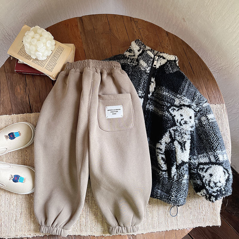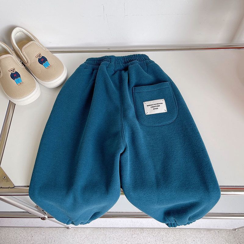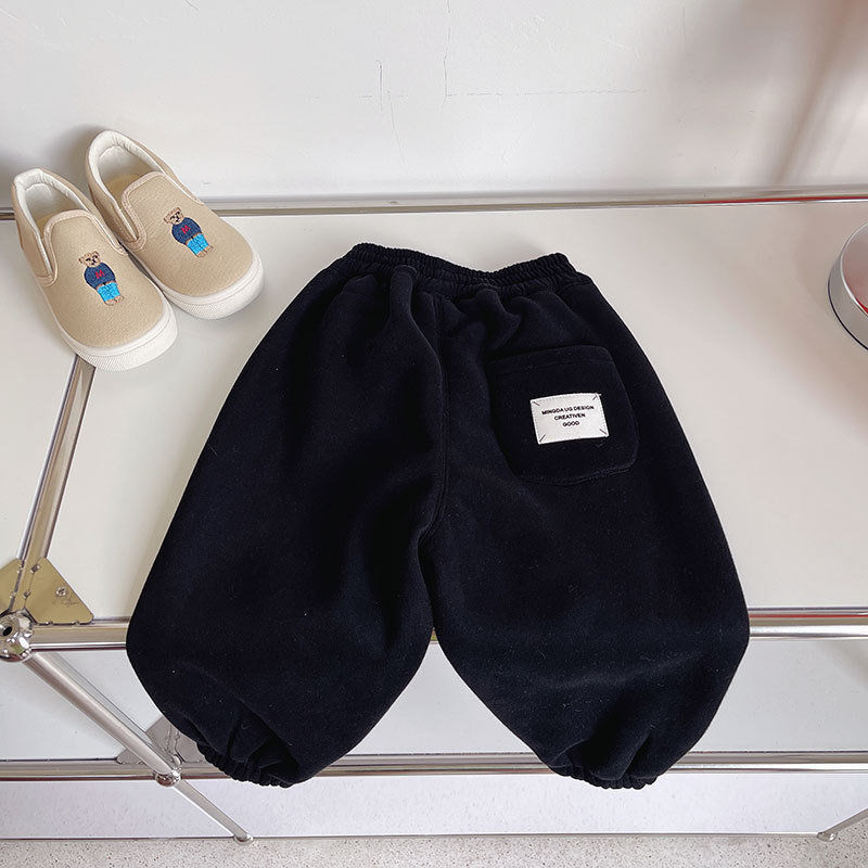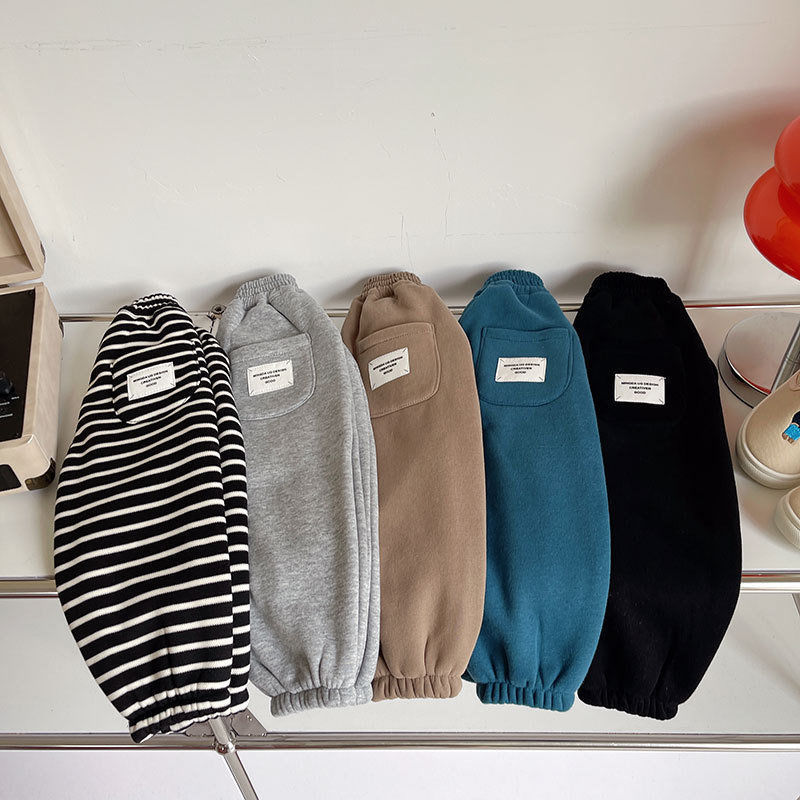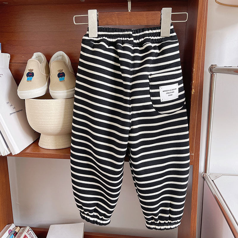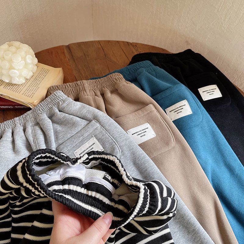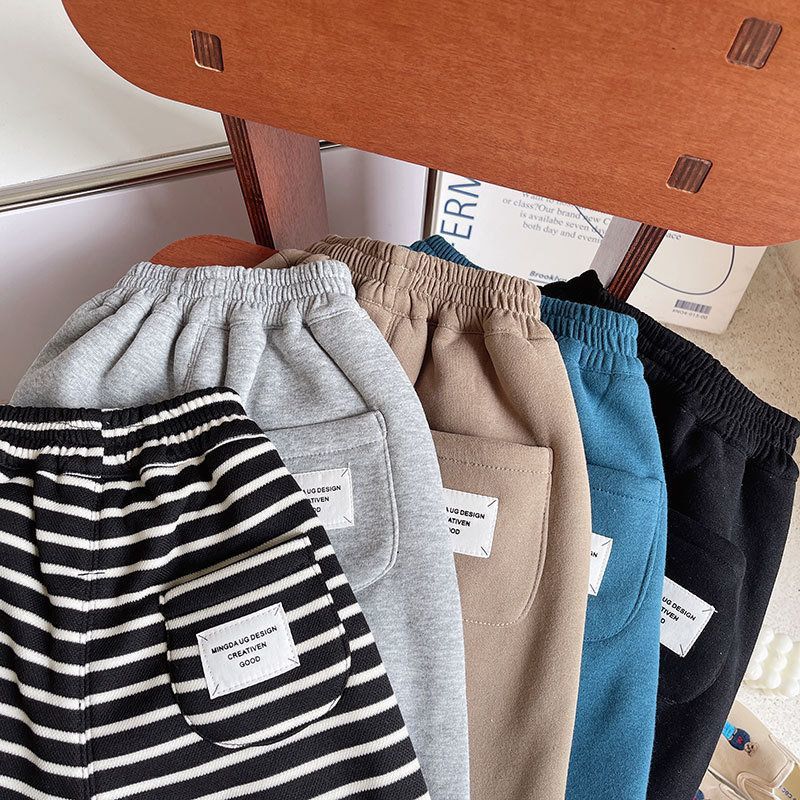 어린이 기모 스포츠 바지 가을과 겨울 두꺼운 유행 줄무늬 바지 한 조각 벨벳 느슨한 바지 어린이 아기 소년 운동복 바지