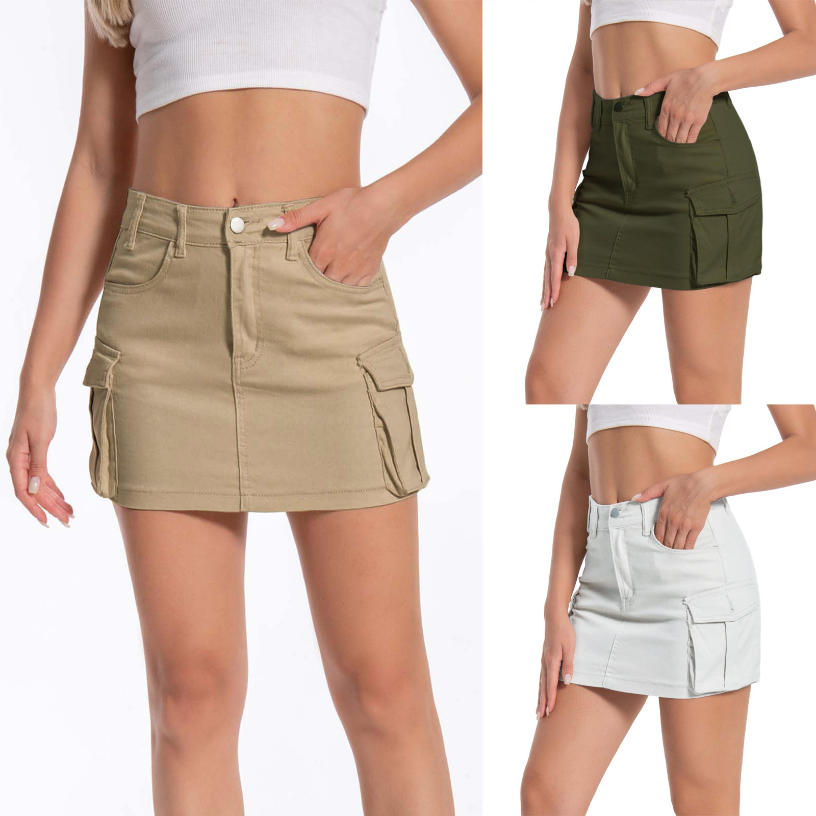 외국 무역 크로스보더 작업복 스커트 다중 포켓 패션 인기 초미니 스커트 여성복 유럽 및 미국 스타일 섹시 여성 캐주얼 반바지스토어 가기