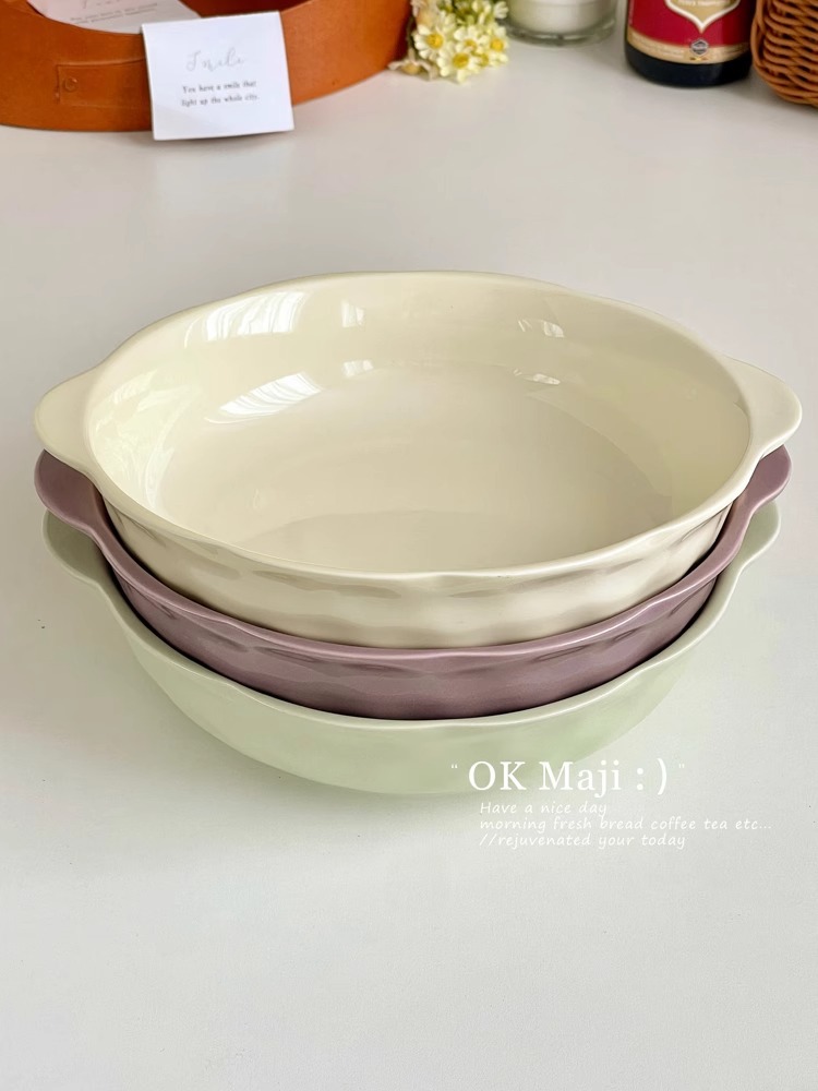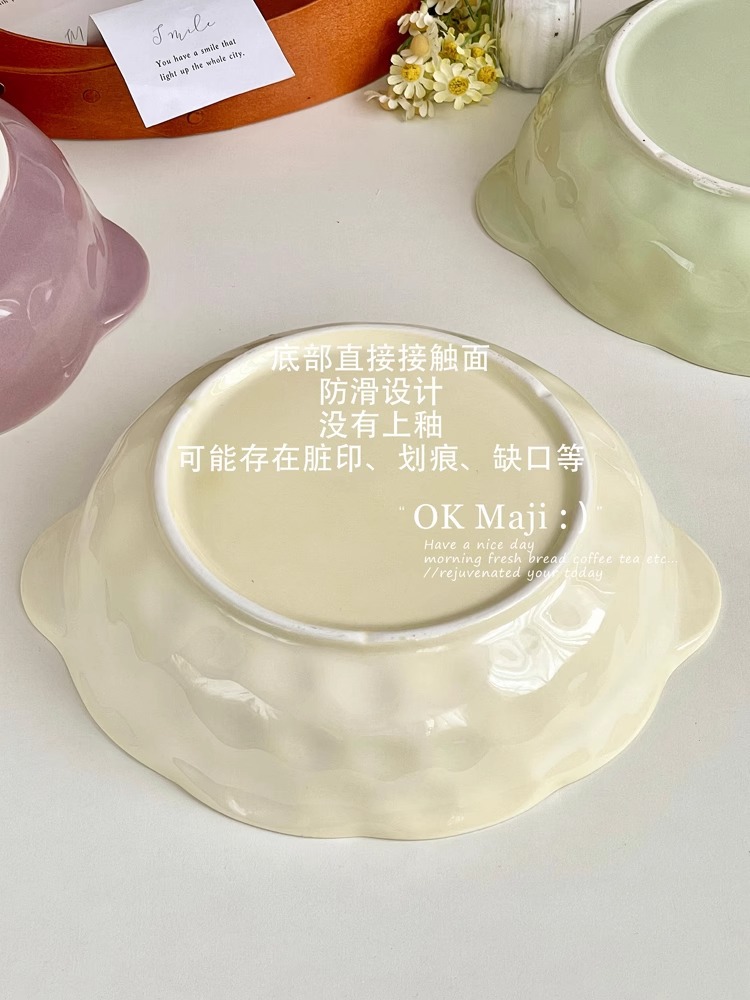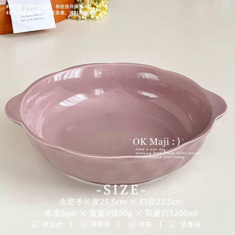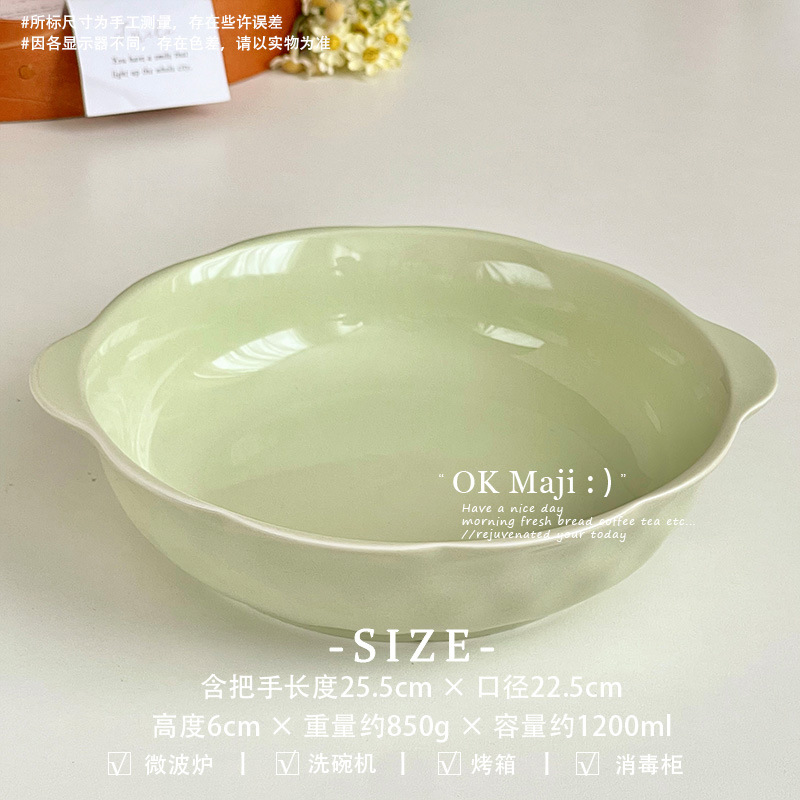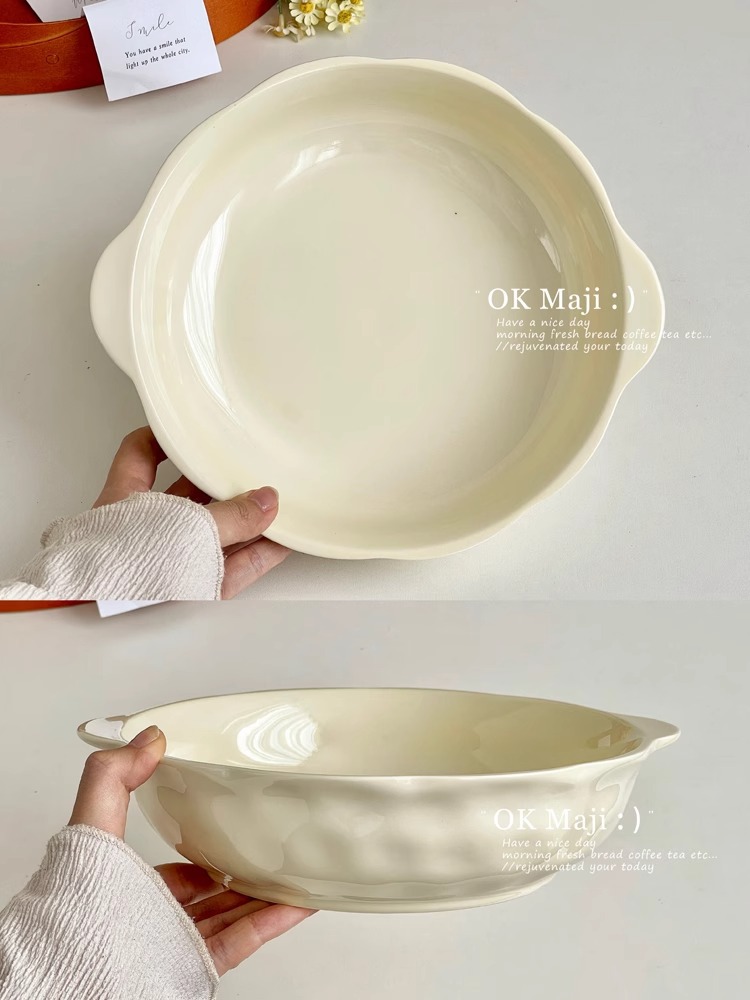 크림풍 식기 세라믹 양손잡이 국그릇 가정용 2025 신형 국수 그릇 고급스러운 디자인의 절임어 큰 그릇