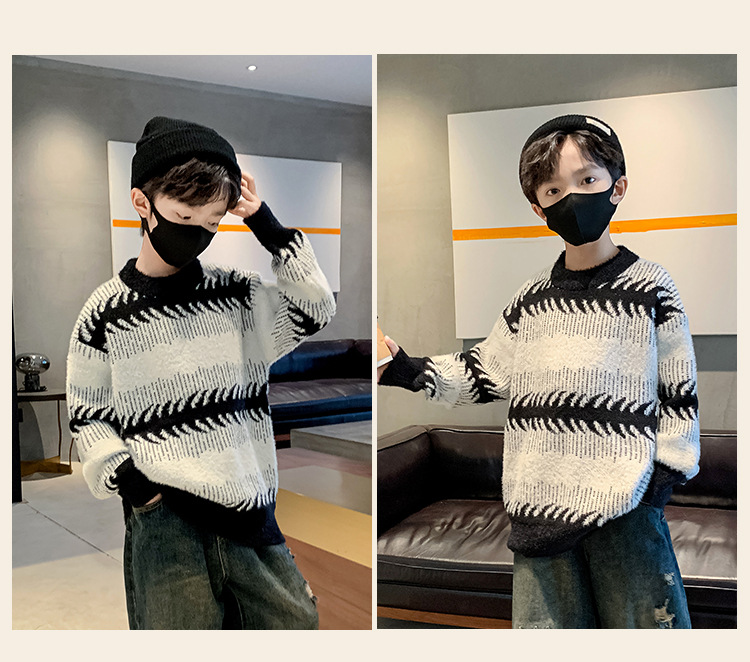 아동복 남아 겨울옷 두꺼운 스웨터 2025 신상 가을 겨울 중대형 남아 겨울 니트 이너웨어