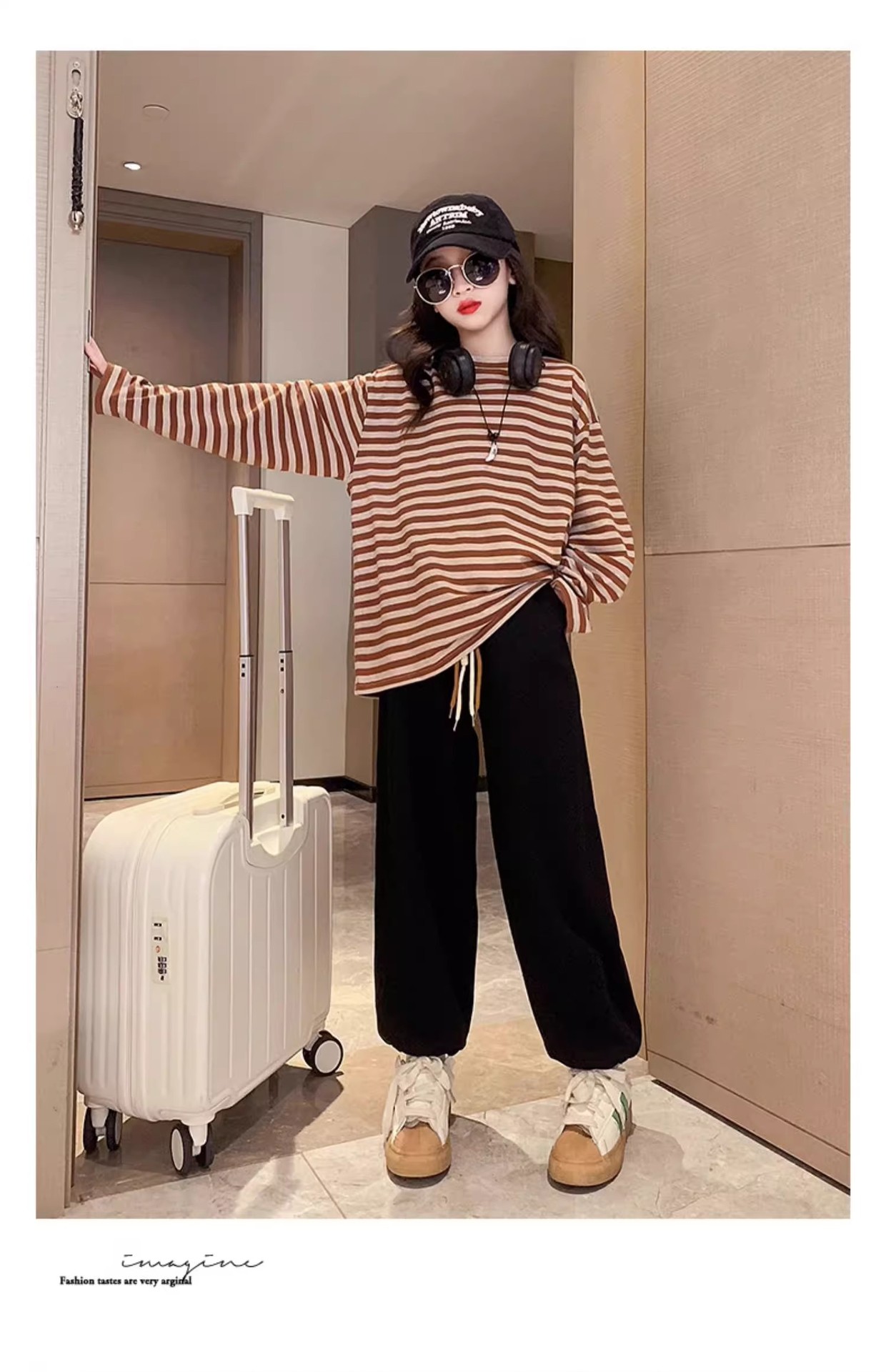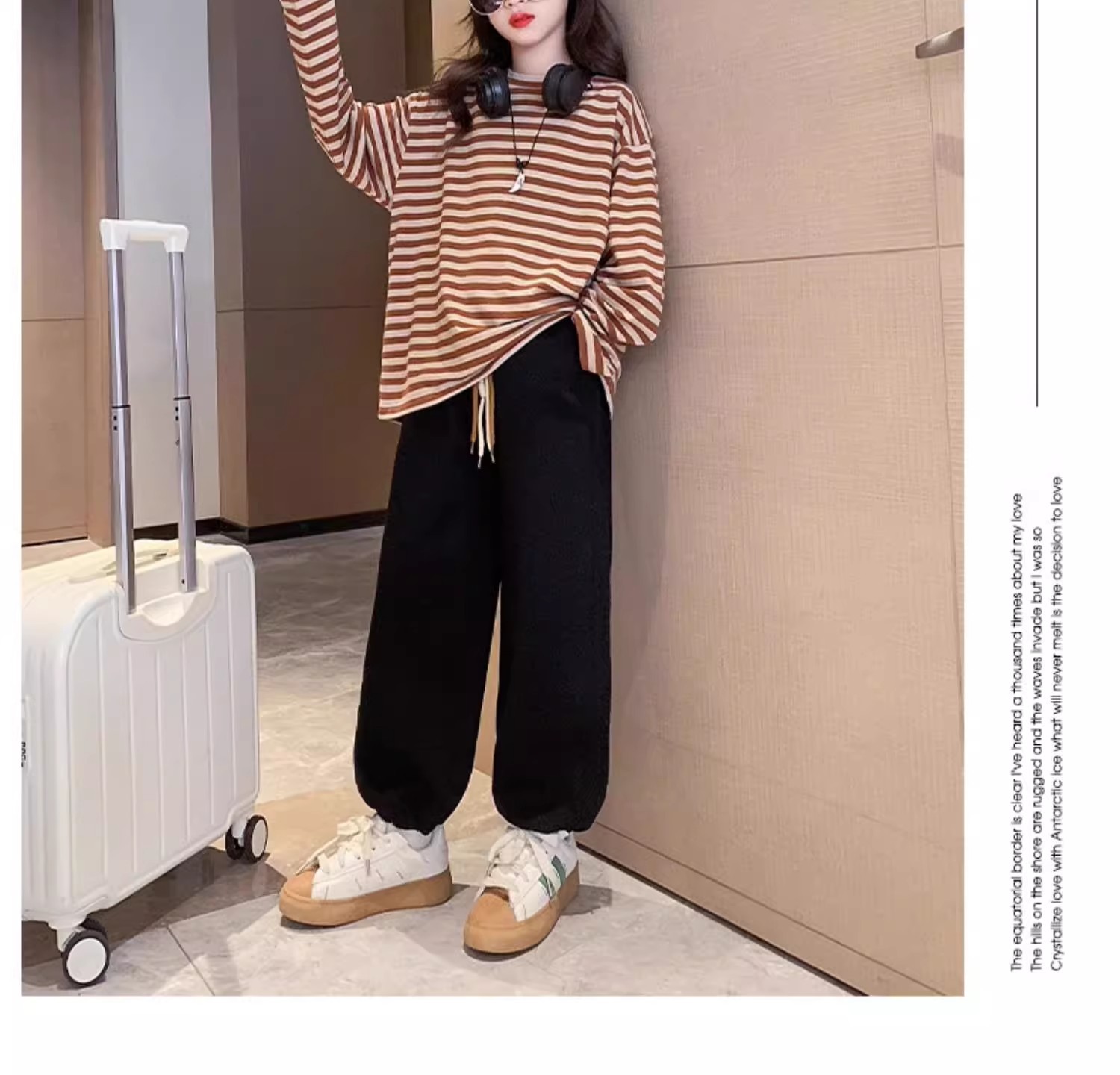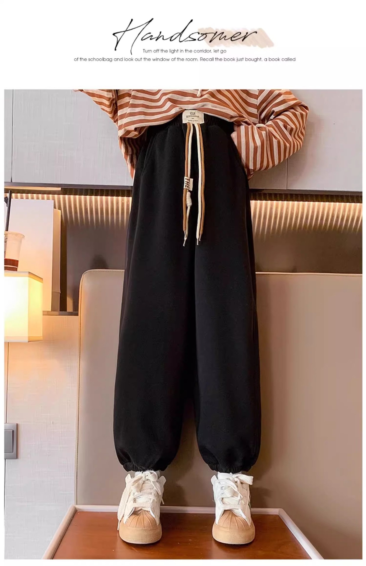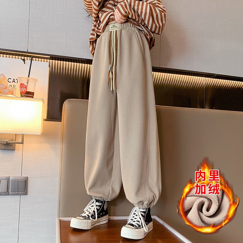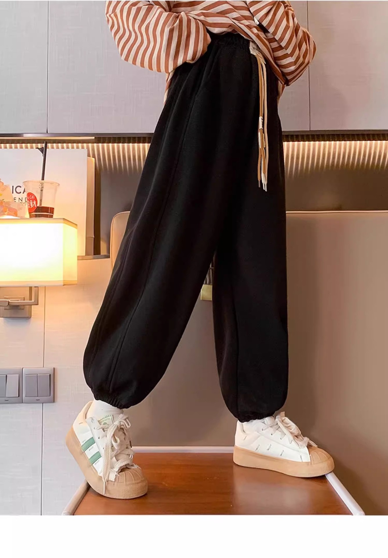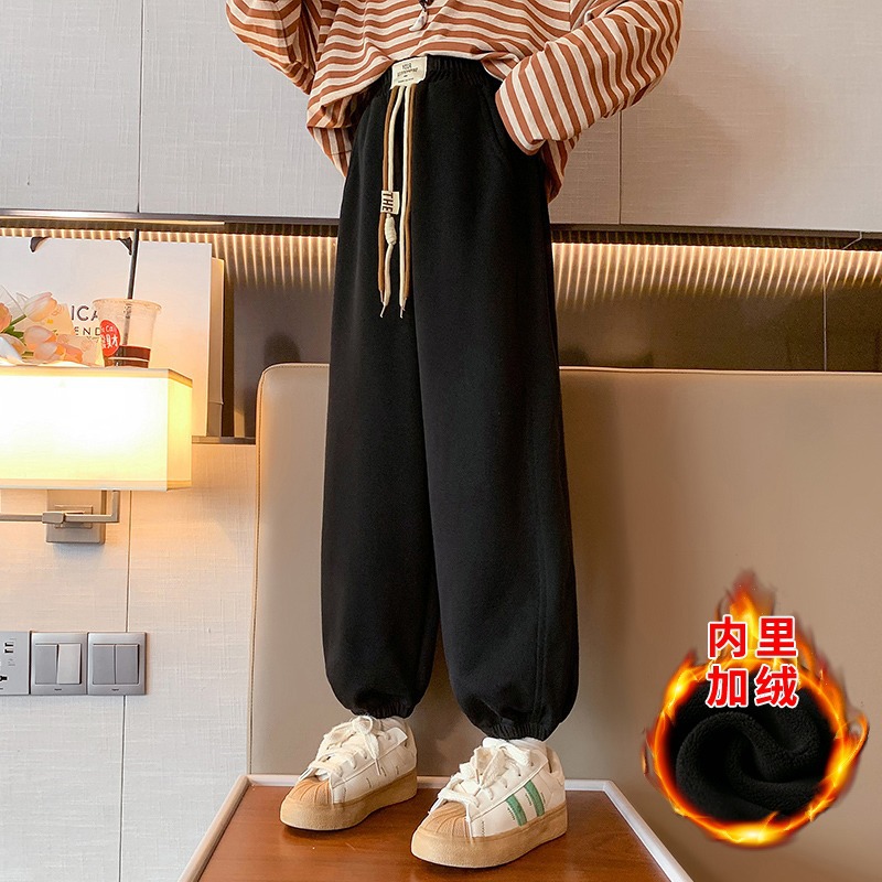 소녀 바지 가을과 겨울 2024 겨울 새로운 어린이 서양식 캐주얼 바지 큰 어린이 기모 스포츠 바지 바지