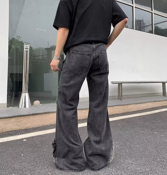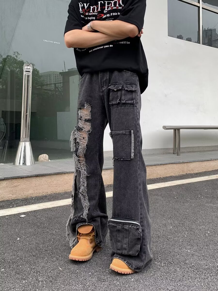 레트로 아메리칸 스타일 구식 리핑 청바지 남성 멀티 포켓 디자인 센스 루즈 캐주얼 하이 스트리트 올 매치 바지스토어 가기