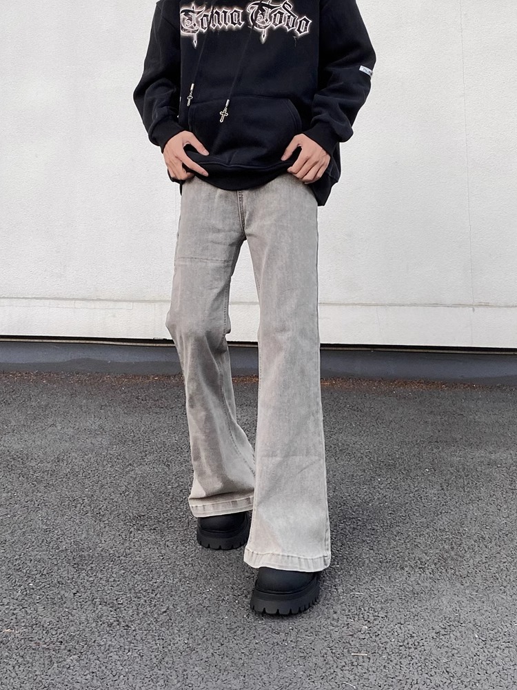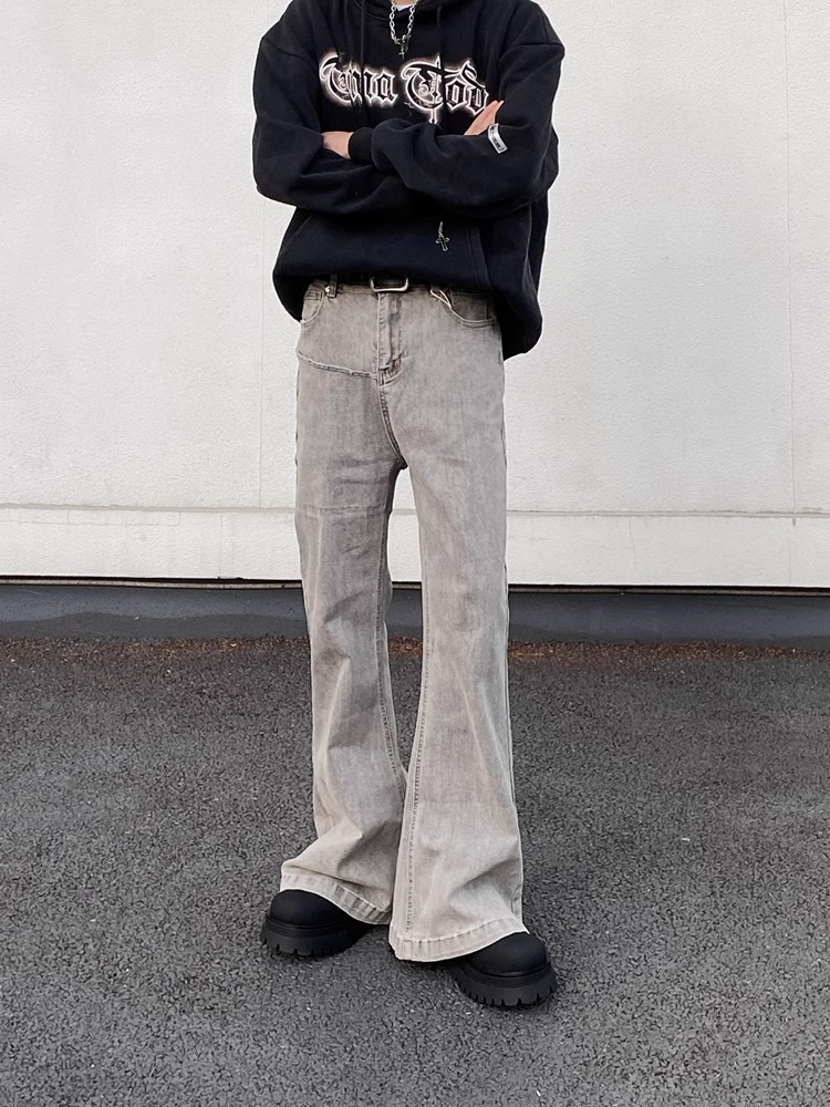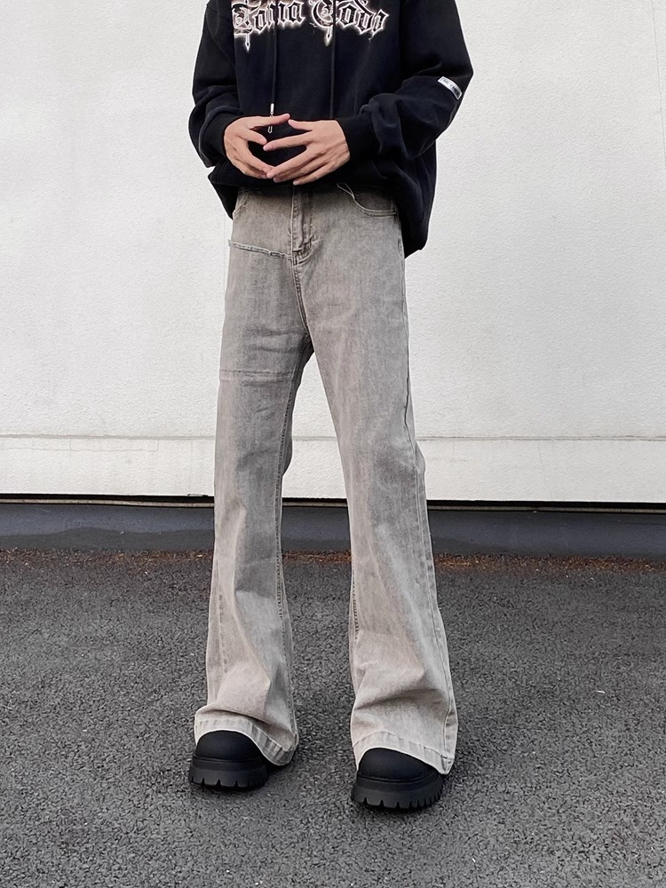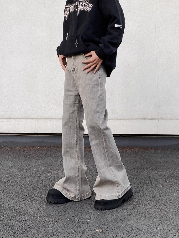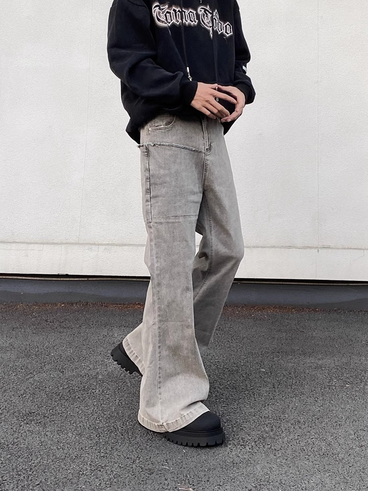 하이 스트리트 아메리칸 스타일 레트로 올드 시멘트 그레이 클렌핏 청바지 남성용 느슨한 마이크로 스키니 디자인 센스 팬츠스토어 가기