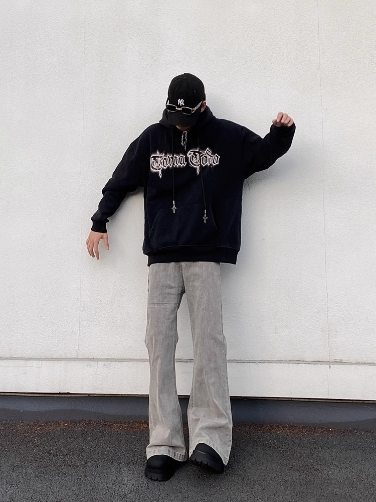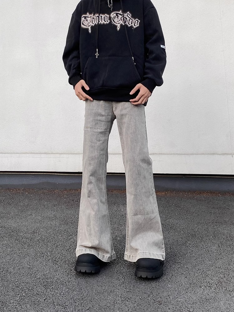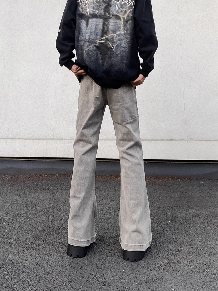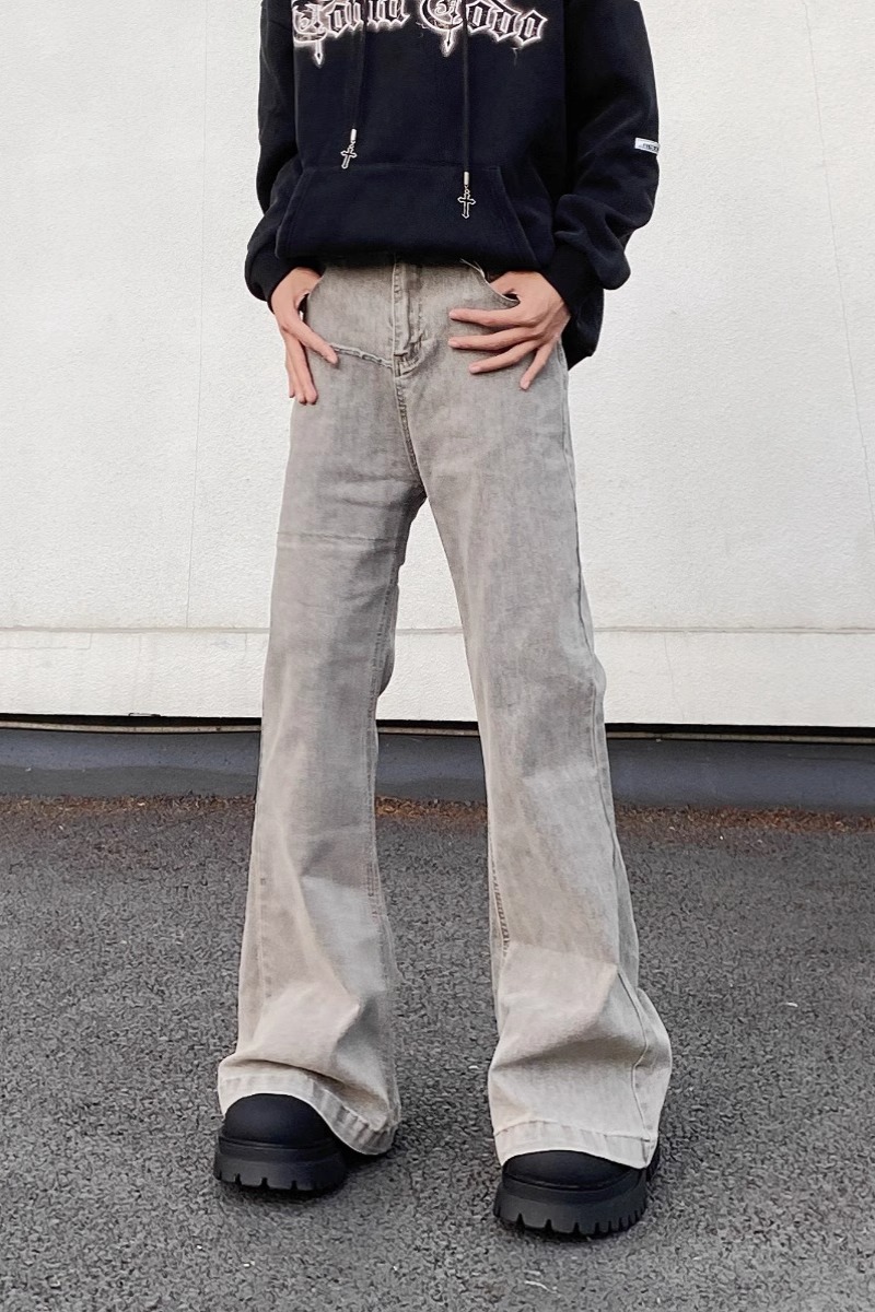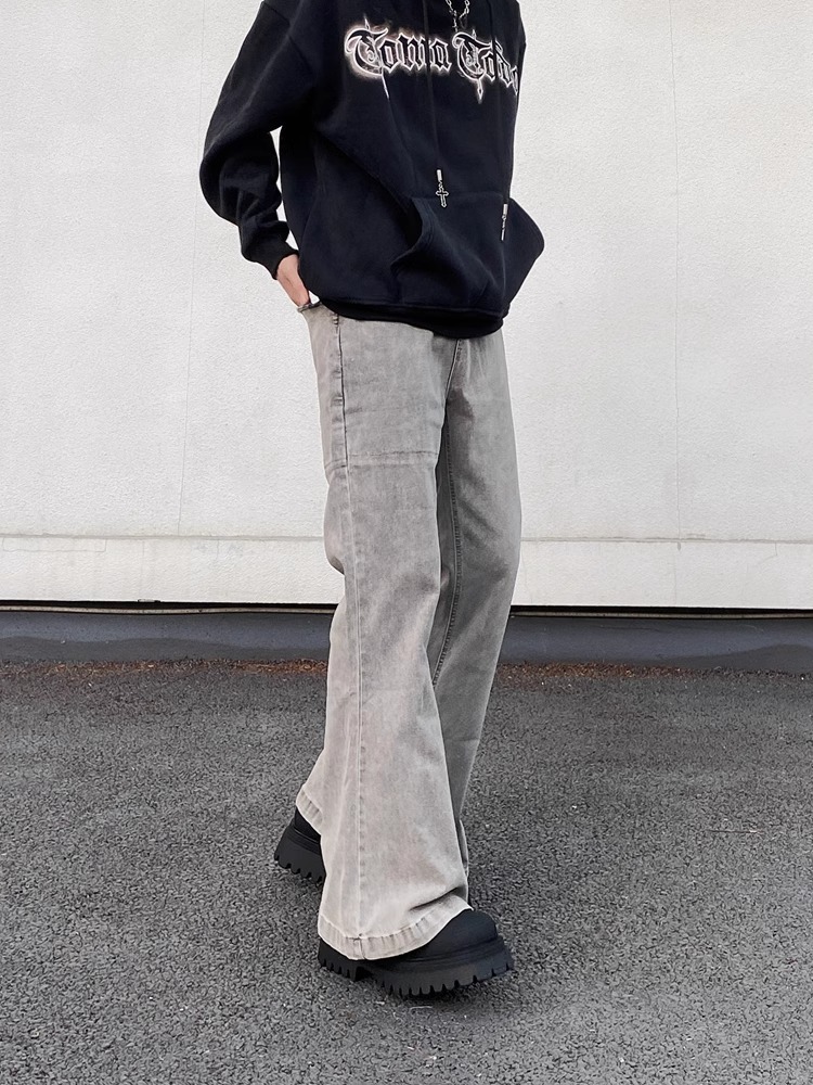 하이 스트리트 아메리칸 스타일 레트로 올드 시멘트 그레이 클렌핏 청바지 남성용 느슨한 마이크로 스키니 디자인 센스 팬츠스토어 가기