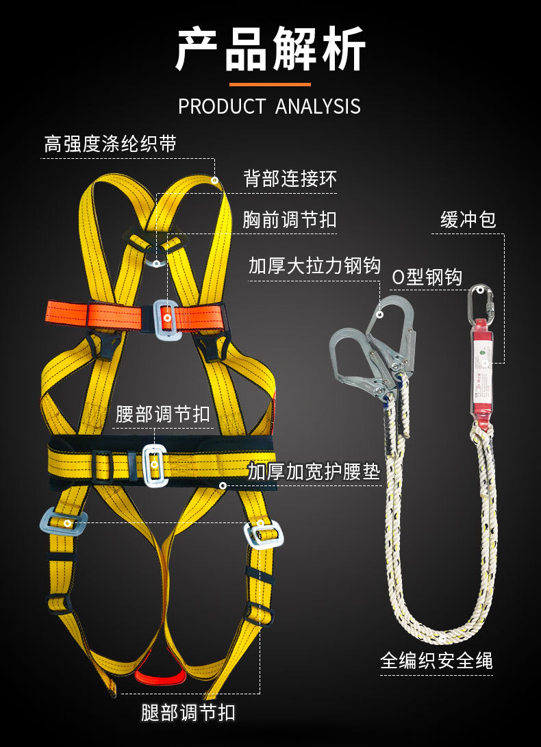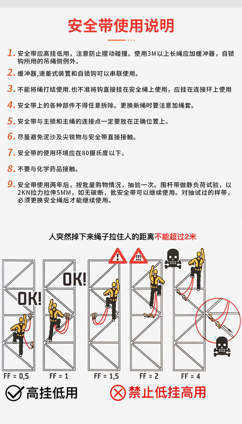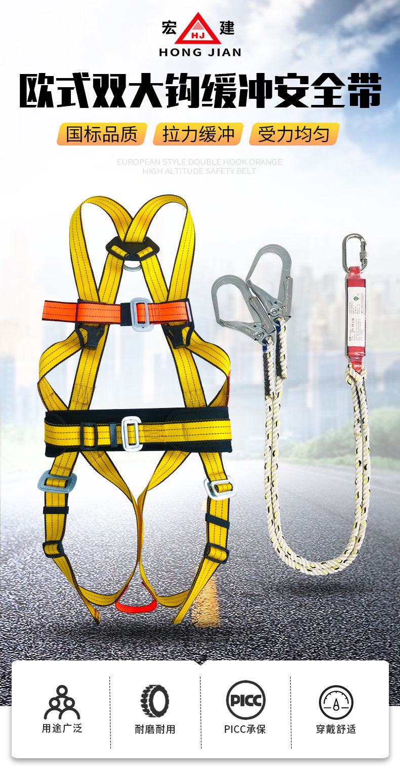 • Hongjian 유럽식 이중 대형 후크/주황색 고고도 완충 안전 벨트 - 환경 친화적