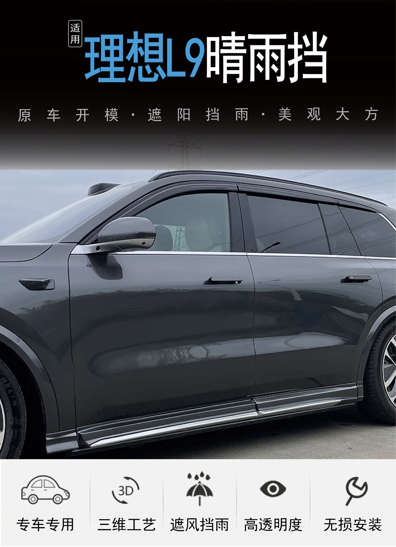 LiAuto 이상적인 L9 창 외부 커버 비 방패 4 조각 검은 아크릴 자동차 비 방패의 국경 간 적용스토어 가기