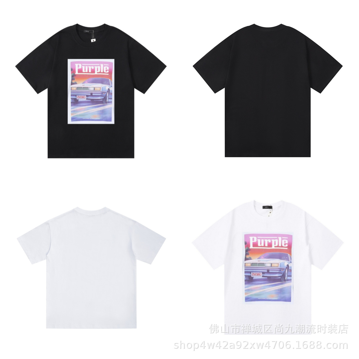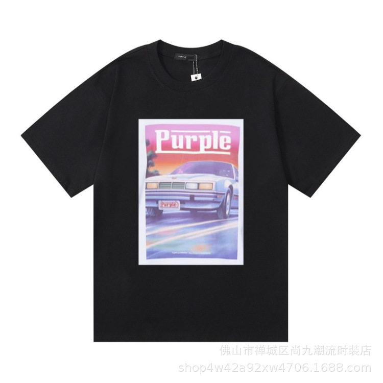 대외 무역 2025 국경 조수 브랜드 보라색 일출 풍경 인쇄 느슨한 캐주얼 반팔 티셔츠 남성 풀오버스토어 가기