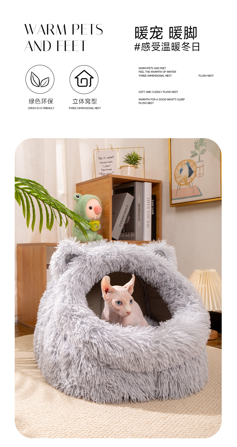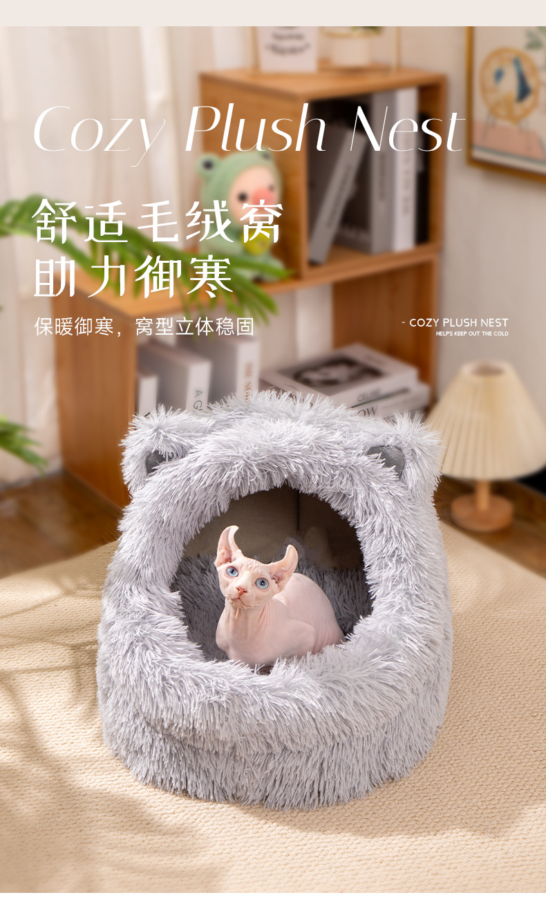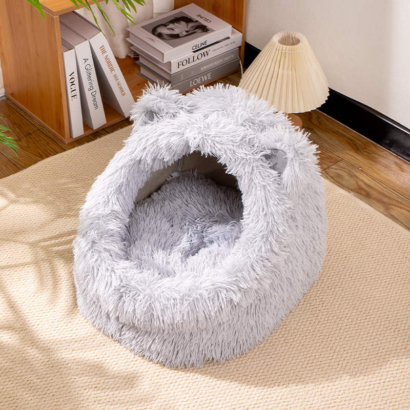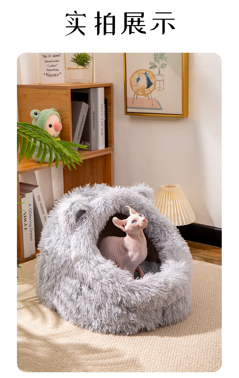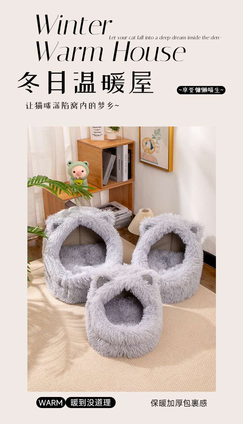 고양이 귀 긴 머리 개집, 사계절 모두 사용할 수 있는 반밀폐형 고양이 개집, 겨울 따뜻한 고양이 개집, 개 개집, 탈부착 및 세척 가능한 고양이 용품스토어 가기