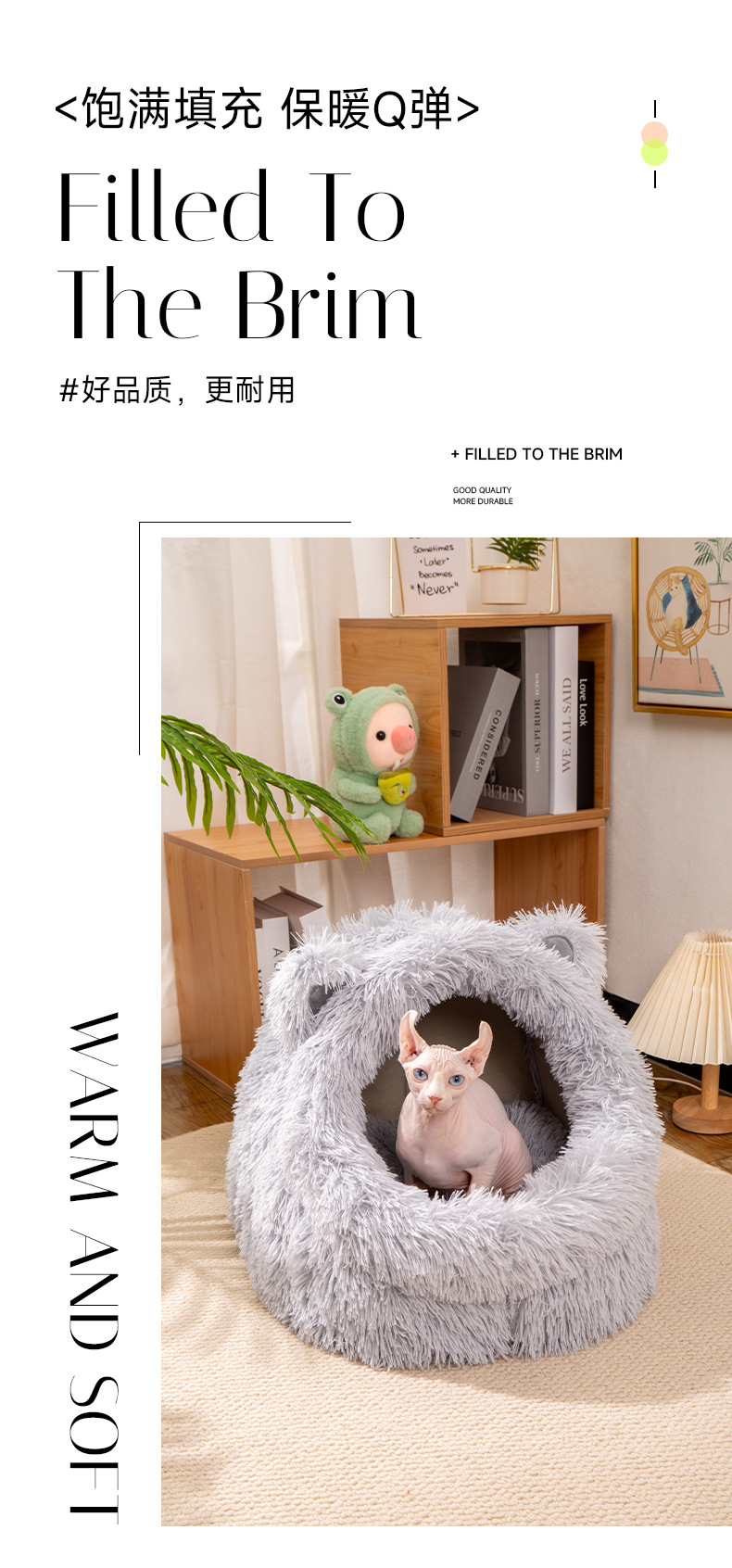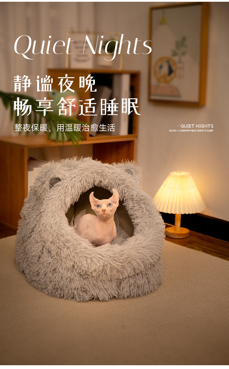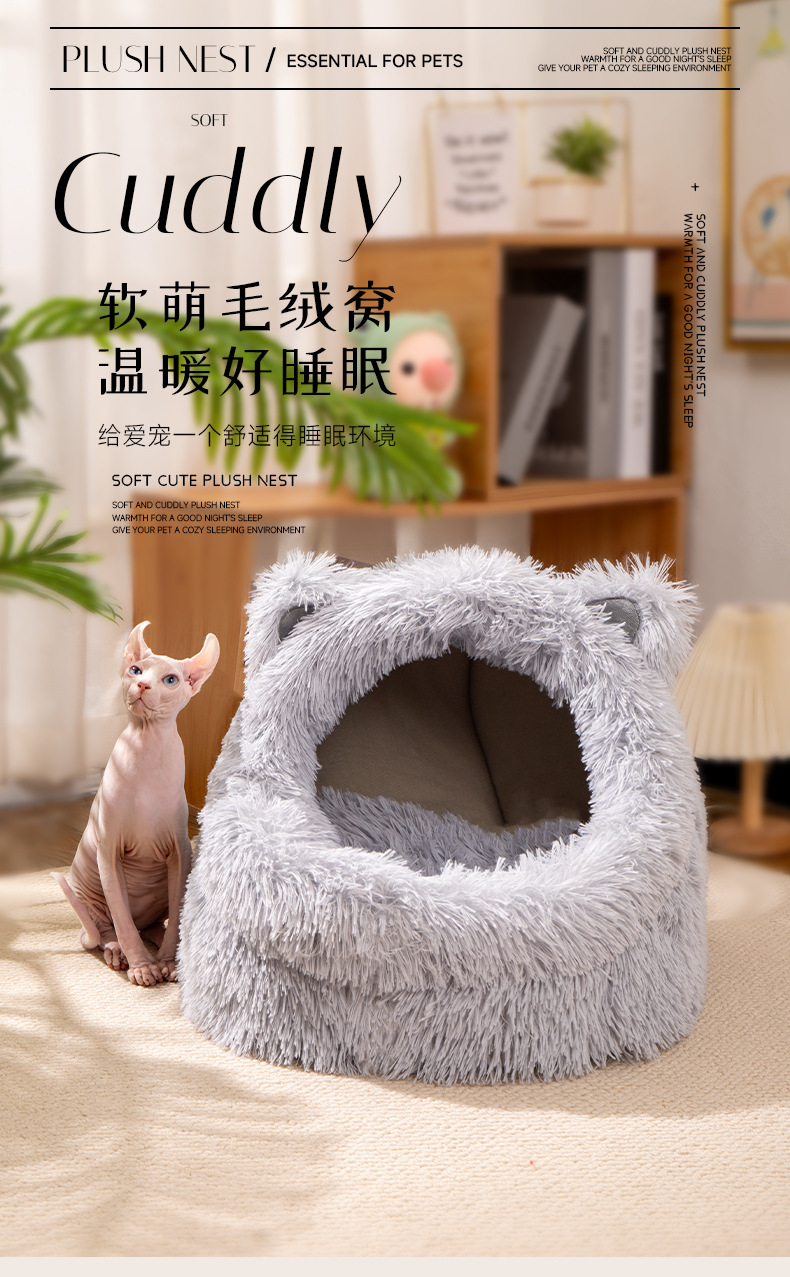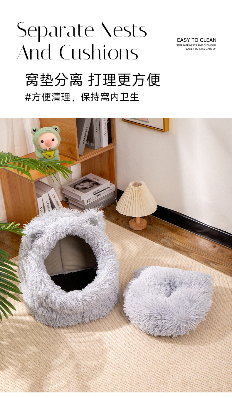 고양이 귀 긴 머리 개집, 사계절 모두 사용할 수 있는 반밀폐형 고양이 개집, 겨울 따뜻한 고양이 개집, 개 개집, 탈부착 및 세척 가능한 고양이 용품스토어 가기
