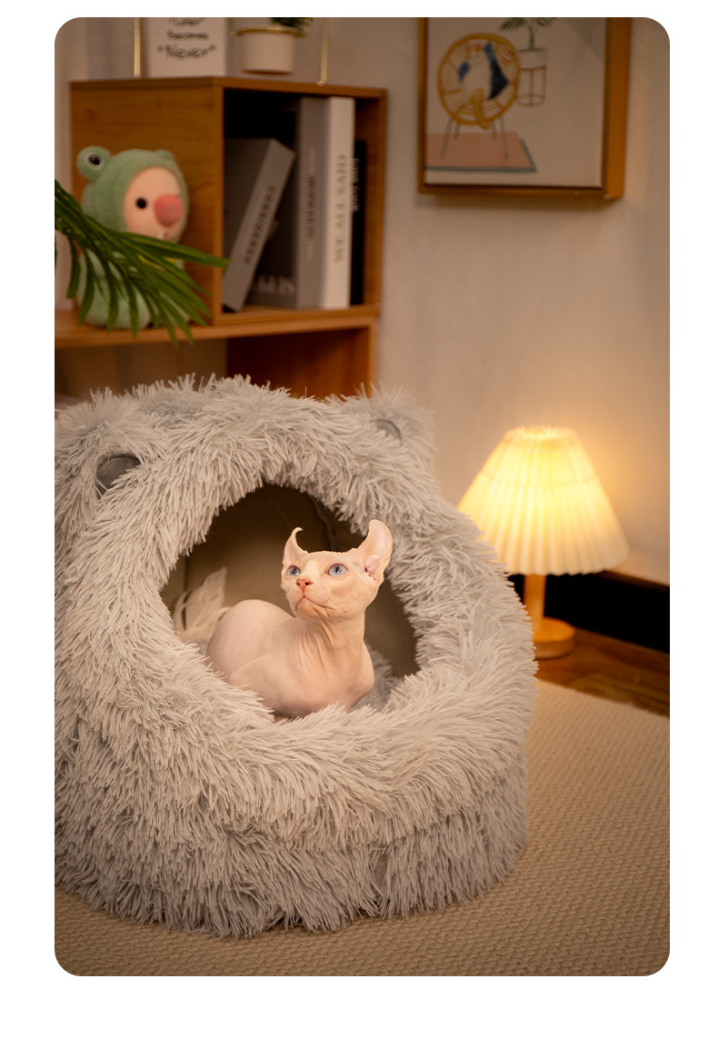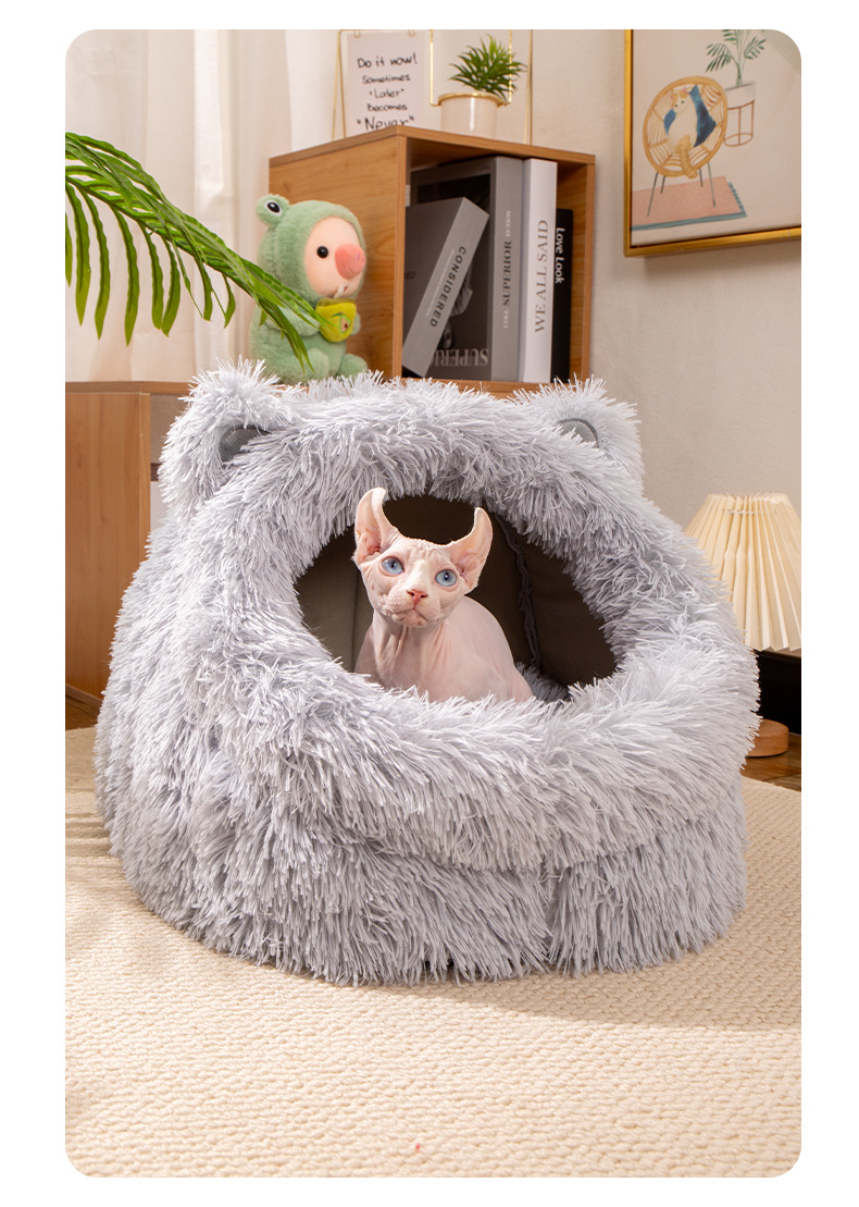 고양이 귀 긴 머리 개집, 사계절 모두 사용할 수 있는 반밀폐형 고양이 개집, 겨울 따뜻한 고양이 개집, 개 개집, 탈부착 및 세척 가능한 고양이 용품