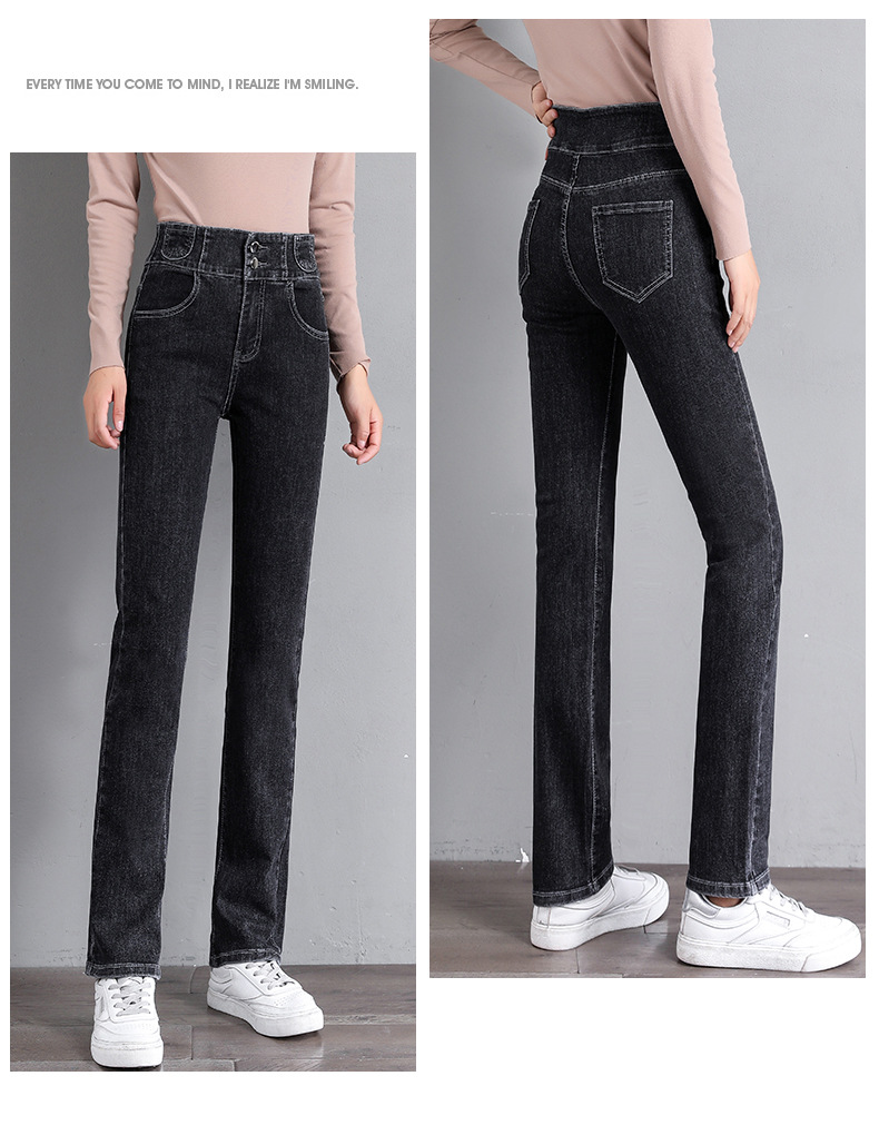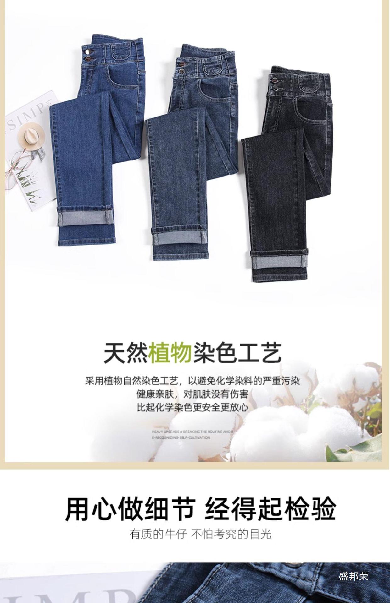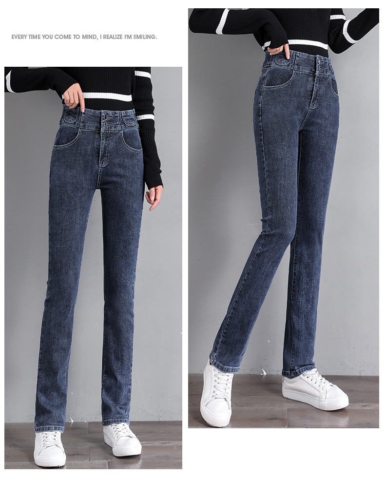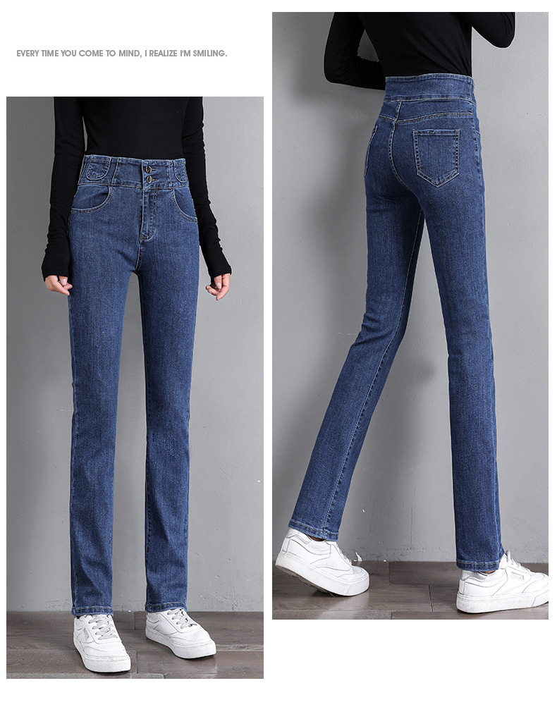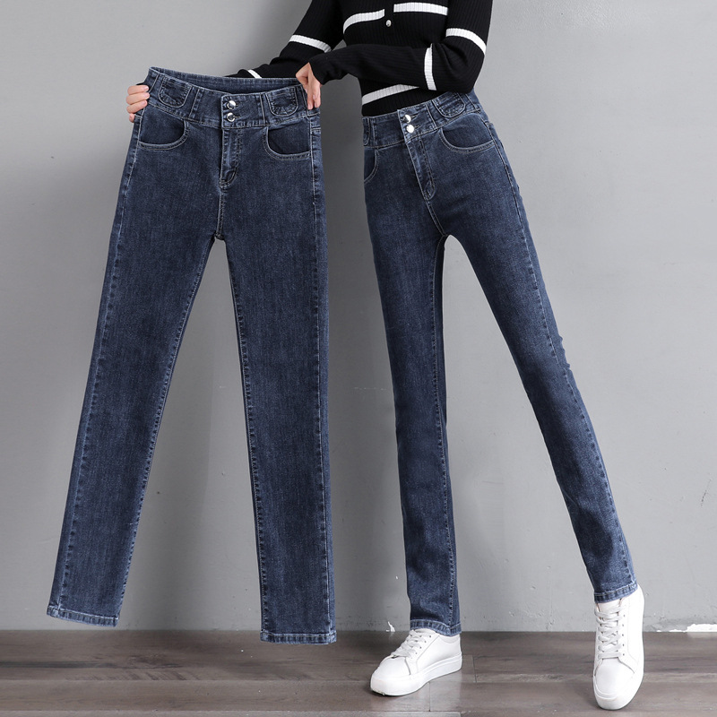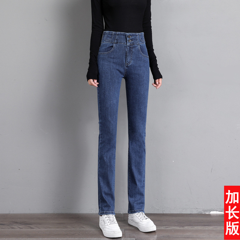 긴 느슨한 연기 튜브 작은 직선 바지 청바지 여성 스트레이트 봄과 가을 슬림 탄성 높은 허리 새로운 유럽과 미국 스타일스토어 가기