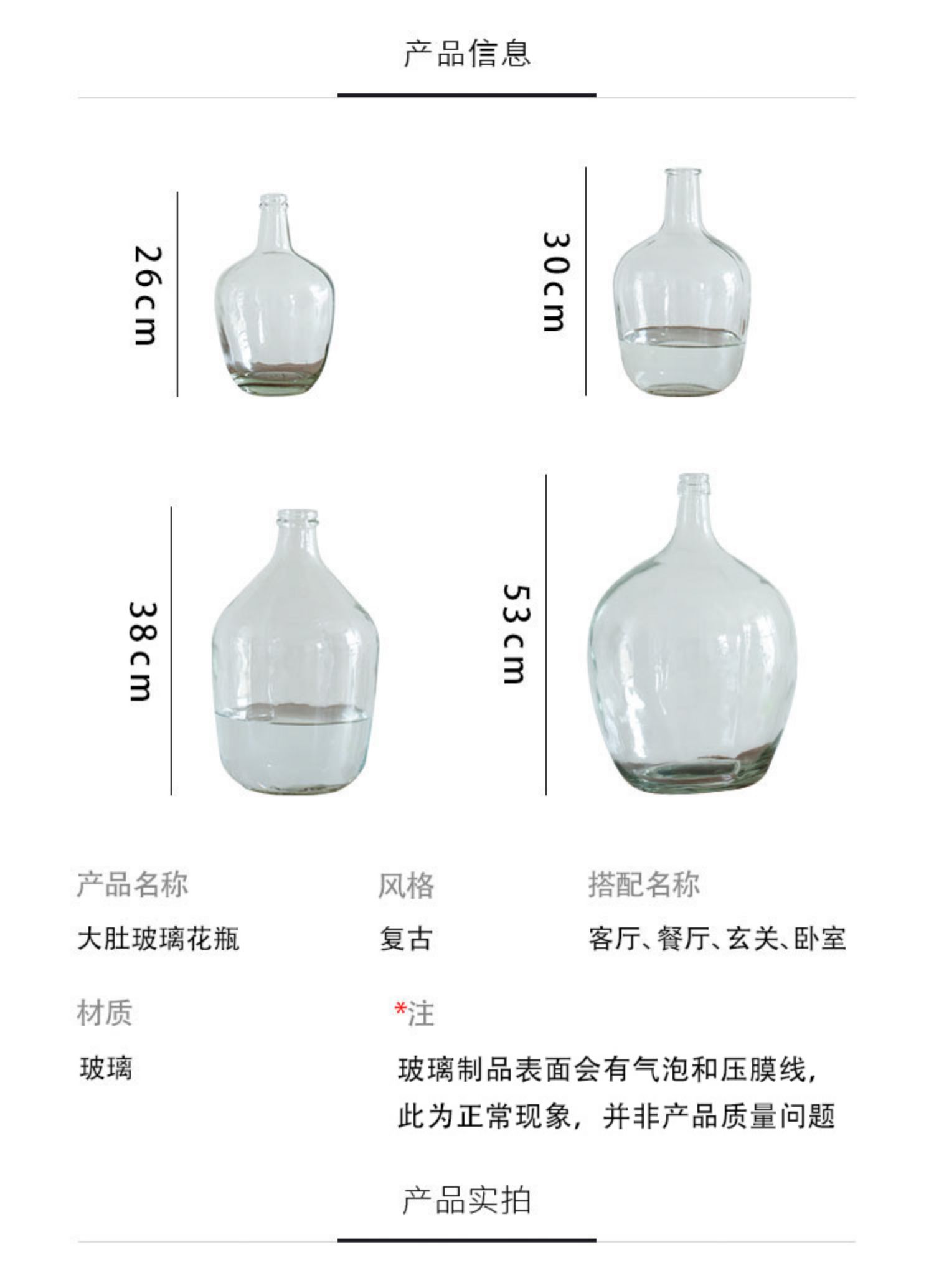 Qimo 북유럽 심플 대형 배 유리 꽃병 일본 벨 벨 마즈이 나무 꽃꽂이 수경 바닥 투명 대형 꽃병스토어 가기