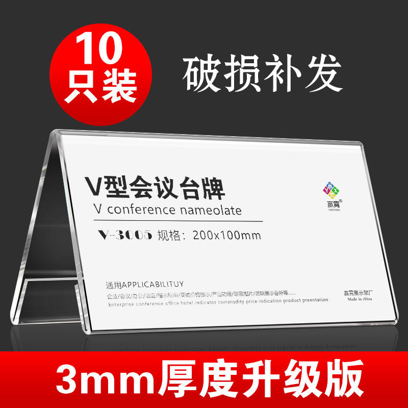 V자형 삼각형 좌석 카드 10개, 성씨 카드, 투명 양면 회의 카드, 탁상 디스플레이 카드, 풀 카드스토어 가기