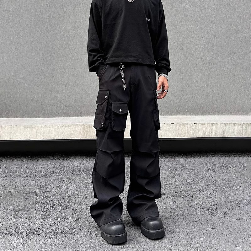 아메리칸 스타일 레트로 3 차원 멀티 포켓 크레인 바지 남성 봄과 가을 새로운 스트레이트 와이드 레그 클렌핏 캐주얼 바지