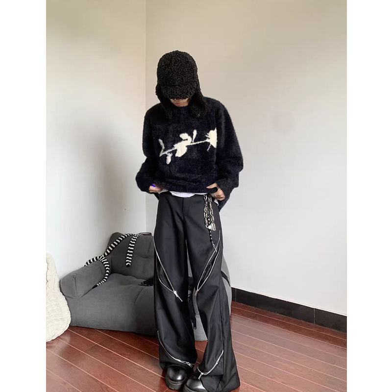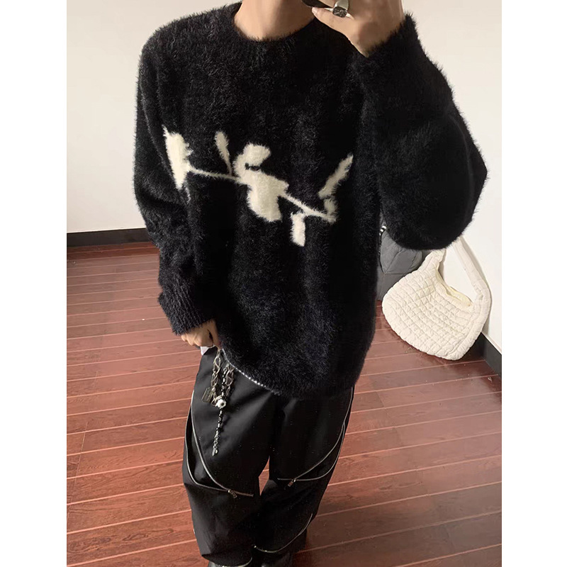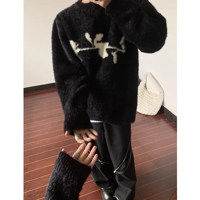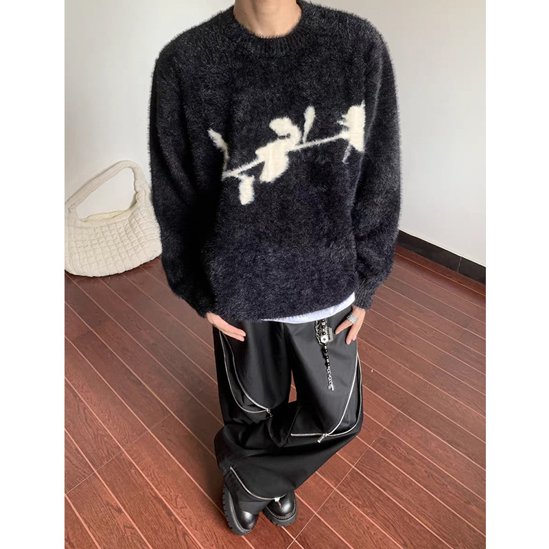 디아블로 로즈 디자인 스웨터 남자의 가을과 겨울 새로운 모피 따뜻한 클린 핏 느슨한 스웨터