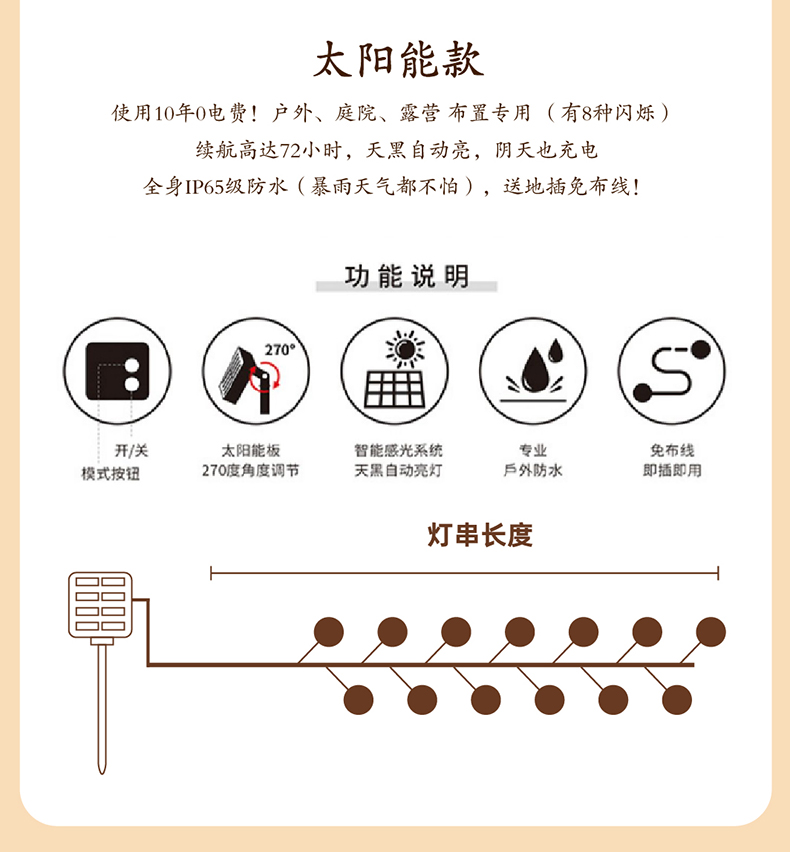 • 태양광 리모컨 모델 [ 52.5m 조명] + 리모컨 + 하이라이트 + 충전식