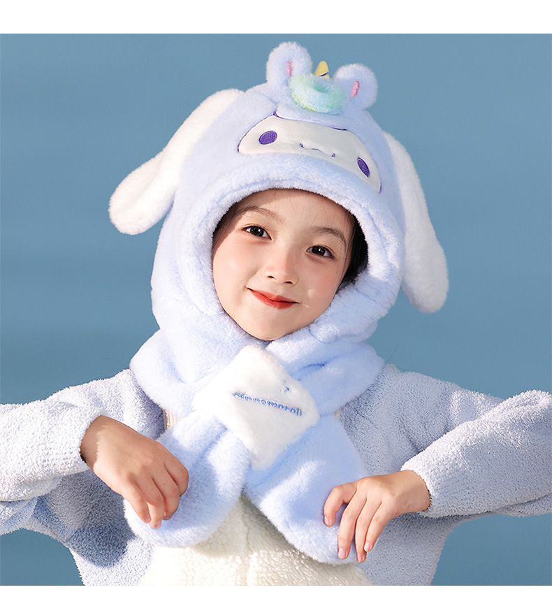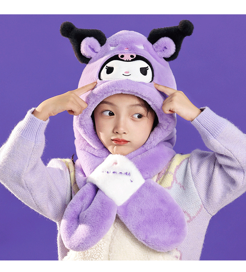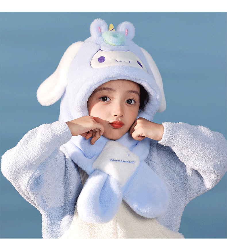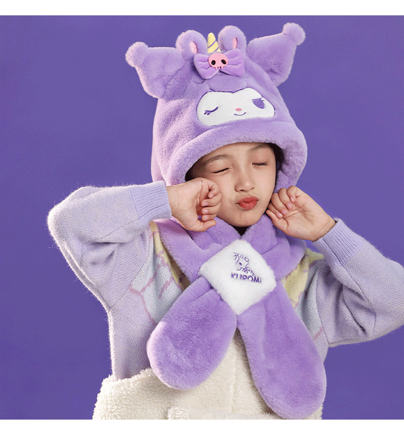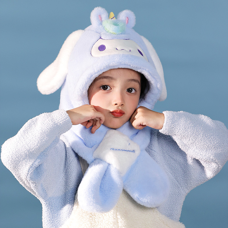 산리오 정품 Merlot Kulomi Gui Dog Parcha Dog 어린이 봉제 모자와 스카프 따뜻한 투피스 세트