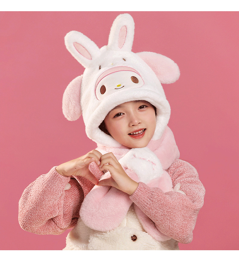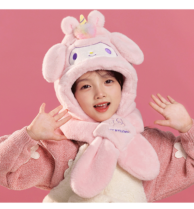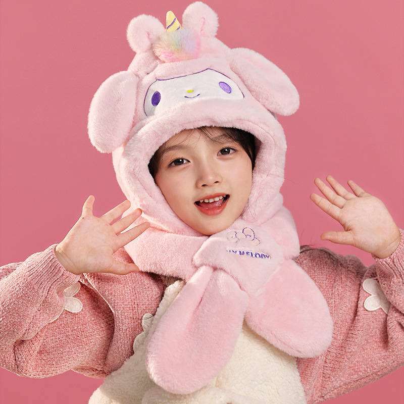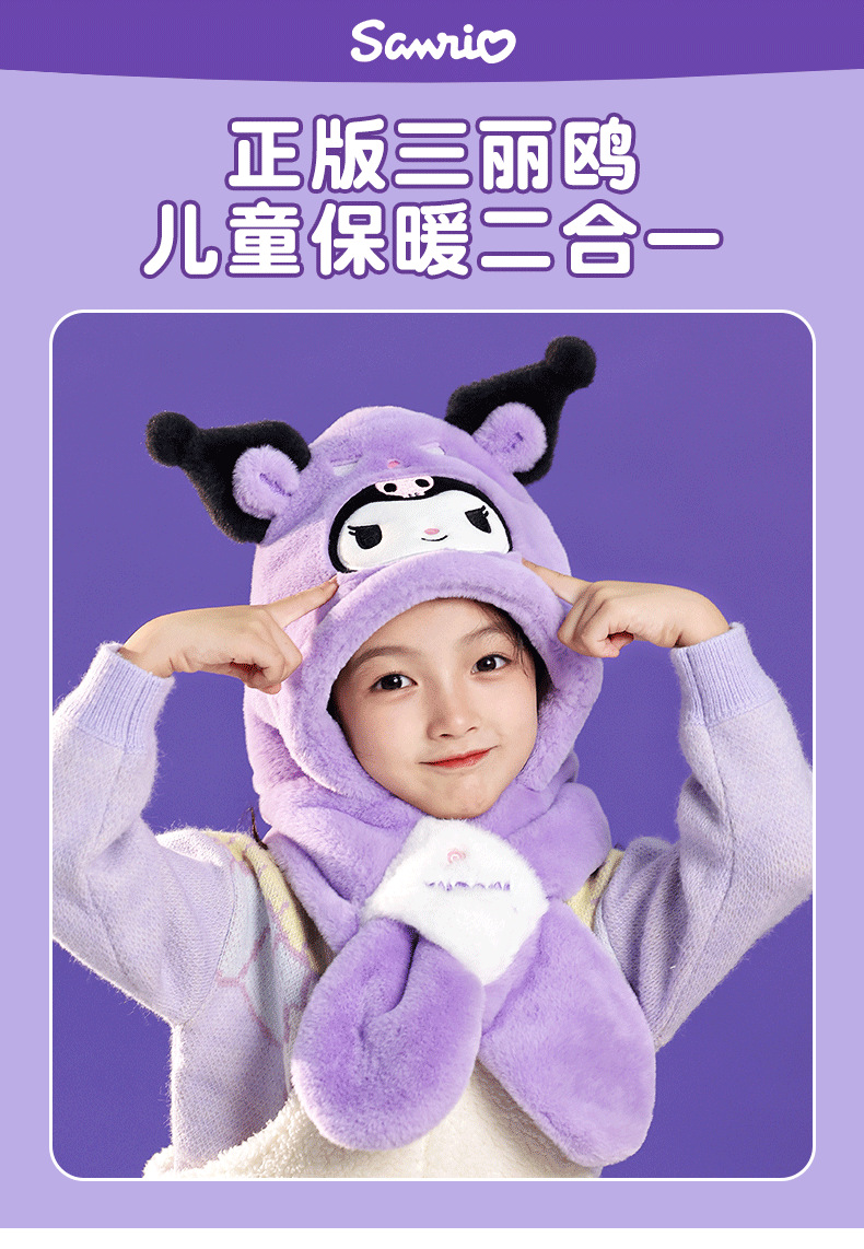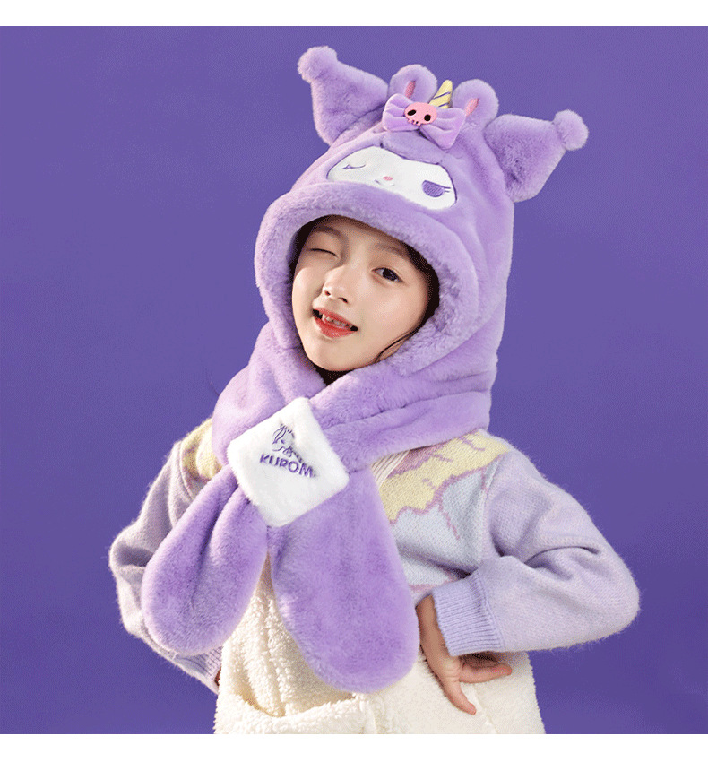 산리오 정품 Merlot Kulomi Gui Dog Parcha Dog 어린이 봉제 모자와 스카프 따뜻한 투피스 세트