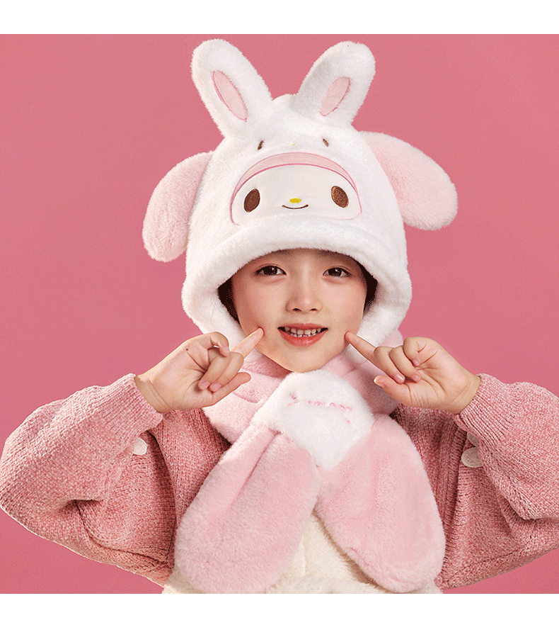 산리오 정품 Merlot Kulomi Gui Dog Parcha Dog 어린이 봉제 모자와 스카프 따뜻한 투피스 세트스토어 가기