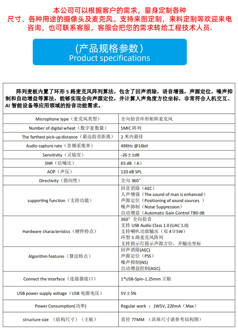 • 8 어레이 무지향성 마이크 + USB 케이블 ARRAYMIC-V3.2