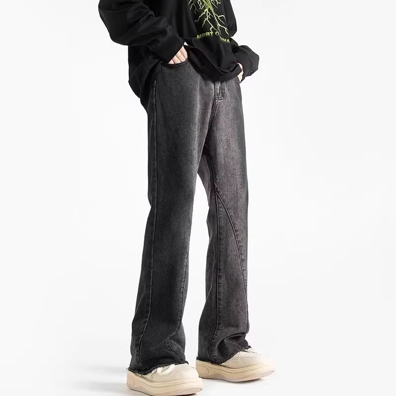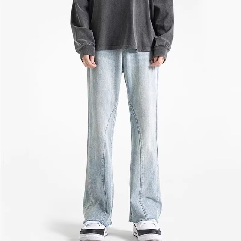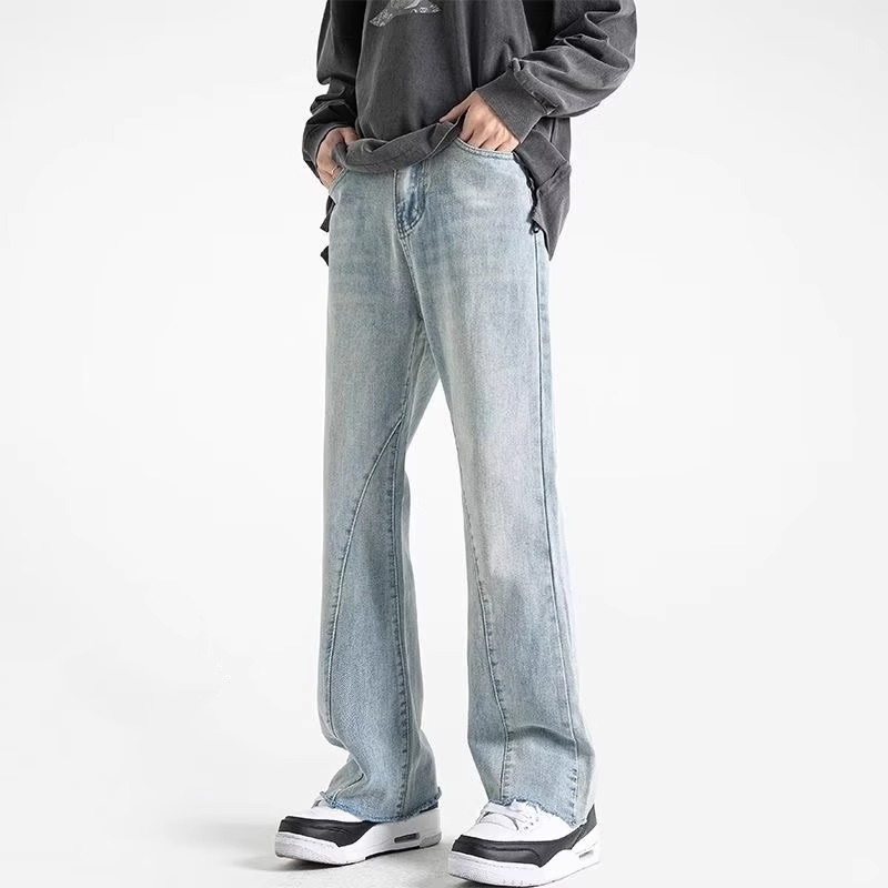 아메리칸 스타일 유행 브랜드 바이브 마이크로 라르 청바지 남성 봄과 가을 새로운 올 매치 슬리밍 스트레이트 레그 와이드 레그 팬츠 유행 빈티지스토어 가기
