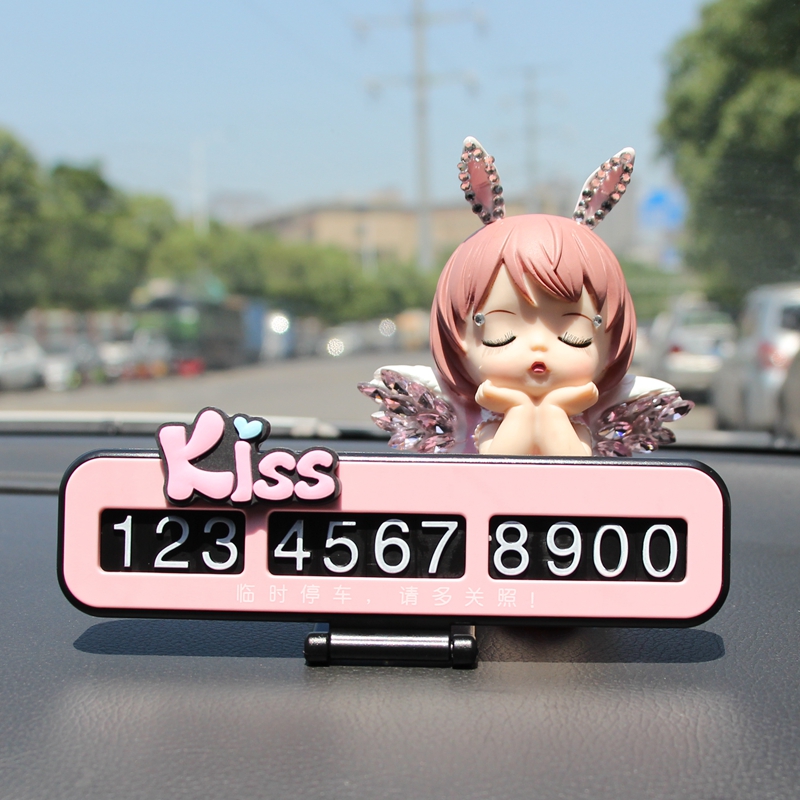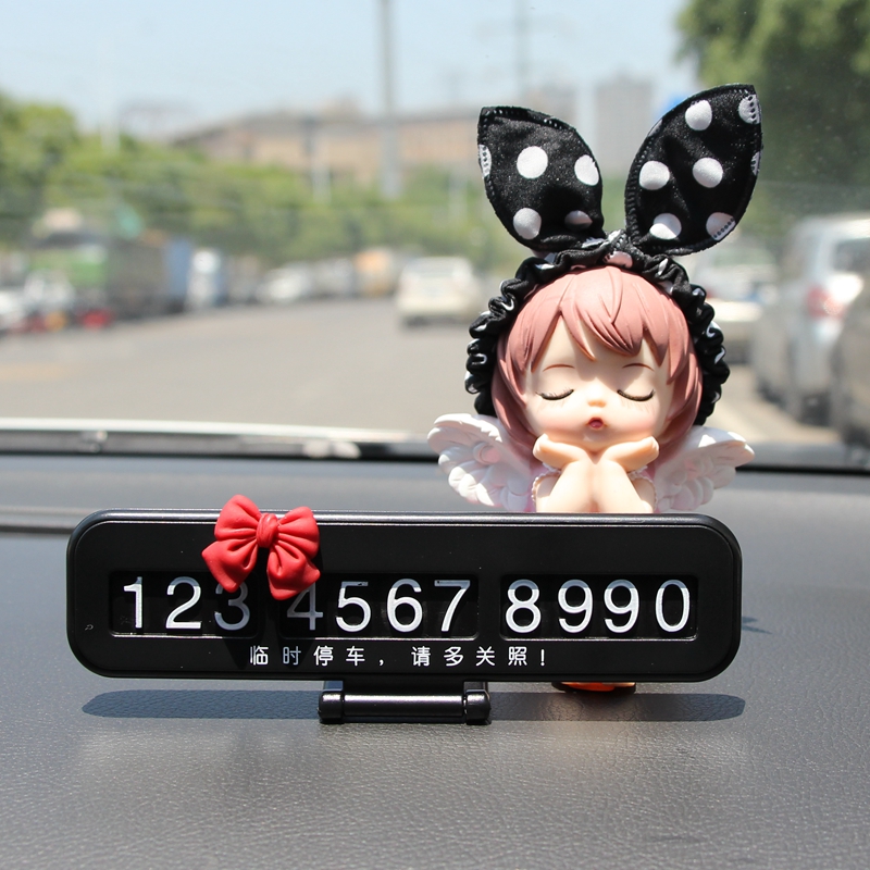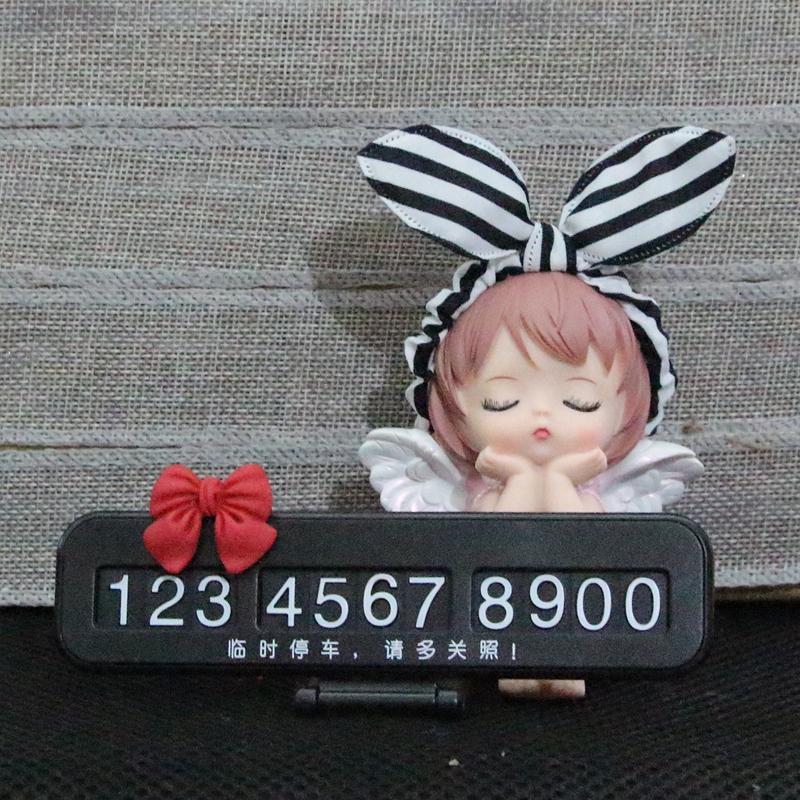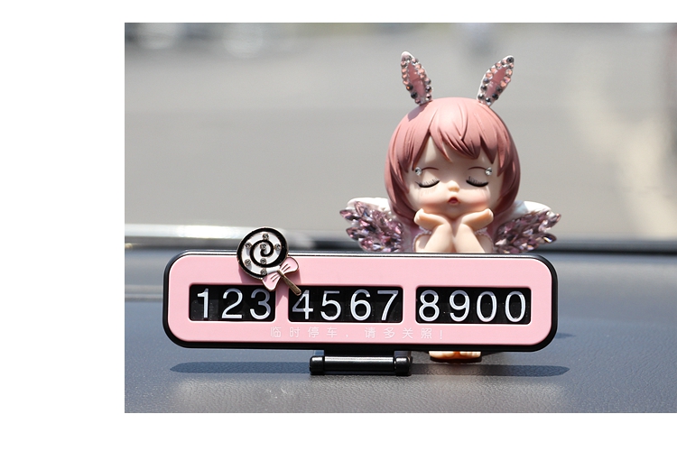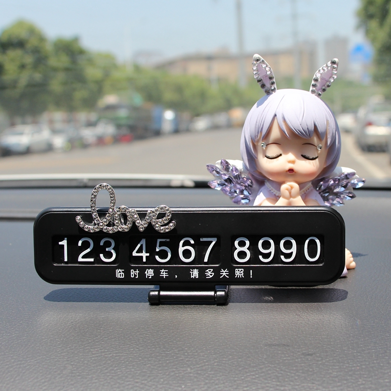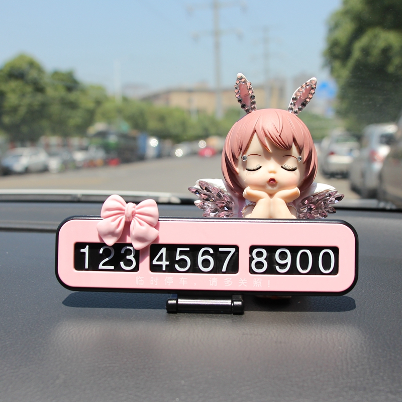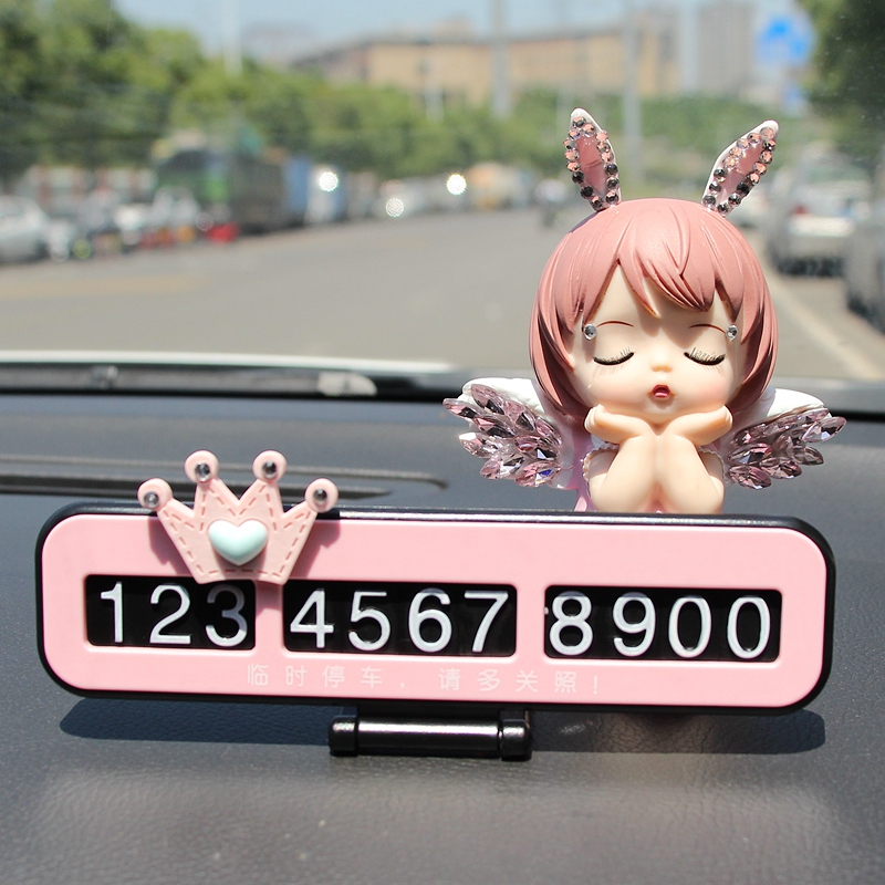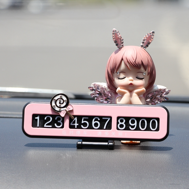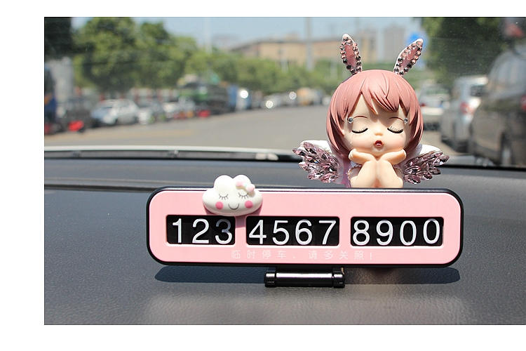 网红车载临时停车卡电话号码牌可爱天使摆件汽车卡通隐藏挪车满和