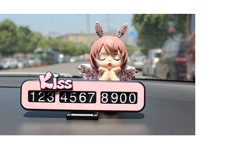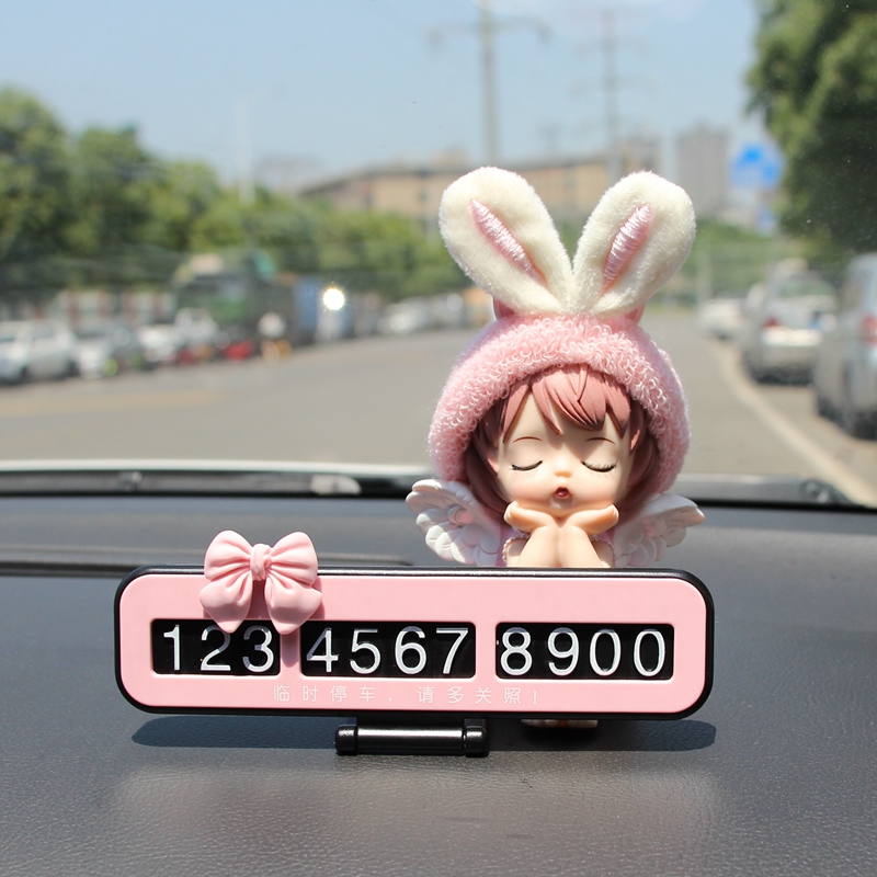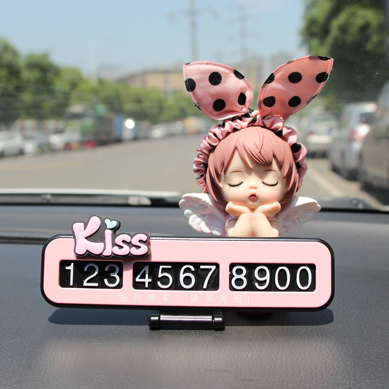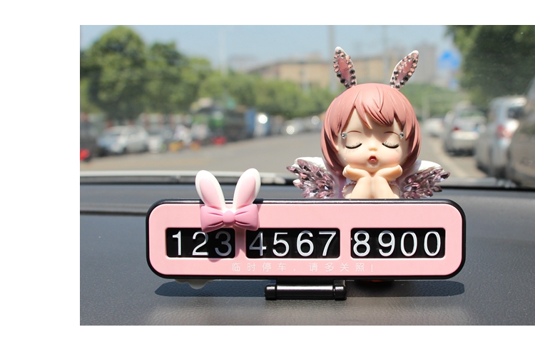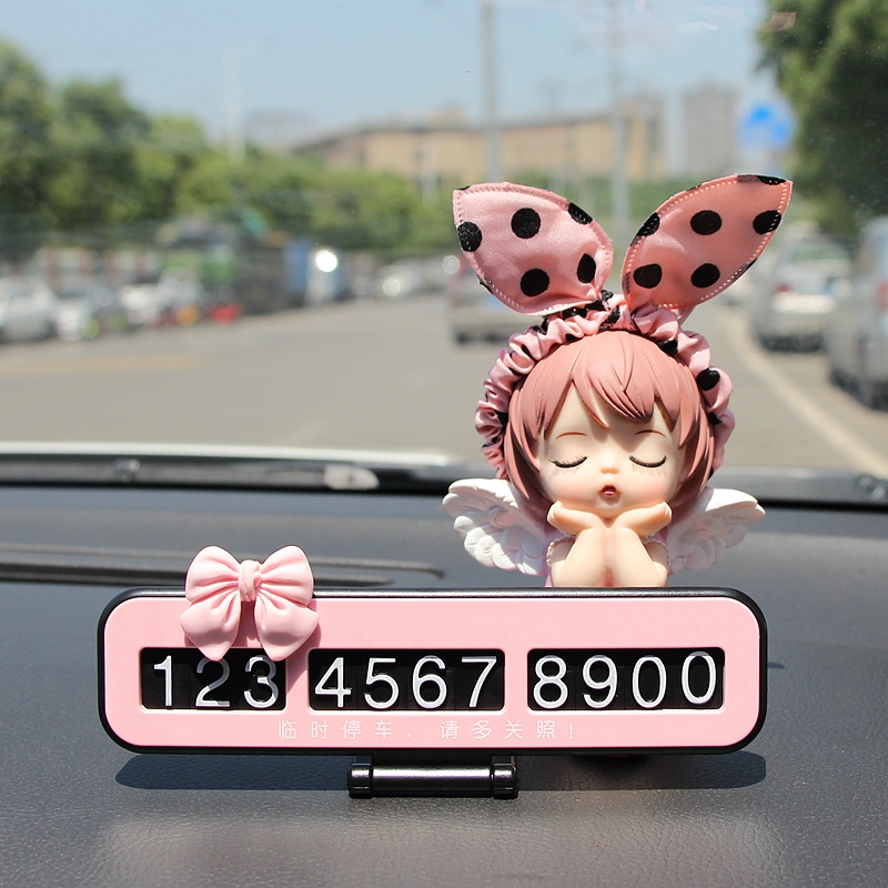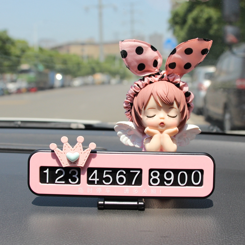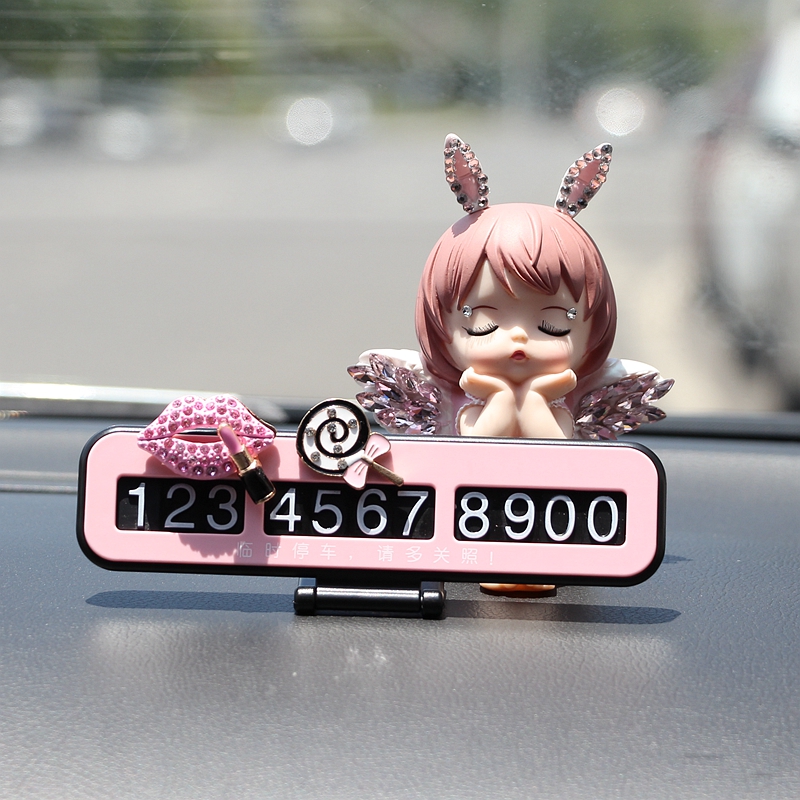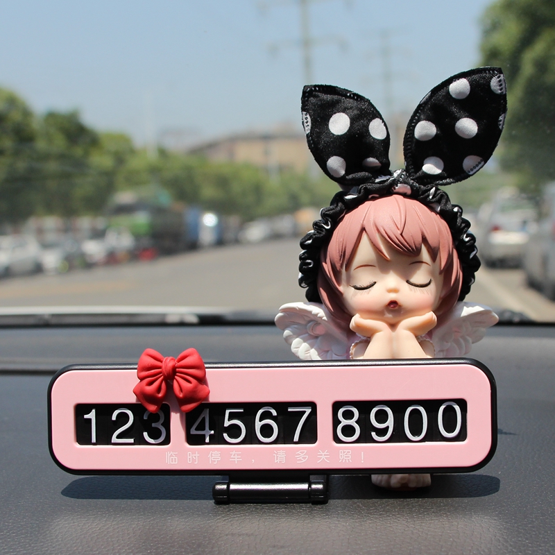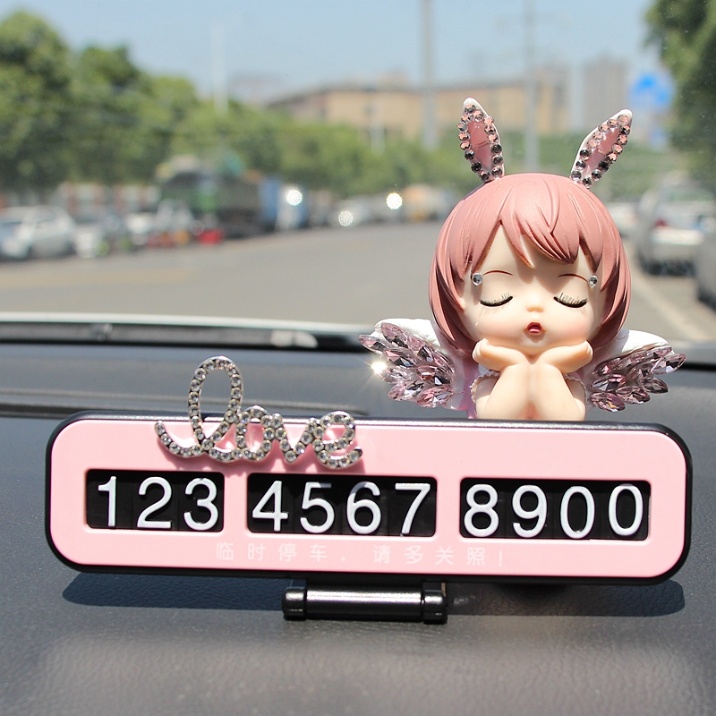 网红车载临时停车卡电话号码牌可爱天使摆件汽车卡通隐藏挪车满和