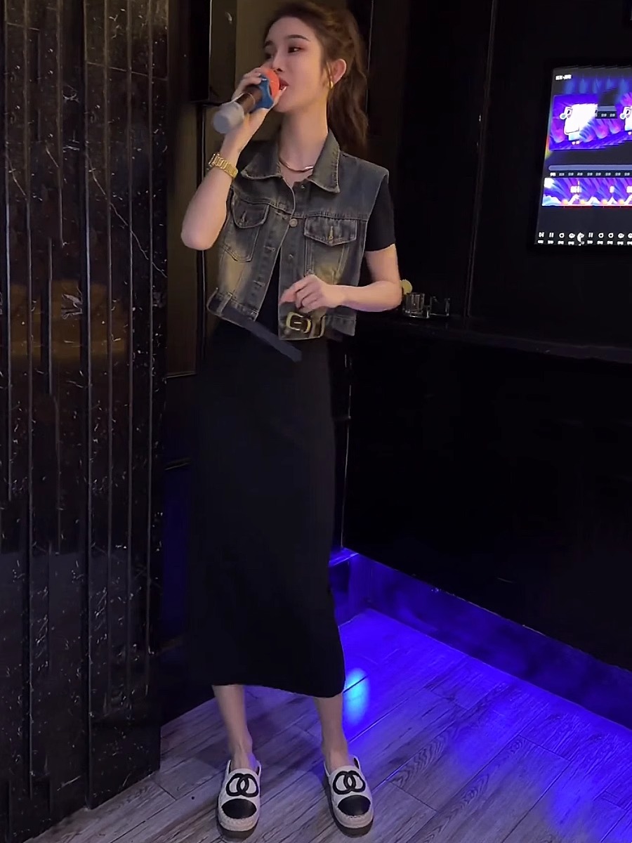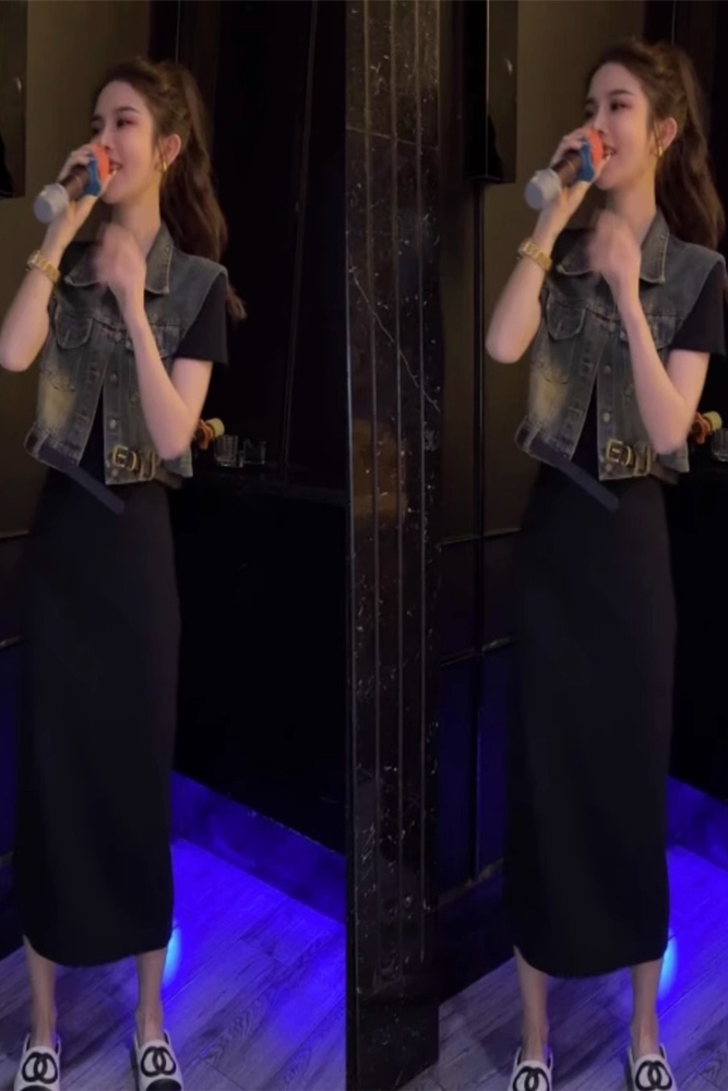 夏装搭配一整套2024新款减龄洋气时尚套装裙牛仔马甲连衣裙两满和