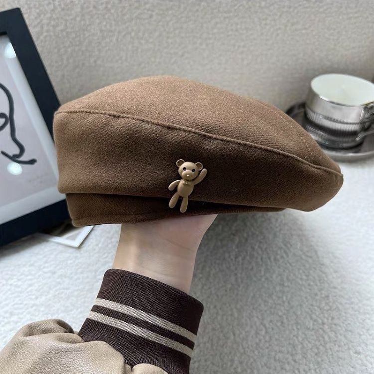 • 카키색 손을 흔드는 곰 베레모