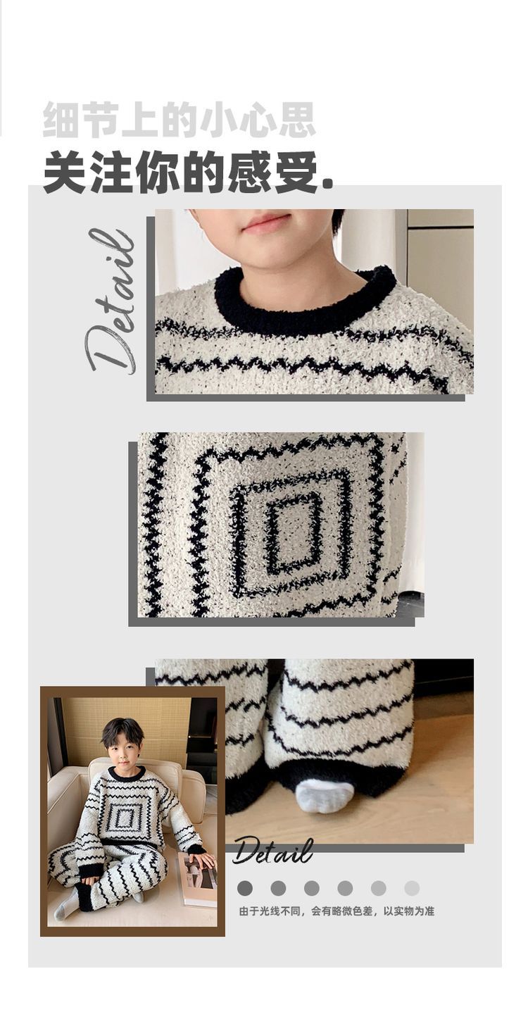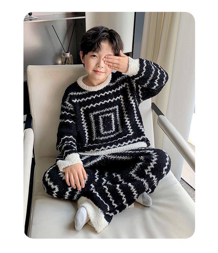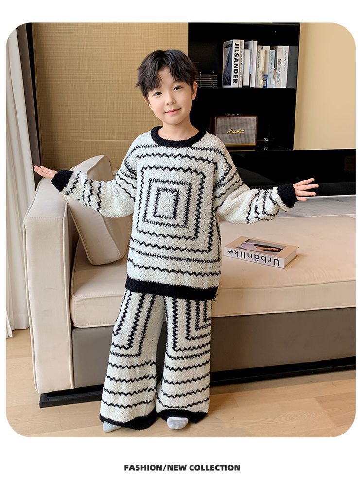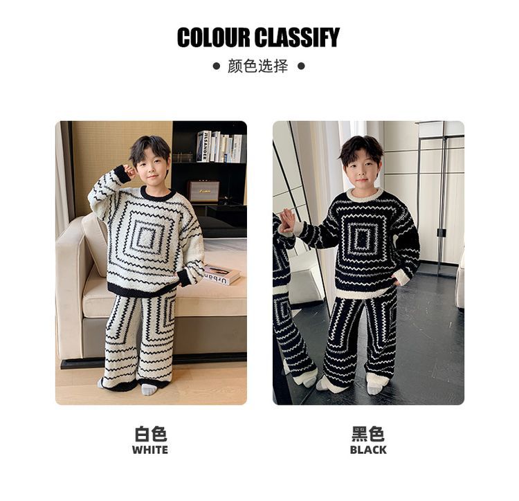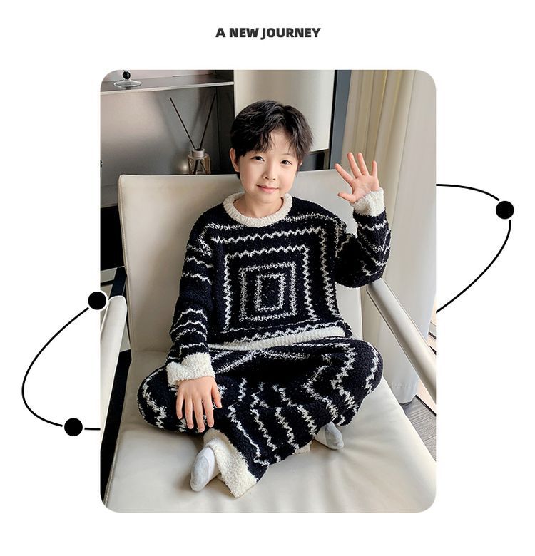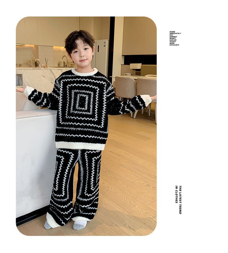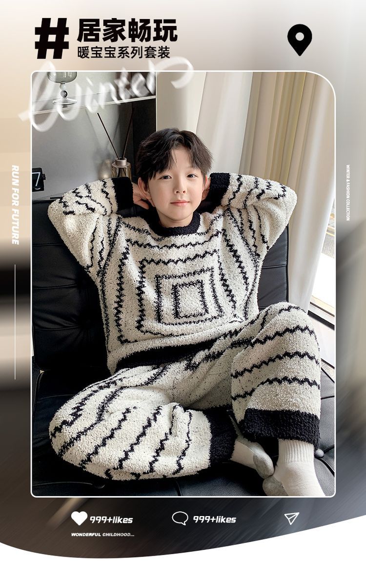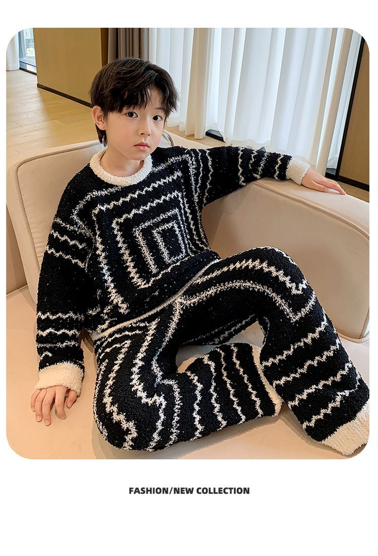 남학생 반쪽 벨벳 홈 의류 겨울 두꺼운 따뜻한 미들 및 큰 어린이 캐주얼 풀오버 소프트 왁스 파자마 2 피스 세트스토어 가기