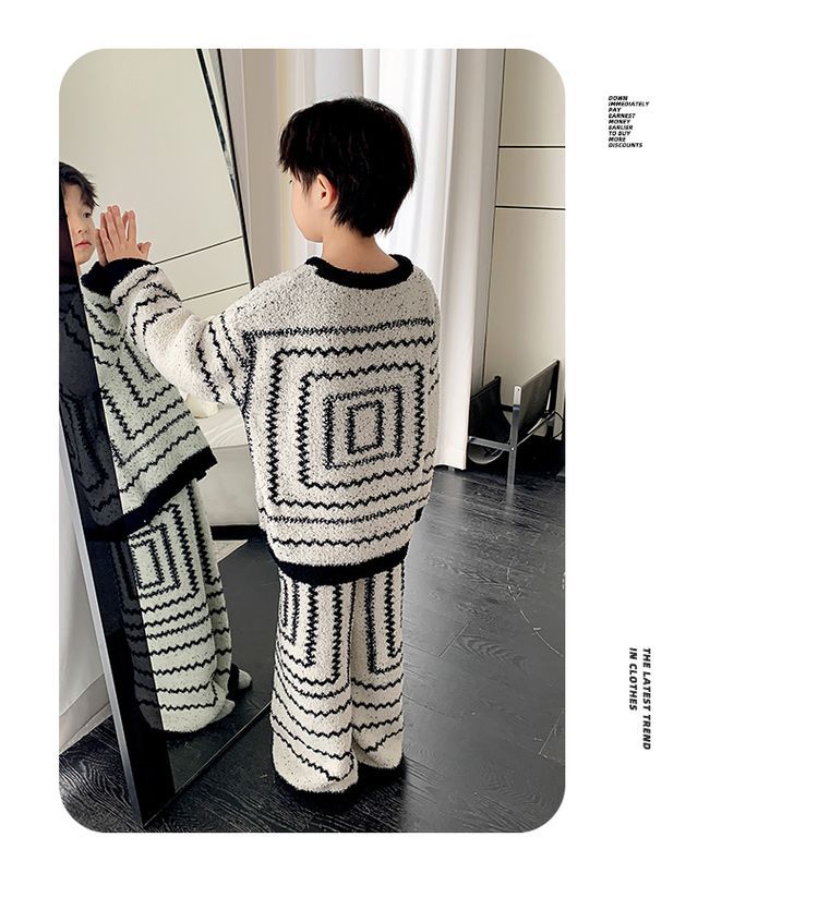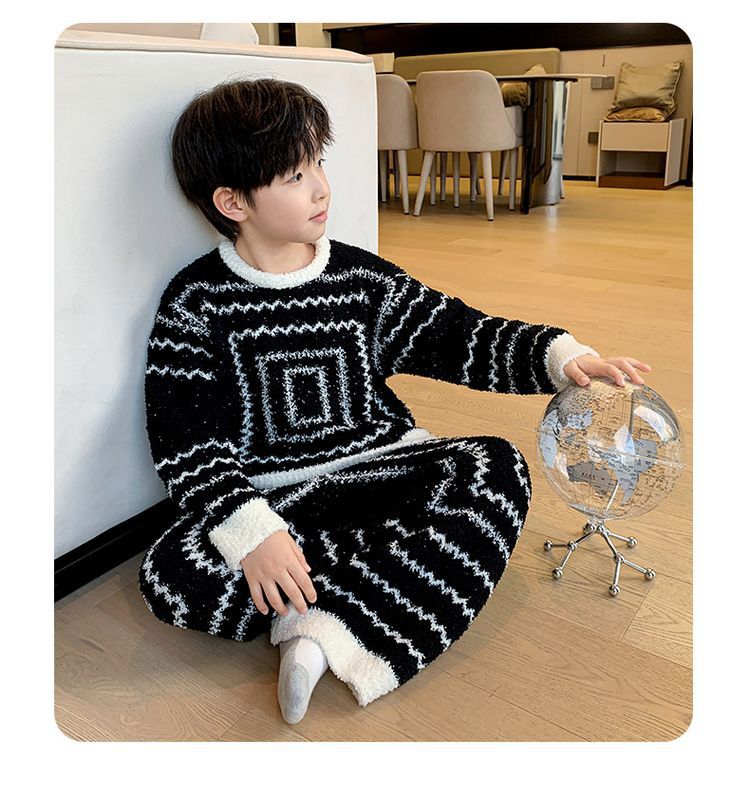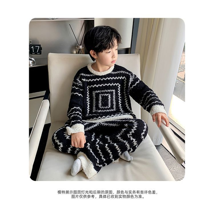 남학생 반쪽 벨벳 홈 의류 겨울 두꺼운 따뜻한 미들 및 큰 어린이 캐주얼 풀오버 소프트 왁스 파자마 2 피스 세트